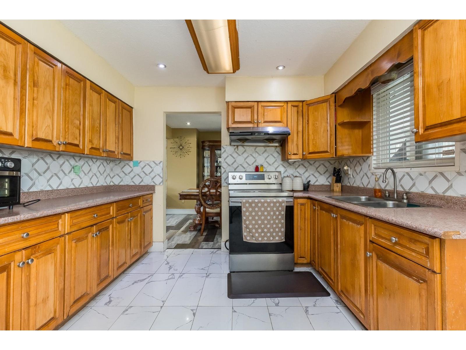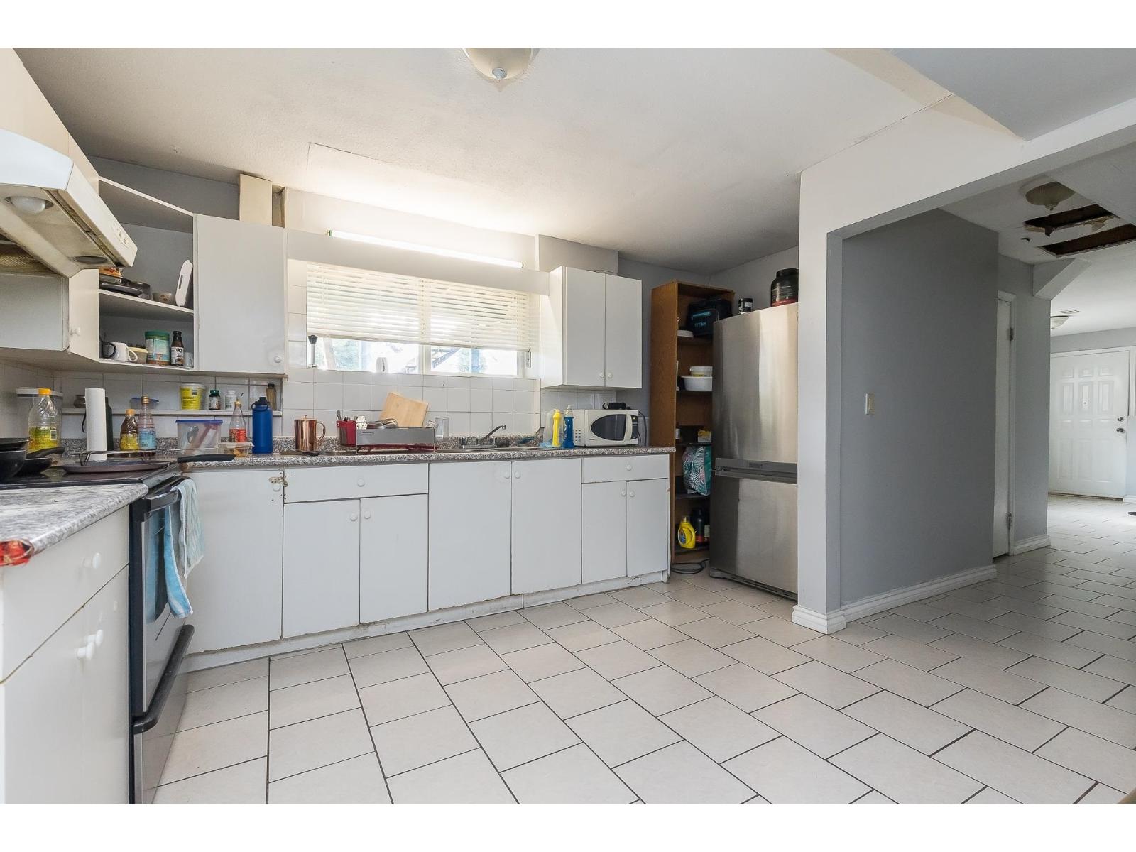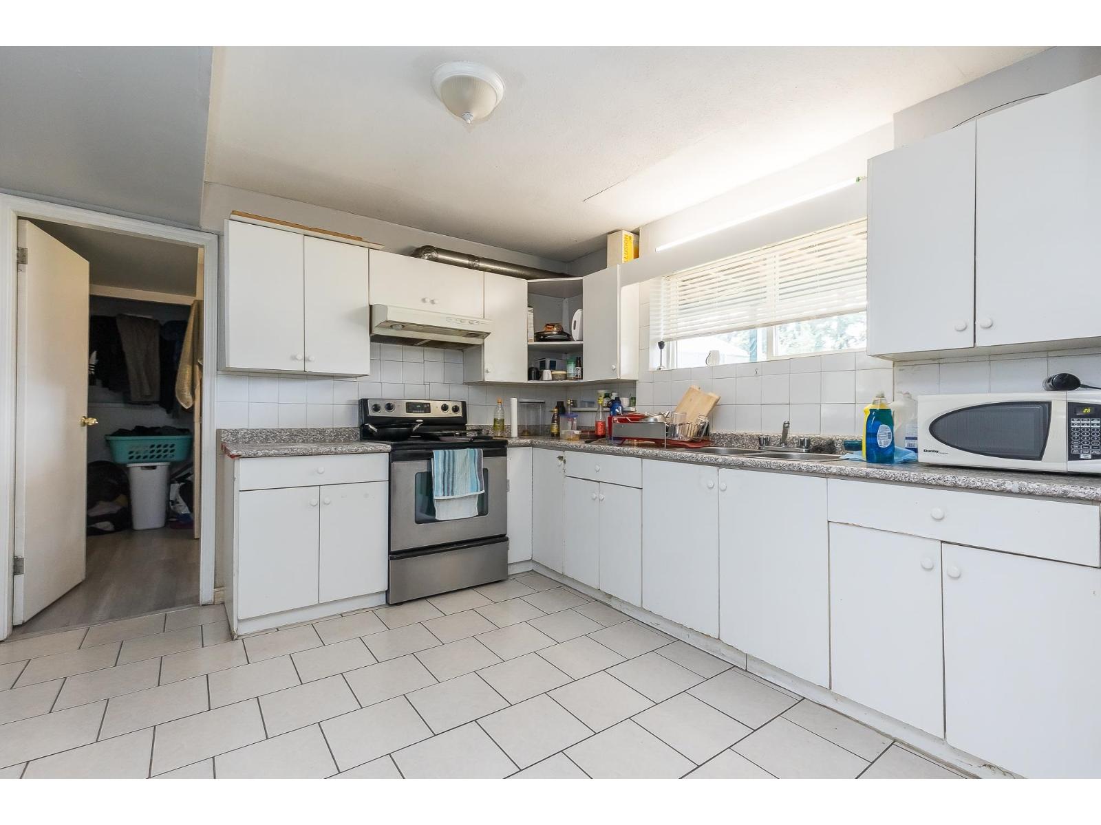Central location, Huge flat lot without any easement or right of way to play or do family gathering, walking distance to Abbotsford Regional Hospital and Cancer Centre, Mill lake and easy access to highway 1. large 1/4 acre clean flat lot with 70' frontage and no easement. This house has 4 bedrooms & 2 bath for upstairs use and 2 bed 1 bath legal suite. Laundry on the covered patio, which has easy access for downstairs people as well. All windows has been updated and lock able storage shed in the backyard. Easy to show. (id:63510)
