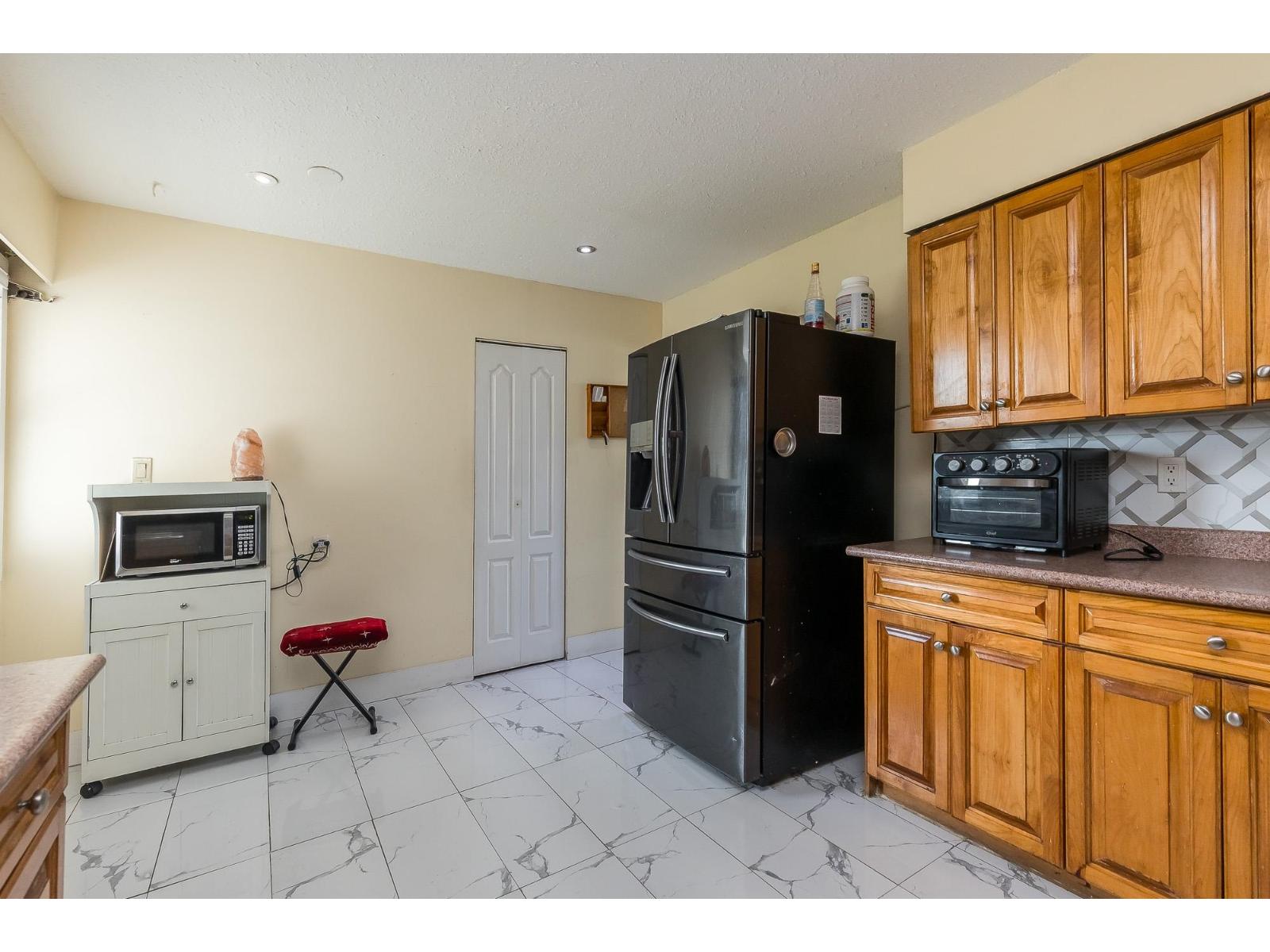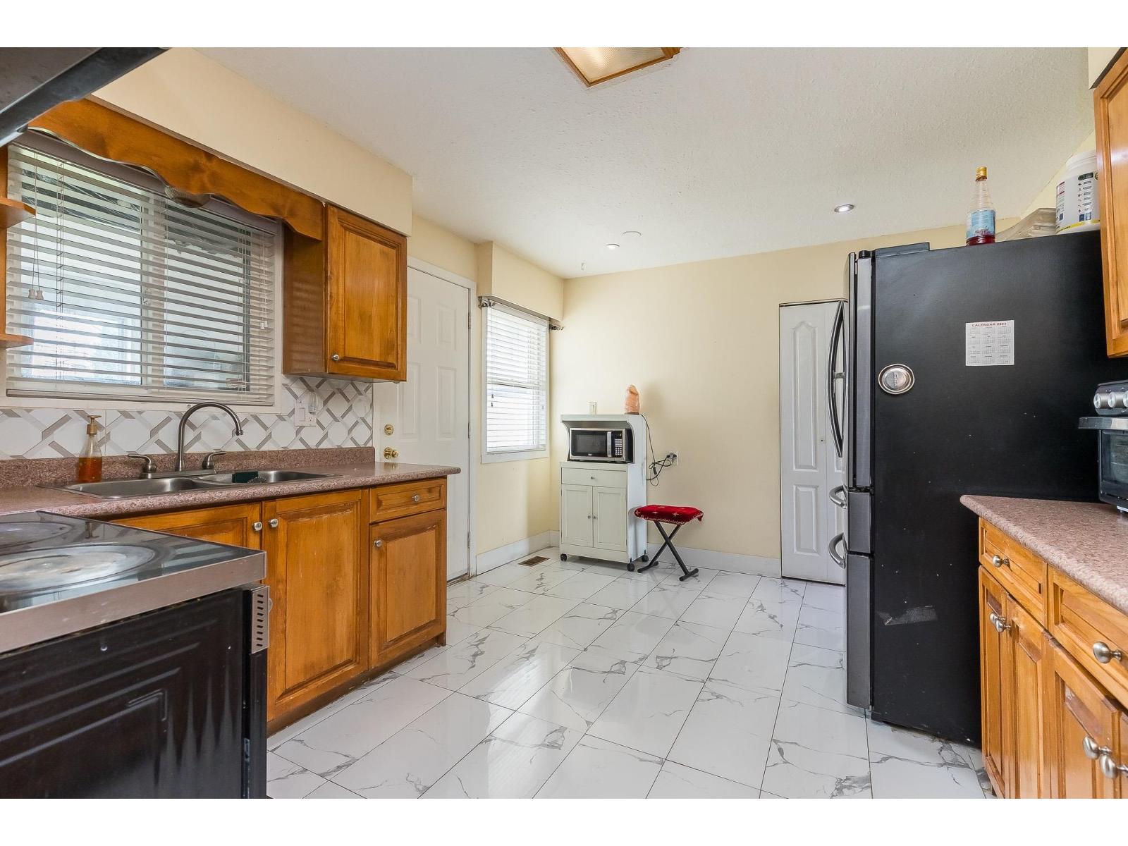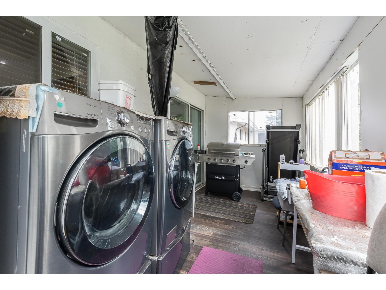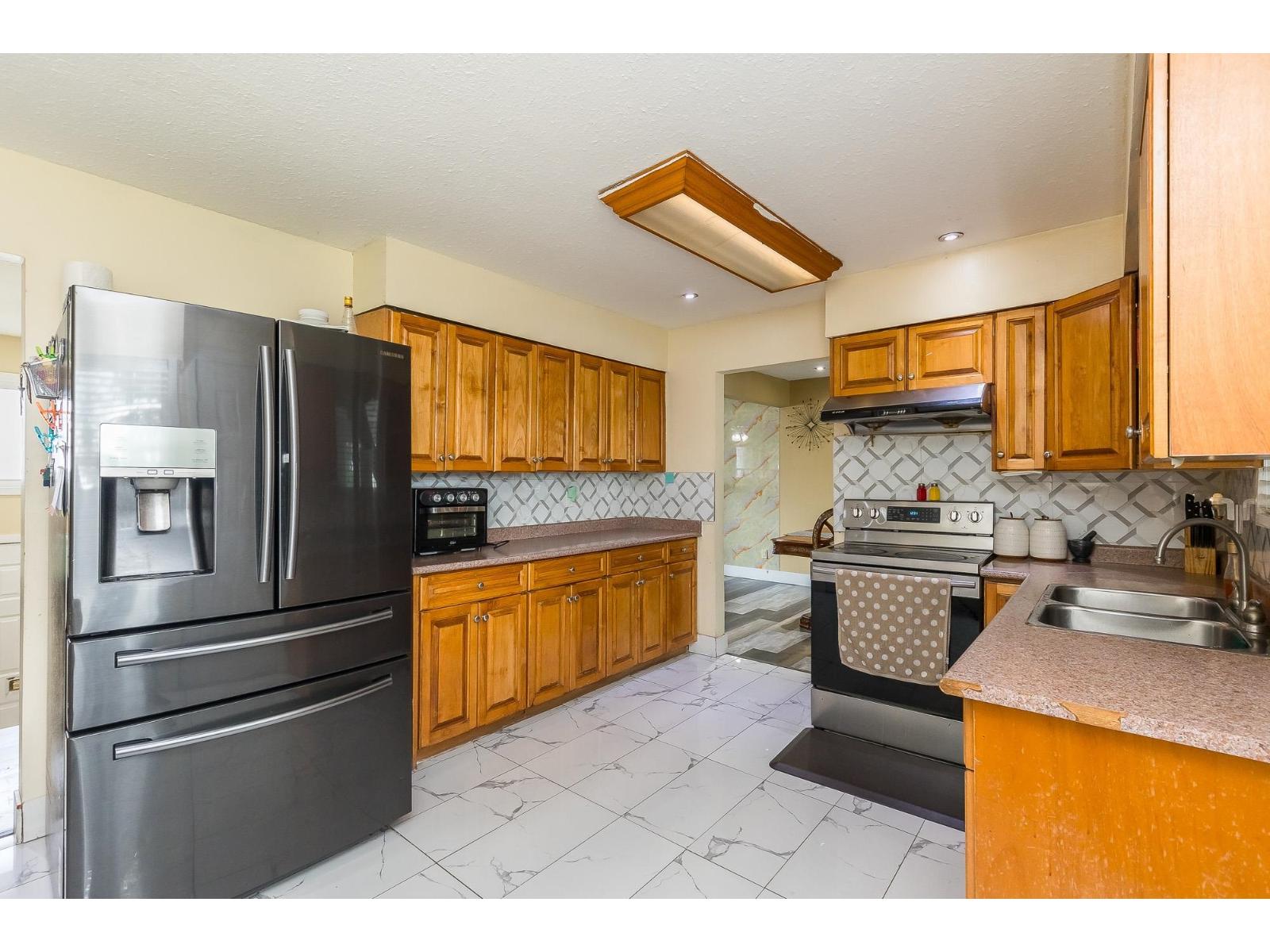 Central location, Huge flat lot without any easement or right of way to play or do family gathering, walking distance to Abbotsford Regional Hospital and Cancer Centre, Mill lake and easy access to highway 1. large 1/4 acre clean flat lot with 70' frontage and no easement. This house has 4 bedrooms & 2 bath for upstairs use and 2 bed 1 bath legal suite. Laundry on the covered patio, which has easy access for downstairs people as well. All windows has been updated and lock able storage shed in the backyard. Easy to show. (id:63510)
