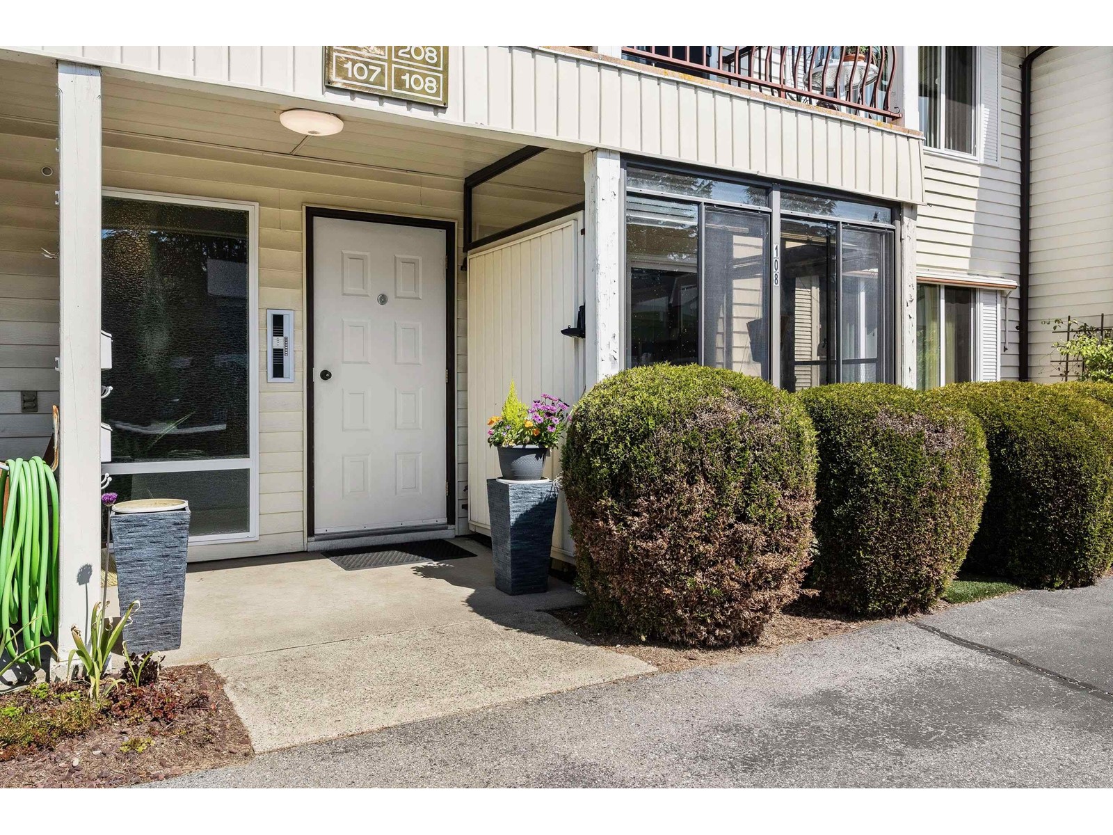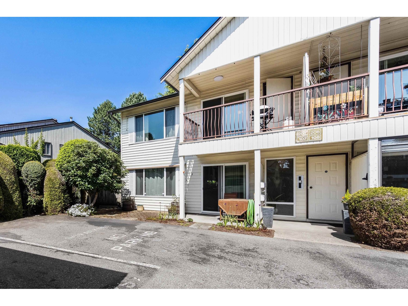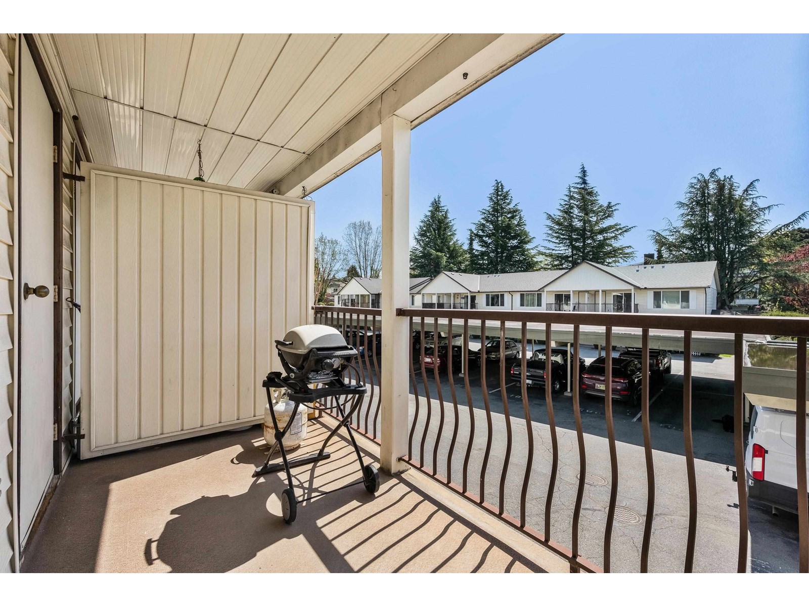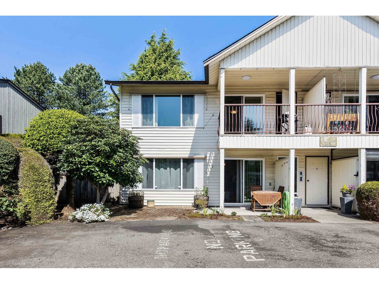 2 DOGS ALLOWED ANY SIZE!!! STRATA FEES COVER WATER AND ELECTRICITY! Don't miss this opportunity to own this spacious 2-bed, 1-bath unit in a great 55+ community in central Abbotsford. This upper-level unit has been updated with NEW windows, a NEW ROOF, new doors, new baseboards in bedrooms, fresh paint, updated bathroom with new shower insert. Enjoy the bright, open-concept living space, spacious bedrooms, and two storage rooms and convenient covered parking just steps from your front door! Step onto your south facing balcony to enjoy nature. Just steps from Mill Lake, Seven Oaks Mall, Superstore, Sikh temple and public transit. This well maintained complex includes a stocked WORKSHOP and CLUBHOUSE perfect for larger family events. QUICK POSSESSION POSSIBLE! (id:63510)