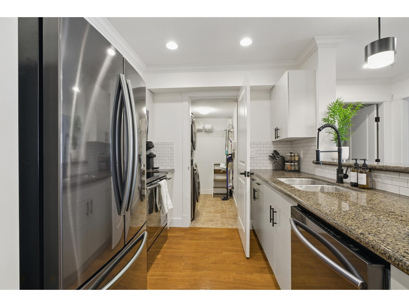 Beautifully updated 2 bed, 2 bath condo in The Brixton, located on the quiet side of the building. This spacious home features spa-inspired bathrooms, crown moulding, high-end black appliances, custom built-in entertainment cabinetry, wainscoting, and modern lighting. The primary bedroom includes a walk-in closet, and the kitchen offers a large pantry. Secure underground parking included, with a second stall currently rented for $60/month. Well-managed building with low strata fees in a central, convenient location close to all amenities. Move-in ready and full of stylish upgrades! (id:63510)