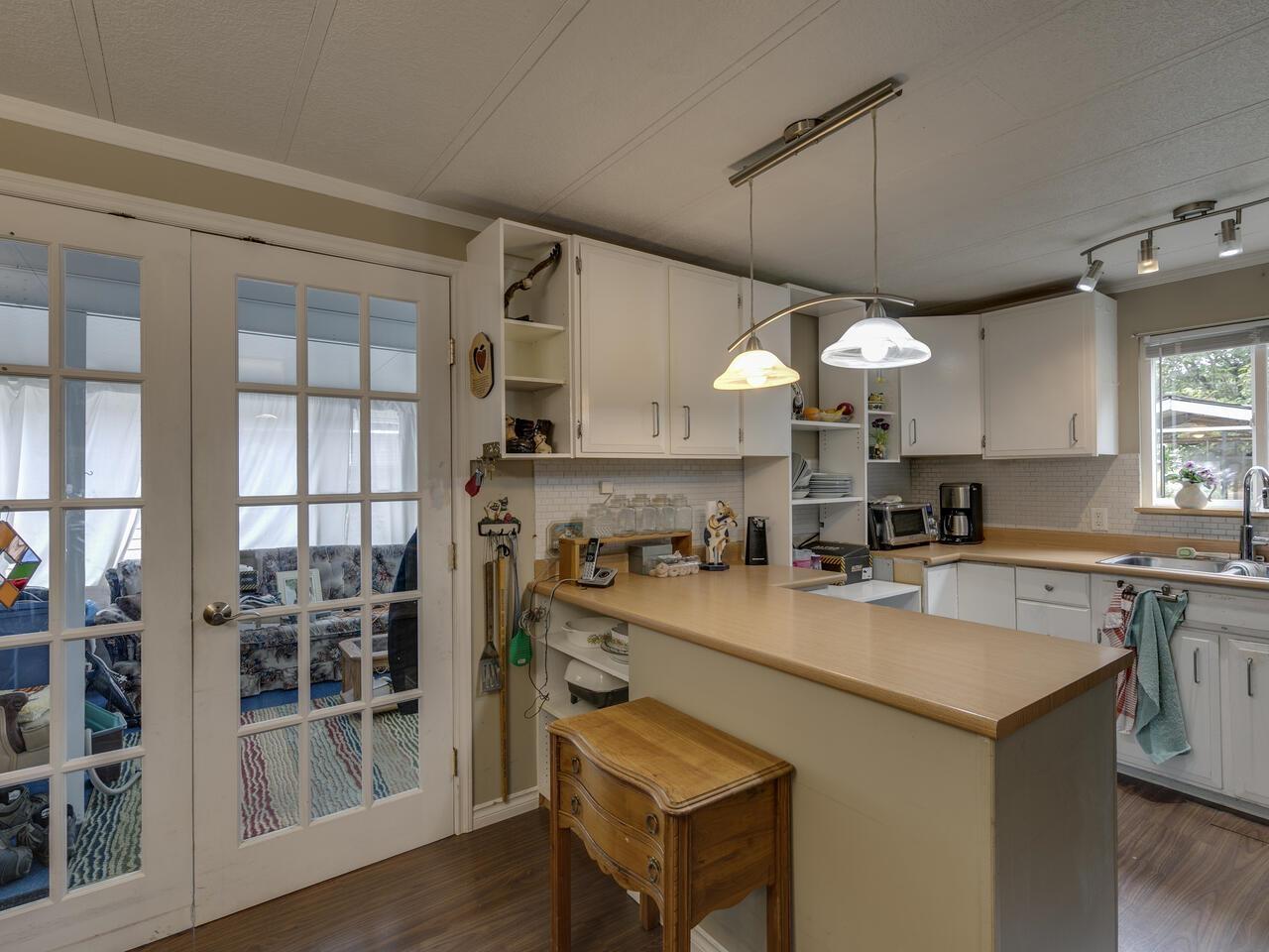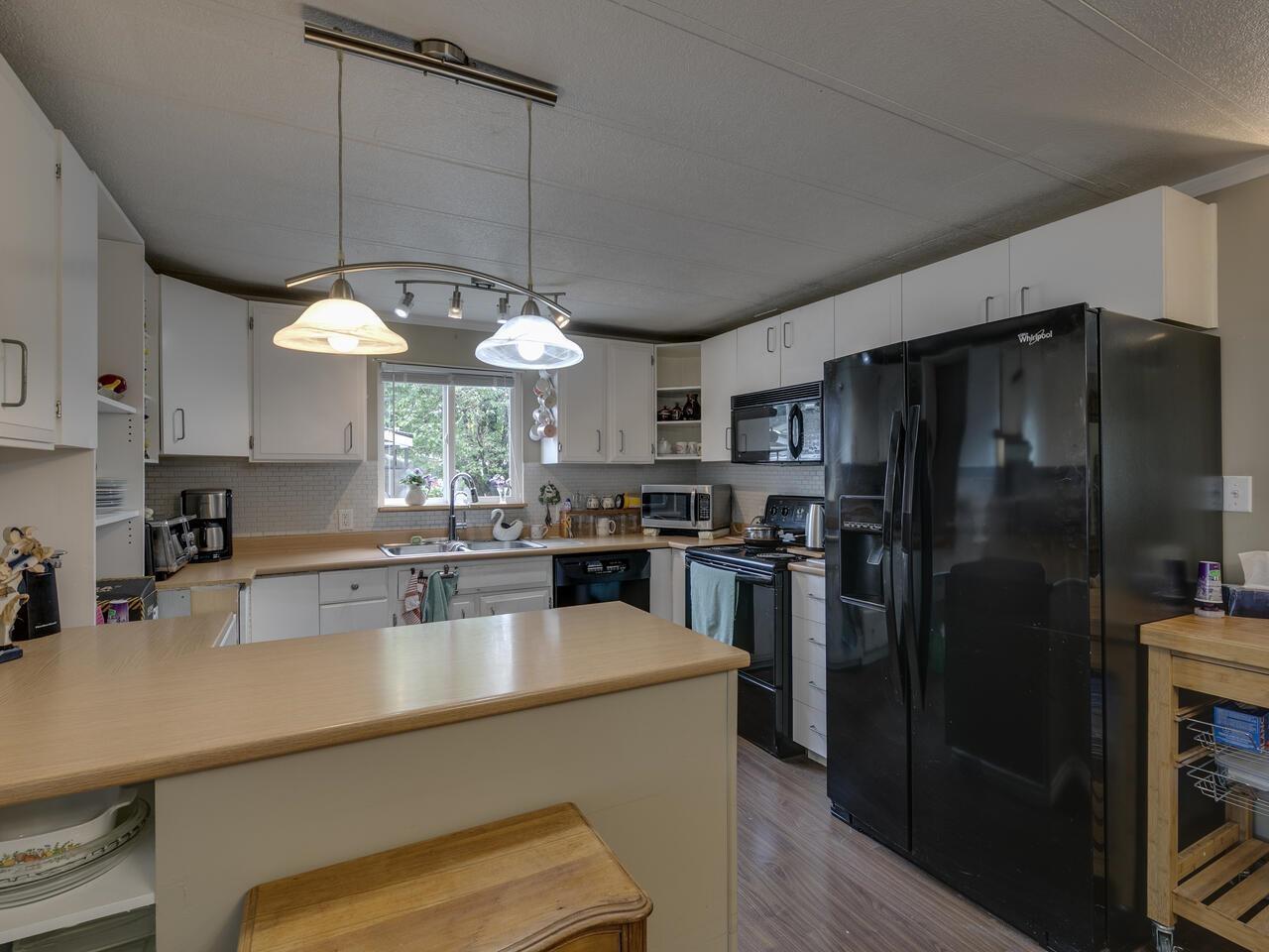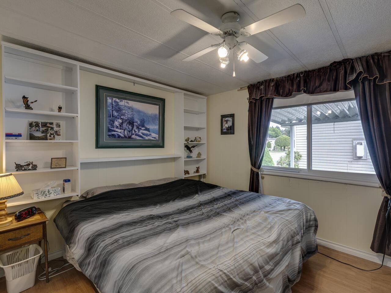 Nestled in the serene Paradise Park, this well-maintained 24x48 double-wide home offers a spacious and inviting layout. It features gas fireplaces and numerous extras, including a two-piece ensuite bath, central air conditioning, a large covered sundeck, and a storage shed. Situated on one of the largest lots in the park, this home is perfect for those aged 55 and over. Recent updates in 2016 include a new roof and siding, while the furnace and hot water tank have been replaced within the last four years. With two bedrooms, plus den and over 1,100 square feet of living space, this property is a true gem! (id:63510)