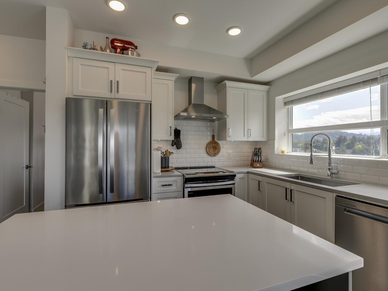 Discover the pinnacle of urban living in this stunning top-floor corner condo at "The Edge", renowned as one of the most luminous and desirable units in the development. This 2-bedroom, 2-bathroom residence boasts a sleek modern color palette, complemented by stainless steel appliances, and offers breathtaking views of downtown Abbotsford and the majestic Mt. Baker. Ideally situated close to all amenities, this condo is perfect for both personal living and investment, as the development is investor-friendly. Residents can also enjoy a spacious 1,500 square foot rooftop deck, perfect for relaxation and social gatherings. Don't miss out-contact us today! (id:63510)