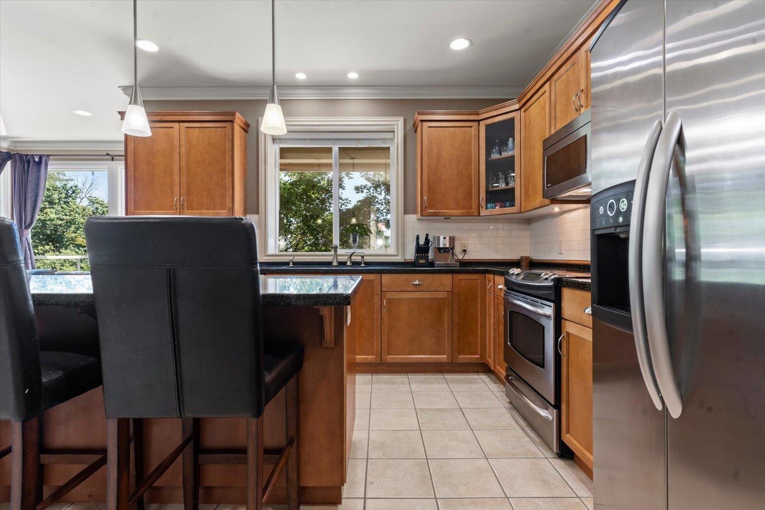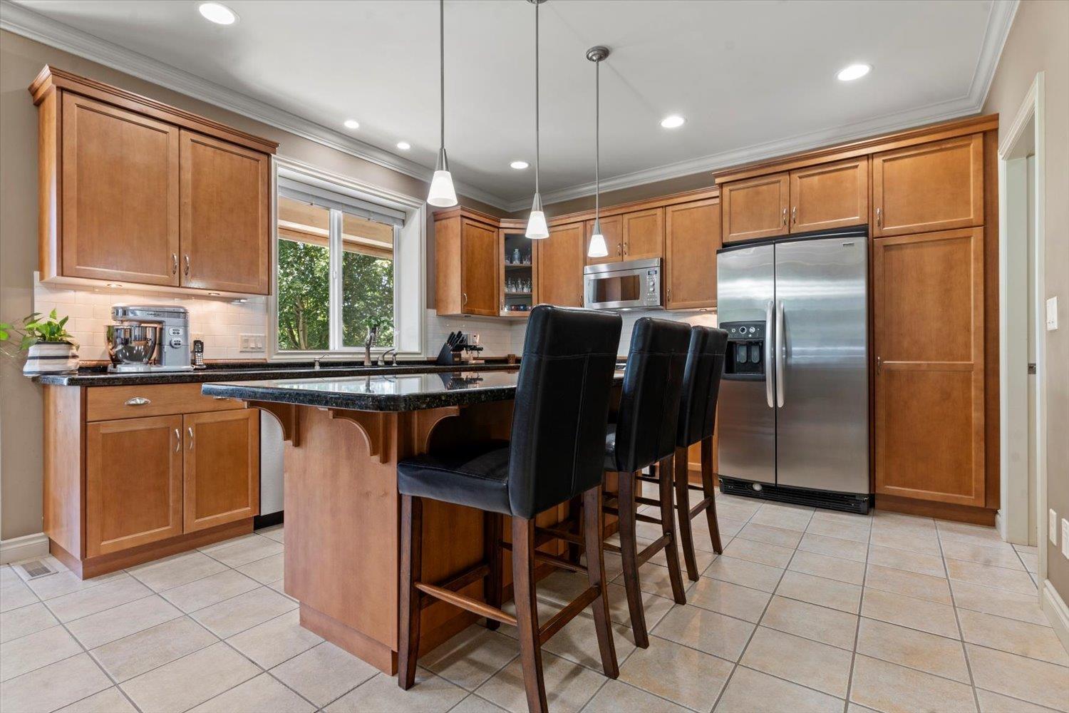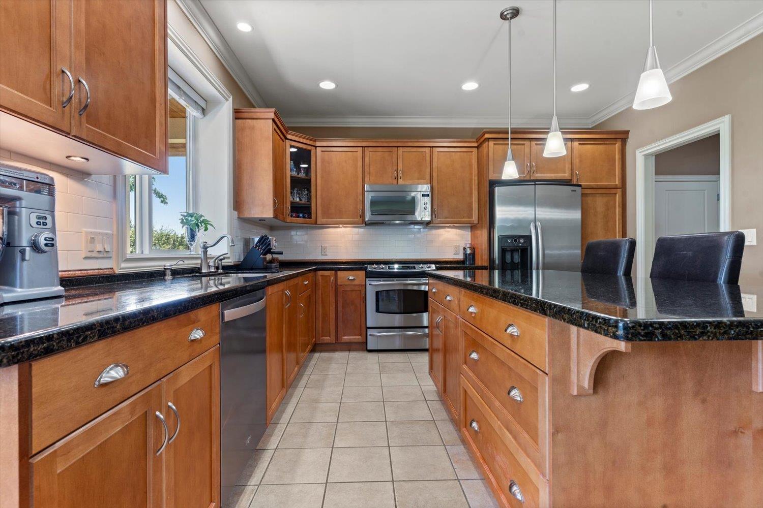 Discover a hidden gem on Cardiff Place in East Abbotsford with stunning Mt. Baker views! This 3,800+ sq ft home is well kept by the original owner and features a bright south-facing open plan with 9 ft ceilings (10 ft in basement), large picture window in the nook, and a gas fireplace with slate stonework. The kitchen boasts a custom oversized granite island, while the foyer and laundry offer oversized closets for ample storage. Upstairs, the spacious primary suite fits a king bed with sitting area, hardwood accents, and ensuite tub with mountain views. Enjoy all-bright rooms, a covered balcony, new hot water tank & gas furnace (2024), and optional furniture. Sought-after neighbourhood close to schools, shopping & Hwy 1. (id:63510)