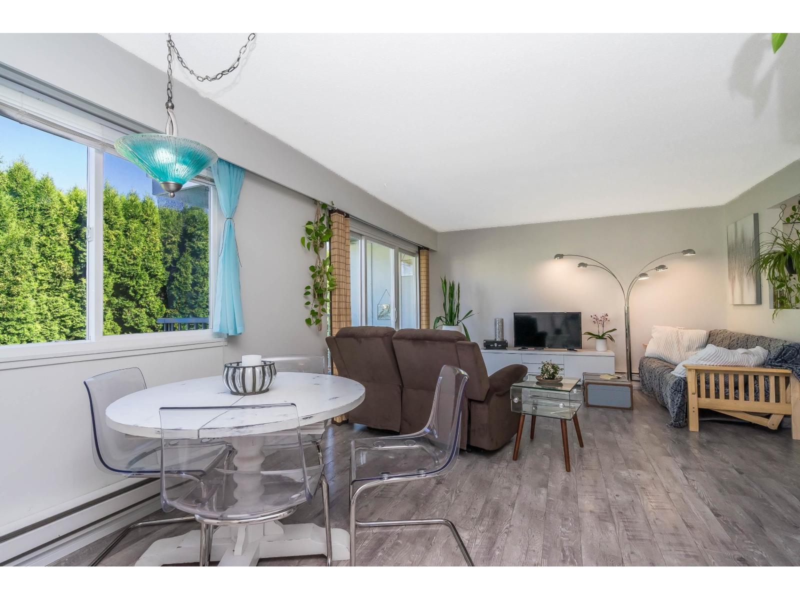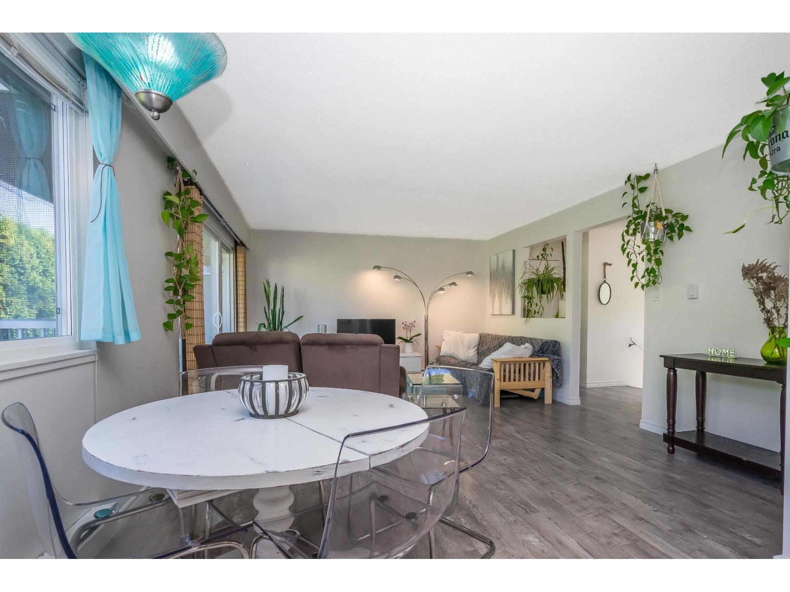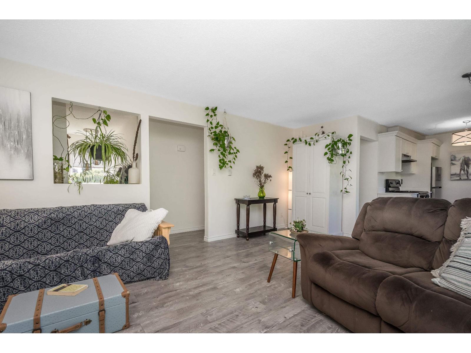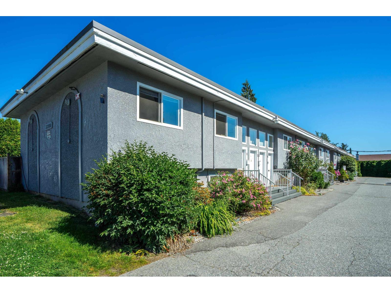 Welcome to this Stunning, Private, Beautifully Updated upper end unit townhome with 2 large bedrooms & bright & spacious one-level living in a quiet, well-located community. This home features a modern open plan layout, enhanced with updated white cabinets, sleek quartz countertops, stainless steel appliances, updated bathroom, flooring, fresh paint, double windows & contemporary finishes throughout. Large east & west facing windows flood the space with light, while sliding glass doors off the living room open to a large covered deck with a Private outlook-perfect for relaxing or entertaining. Enjoy the convenience of two parking stalls right outside your door & a prime location minutes to everything, the University of the Fraser Valley & easy access to Highways 1 & 11. Two pets with no size restriction & rentals allowed. This fantastic, move-in ready home is the perfect opportunity for first-time buyers, downsizers or investors. A Must See! (id:63510)