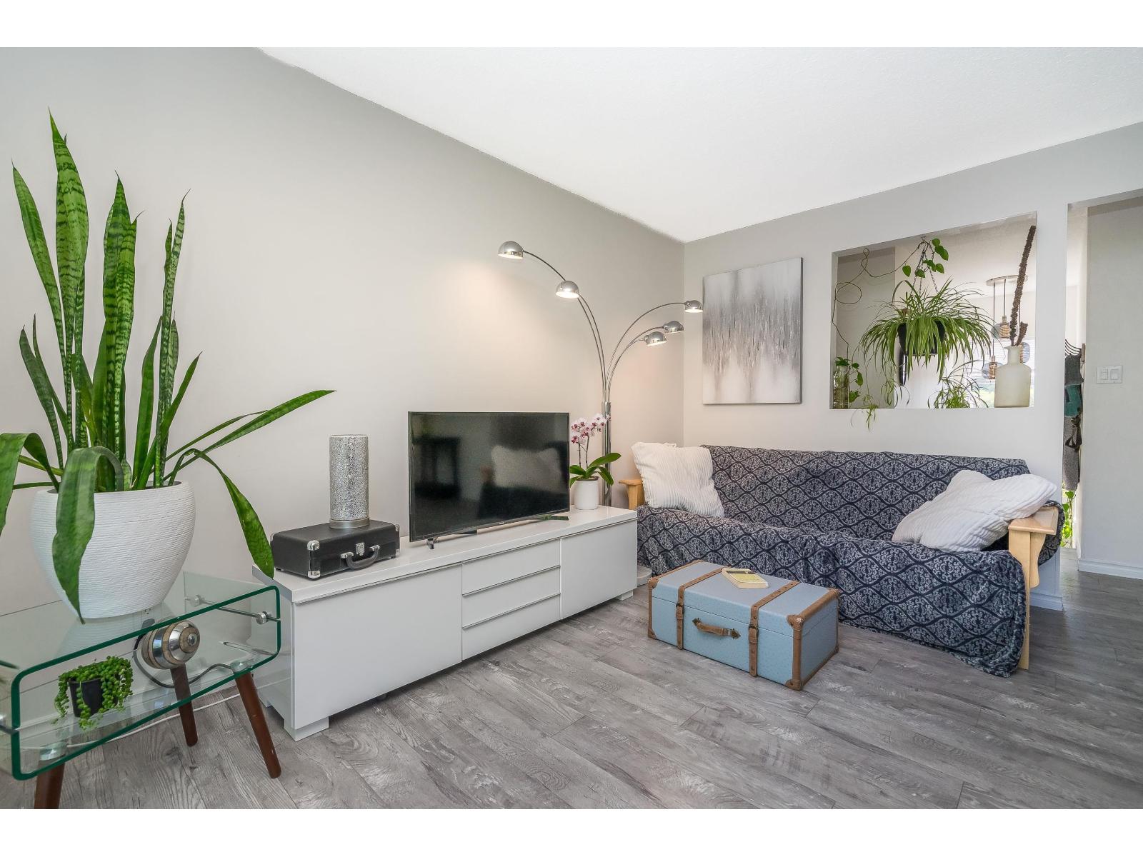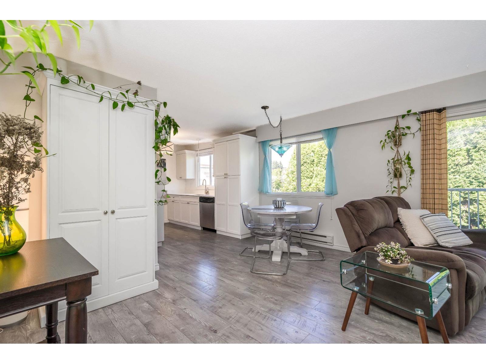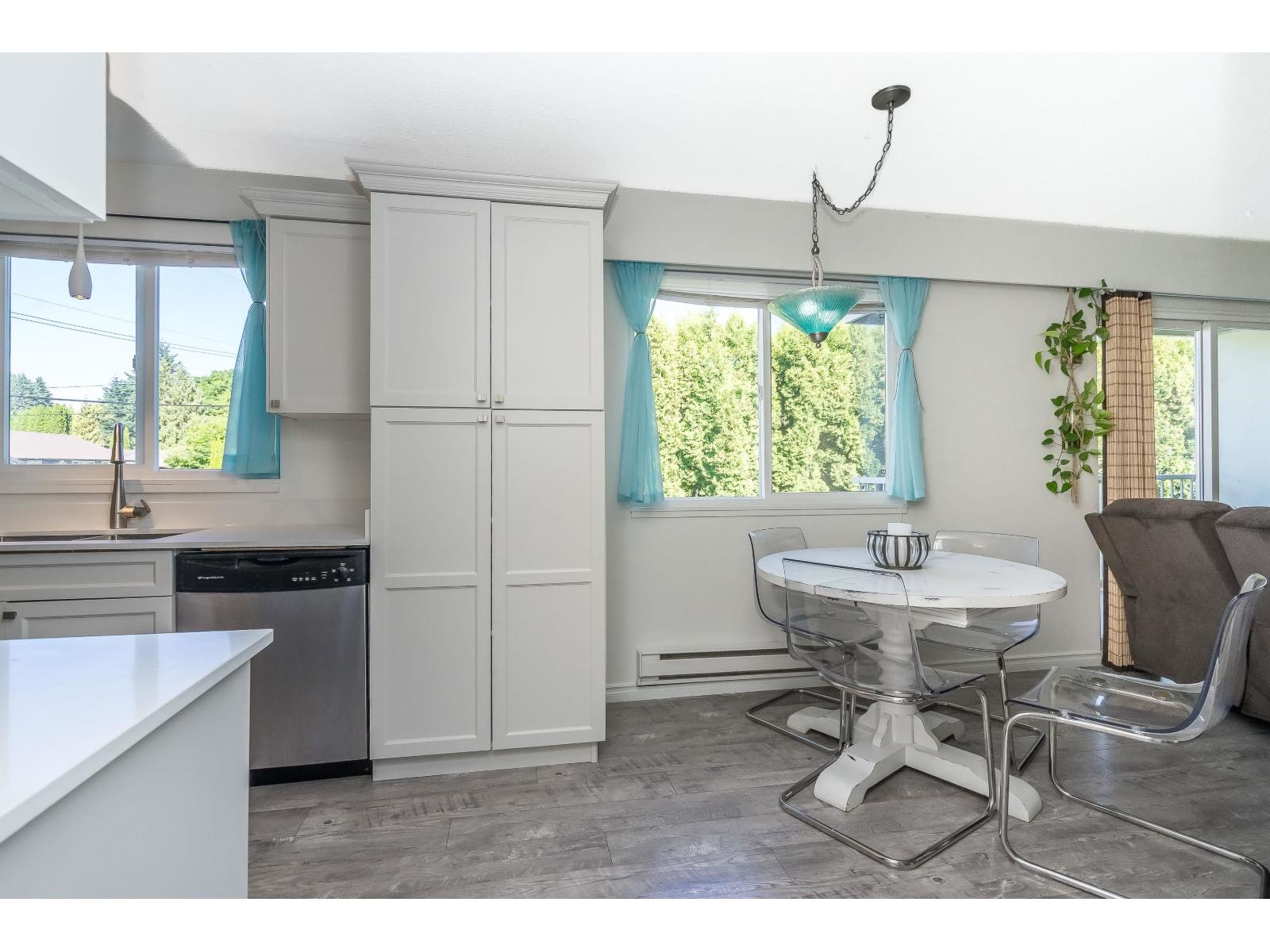 Welcome to this Stunning, Private, Beautifully Updated upper end unit townhome with 2 large bedrooms & bright & spacious one-level living in a quiet, well-located community. This home features a modern open plan layout, enhanced with updated white cabinets, sleek quartz countertops, stainless steel appliances, updated bathroom, flooring, fresh paint, double windows & contemporary finishes throughout. Large east & west facing windows flood the space with light, while sliding glass doors off the living room open to a large covered deck with a Private outlook-perfect for relaxing or entertaining. Enjoy the convenience of two parking stalls right outside your door & a prime location minutes to everything, the University of the Fraser Valley & easy access to Highways 1 & 11. Two pets with no size restriction & rentals allowed. This fantastic, move-in ready home is the perfect opportunity for first-time buyers, downsizers or investors. A Must See! (id:63510)