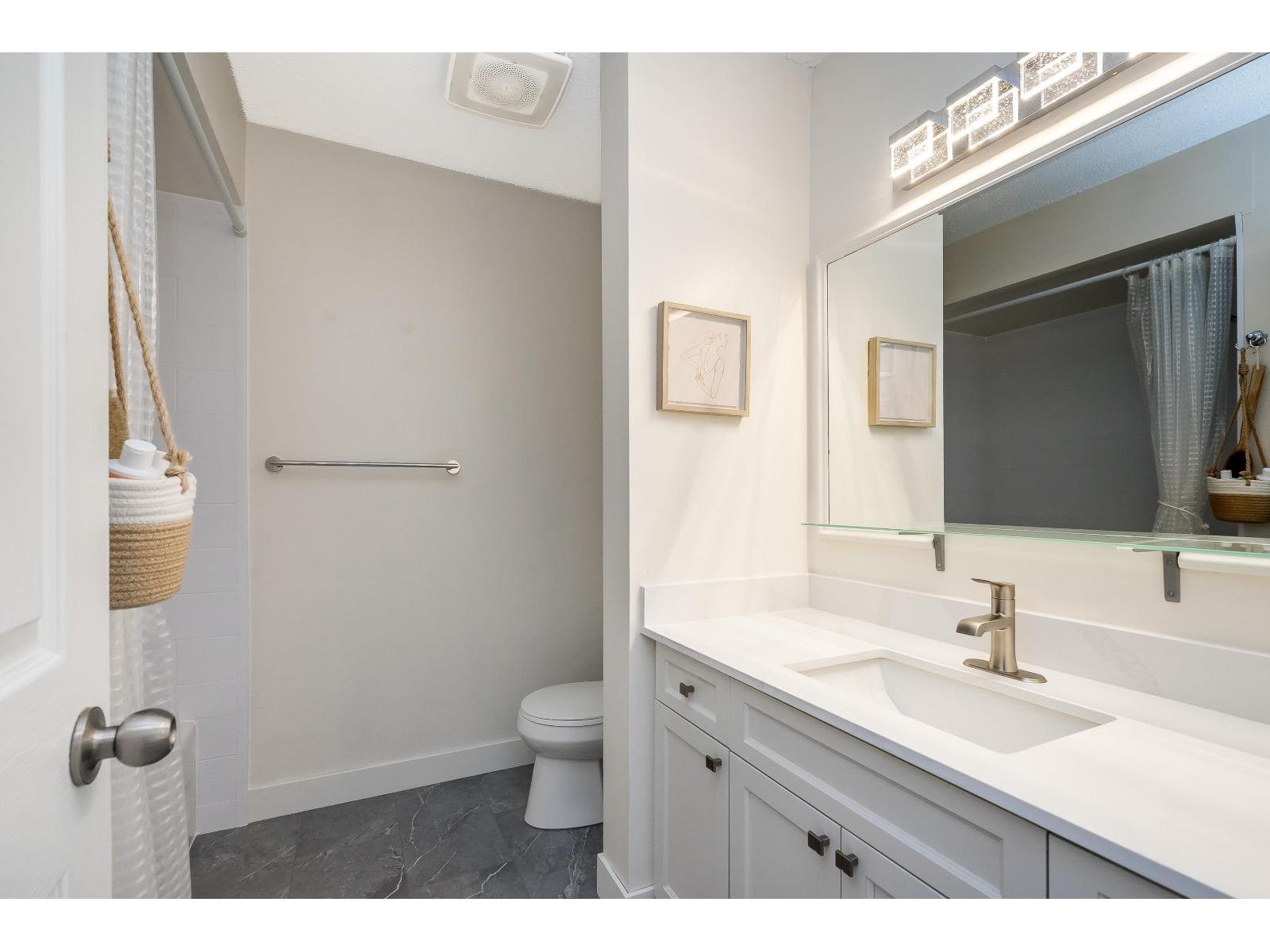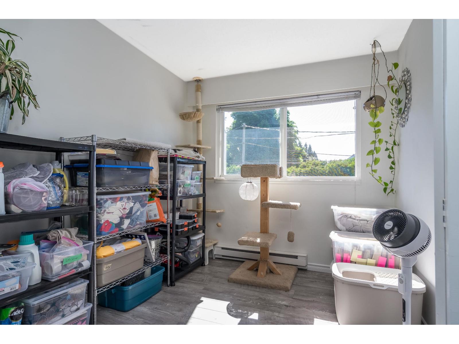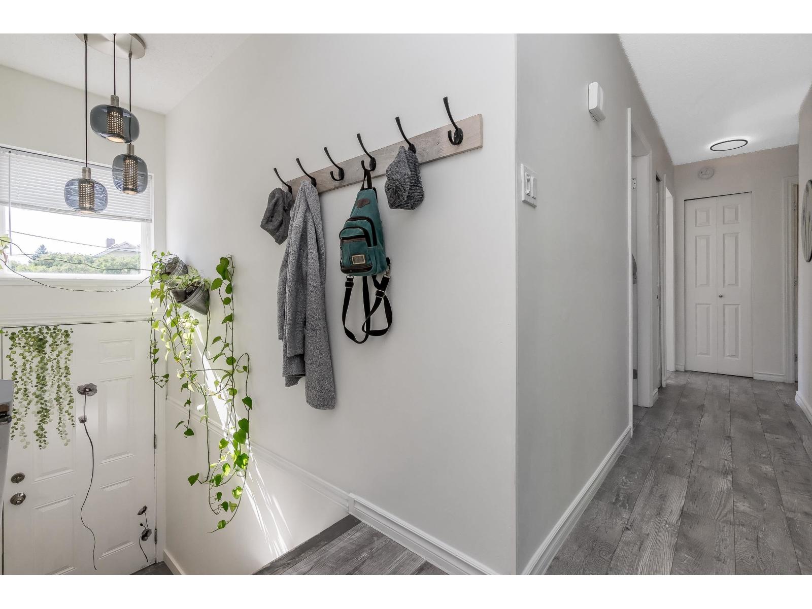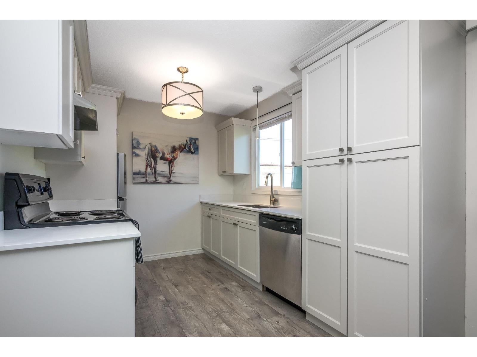 Welcome to this Stunning, Private, Beautifully Updated upper end unit townhome with 2 large bedrooms & bright & spacious one-level living in a quiet, well-located community. This home features a modern open plan layout, enhanced with updated white cabinets, sleek quartz countertops, stainless steel appliances, updated bathroom, flooring, fresh paint, double windows & contemporary finishes throughout. Large east & west facing windows flood the space with light, while sliding glass doors off the living room open to a large covered deck with a Private outlook-perfect for relaxing or entertaining. Enjoy the convenience of two parking stalls right outside your door & a prime location minutes to everything, the University of the Fraser Valley & easy access to Highways 1 & 11. Two pets with no size restriction & rentals allowed. This fantastic, move-in ready home is the perfect opportunity for first-time buyers, downsizers or investors. A Must See! (id:63510)