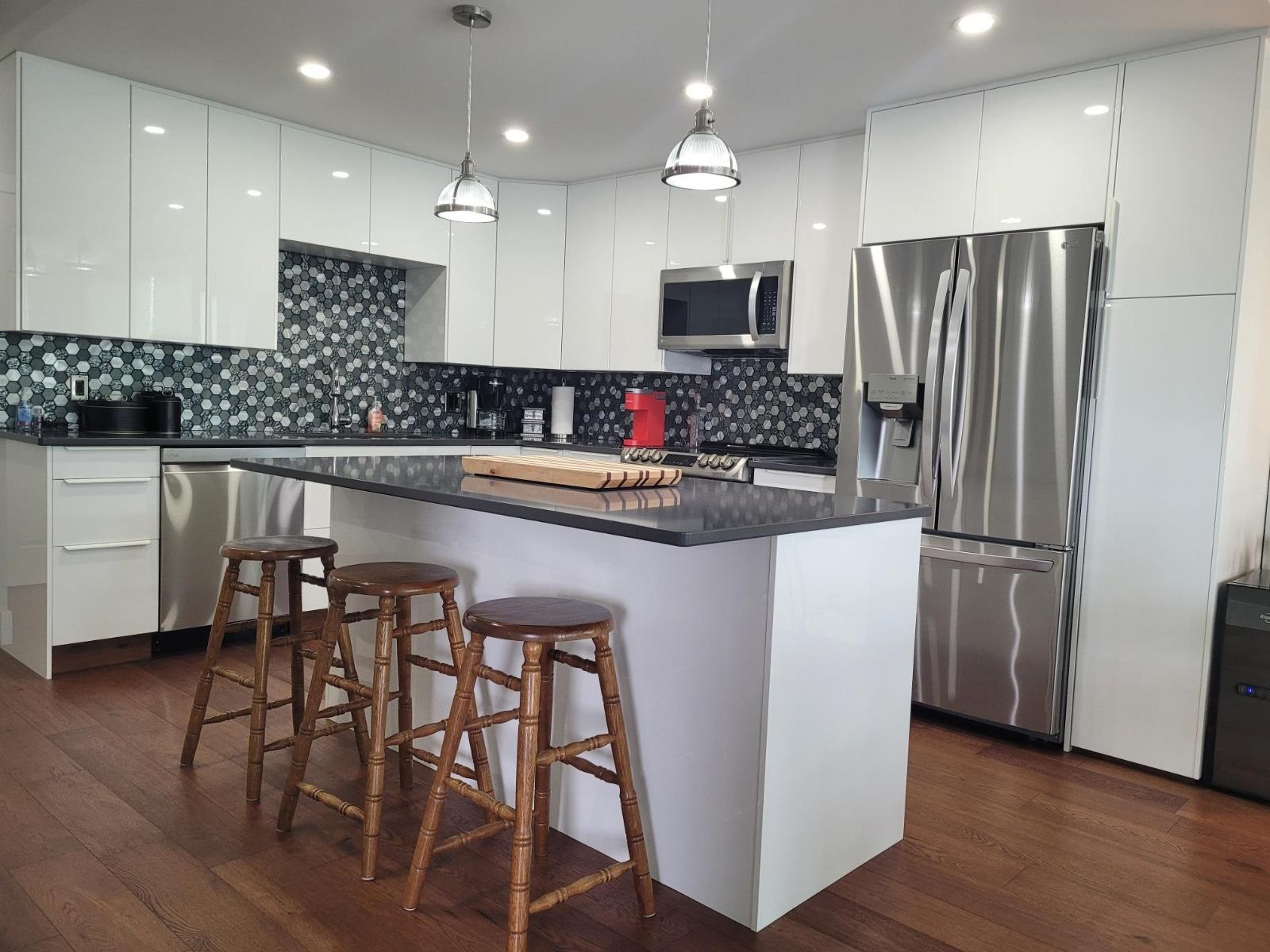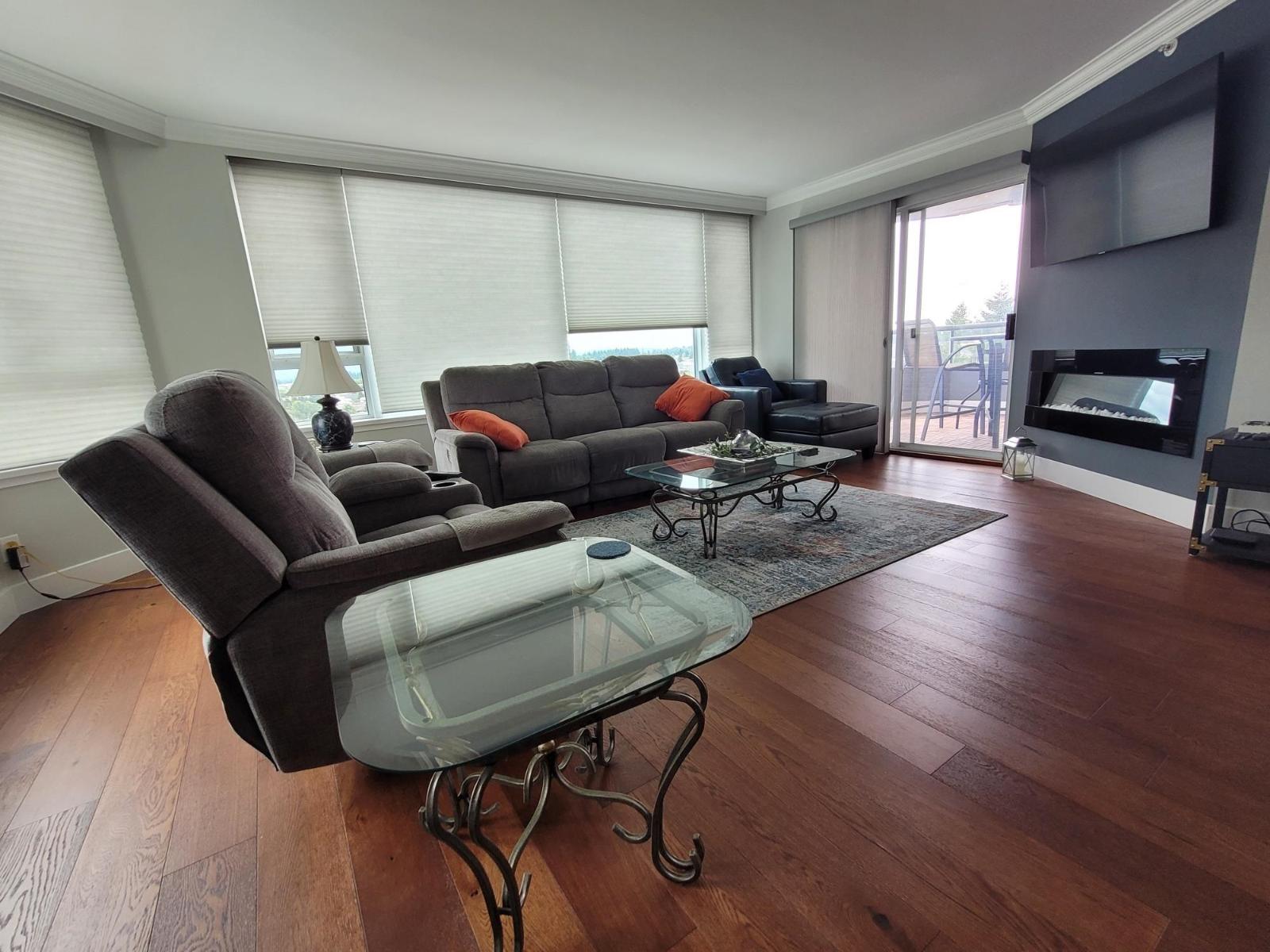 If you are looking for a new home in resort style living then you will fall in love with this completely updated executive open floor plan home. Your upgrades include wide plank hardwood flooring, custom lightening fixtures & window coverings, plenty of custom cupboards, kitchen with island & roll out shelves, newer appliances, custom feature wall with electric fireplace, new bathrooms with soft touch lighted mirrors, primary suit with custom matching closets.Sundeck with wood style floor for barbecue evenings. South Sunset Views & Mountain East Views. 4 ceiling light fans keep this unit cool. Regency's amenities-indoor pool/hot tub/ sauna, exercise rooms, 3 guest suites, workshop, entertainment room. Storage unit. 2 parking spots, RV parking. 55+ no pets. Low Fees. (id:63510)