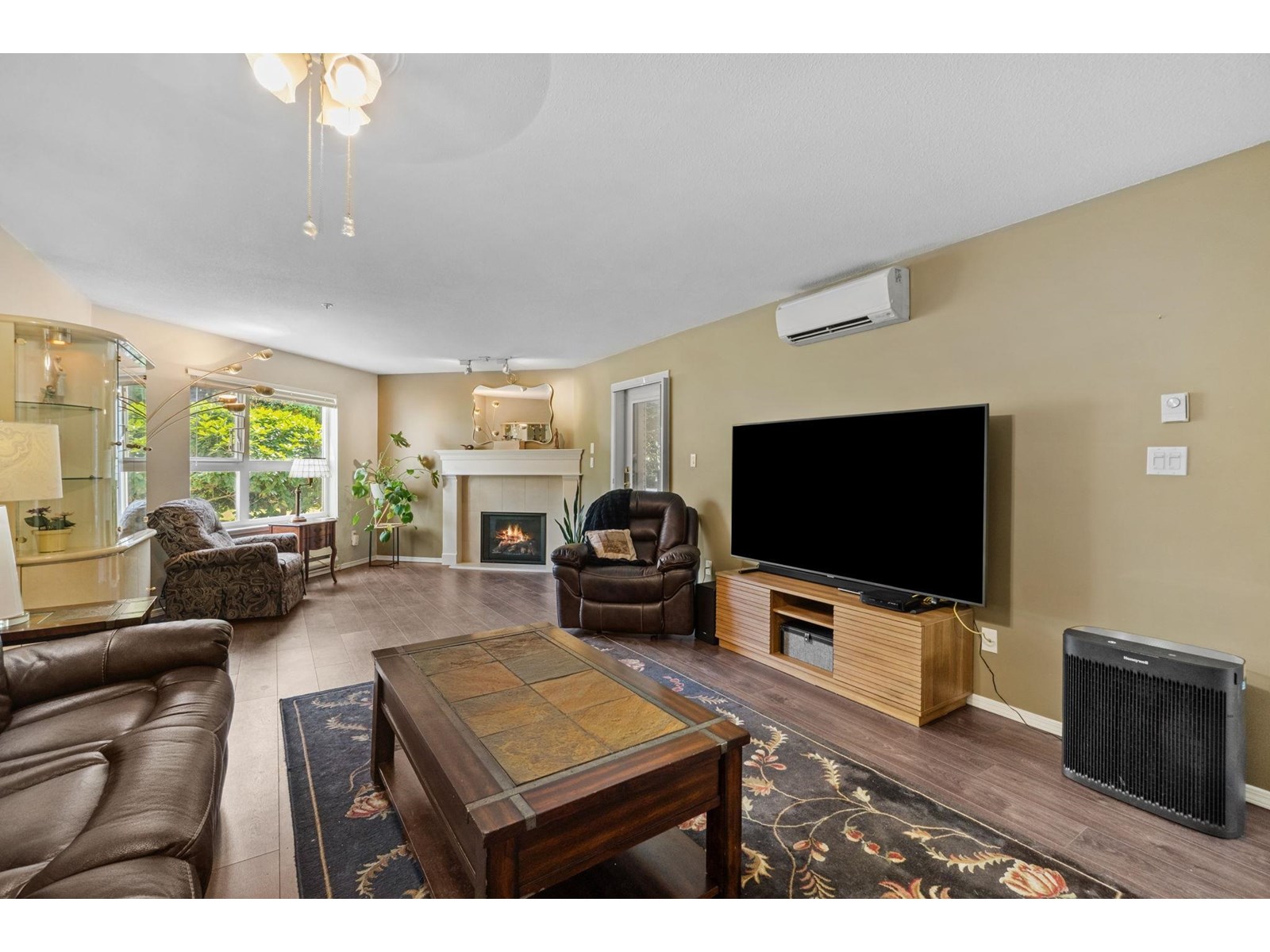 Located in the sought after Regency Park! This spacious 2 bed 2 bath Ground level home features new high end appliances, A/C, gas fireplace, in-suite laundry, and a large private patio! Enjoy top-tier amenities including an indoor pool, hot tub, gym, guest suite, games room, and workshop. Centrally located in Abbotsford with quick access to shopping, schools, and Hwy 1. Rentals allowed, pets welcome with restrictions. One of the largest floor plans in the community, don't miss it! (id:63510)