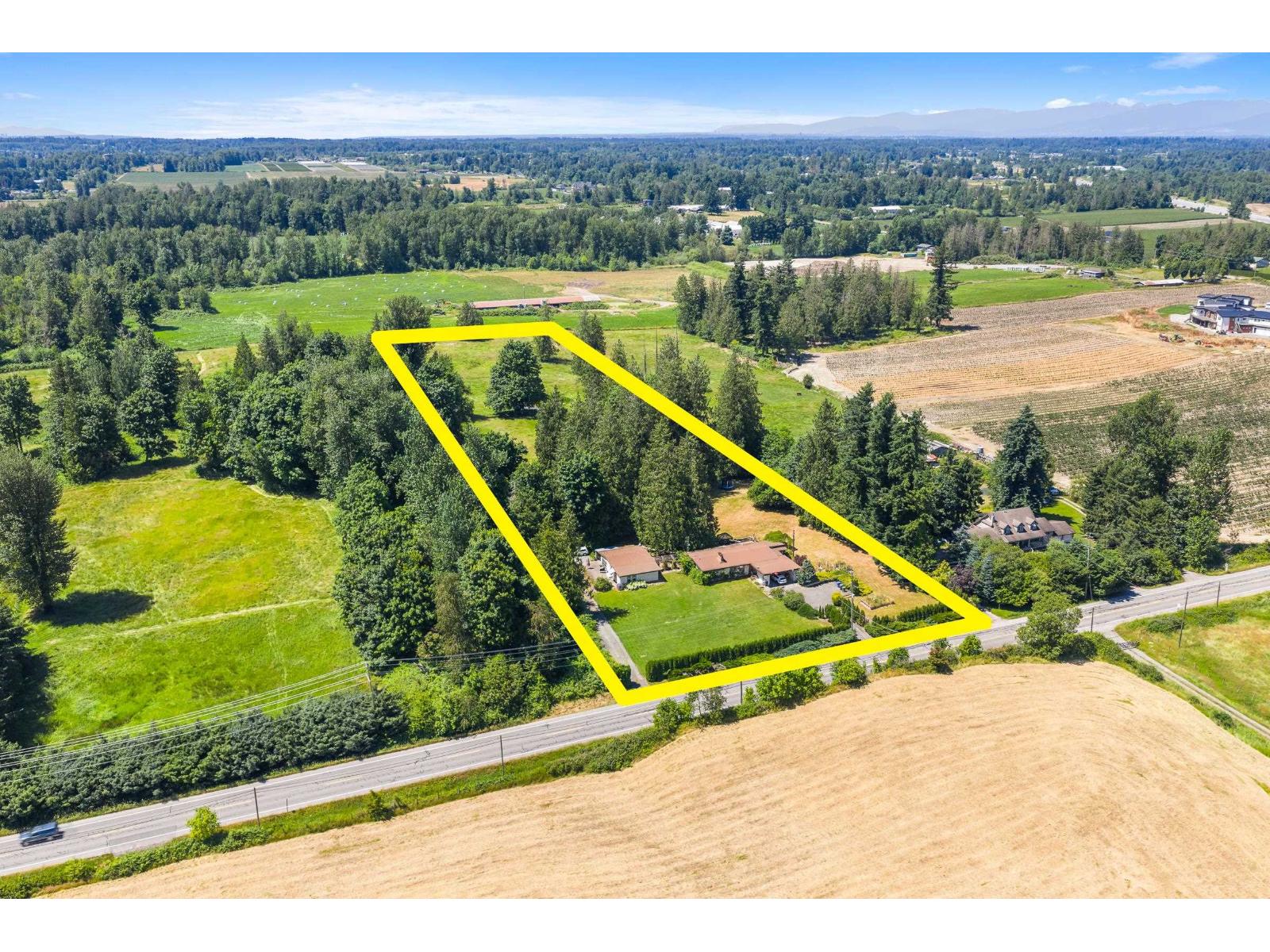 6 Acres set up for multifamily living with private backyard! The picturesque property sits high from the road, 245 FT frontage and has City Water! The main home is 3570 SQ/FT w/ in ground basement, has suite potential. Upstairs features bright family room, spacious renovated kitchen, living room, primary bedroom w/ large ensuite, bedroom & bath. Downstairs has rec room, office (bedroom?), storage. Along with a summer kitchen, washroom & 2 bedrooms. The 2nd 1196 SQ/FT home features bright living/kitchen, 3 bedrooms & bathroom. Older outbuilding for some livestock. Land is fenced & well drained. Homes set approx. 100 FT off the road, private backyard, & has farm/mountain views. LOCATION! Mins to Hwy 1, Fraser Hwy, 16 Ave, Aldergrove & Abbotsford. 2 Driveways - great for truckers/equipment. (id:63510)