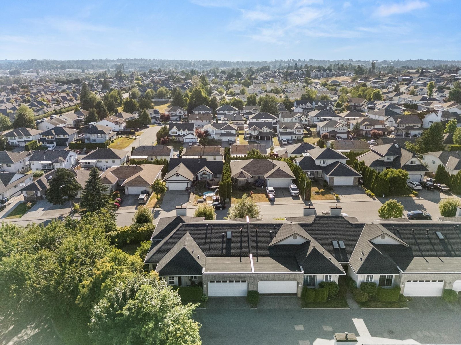 Welcome to LakePointe Villas, nestled around Ponderosa Park Lake and linked to the Discovery Trail system! This rare rancher-style end-unit townhouse with a walkout basement offers luxurious, low-maintenance living in one of Abbotsford's most desirable communities. Enjoy a brand-new 2025 roof, views of the Airshow from your main floor sundeck, and added privacy beside mature greenery. The spacious layout includes 3 bedrooms, 3 full bathrooms, soaring 12-ft ceilings in the living room, granite counters, crown moulding, laminate floors, new carpet on stairs, and updated appliances. The basement boasts a large rec room, workshop, carpeted crawlspace, and a covered patio. Additional features include a double garage, new furnace & A/C. RV parking available. All ages welcome. Pets allowed! (id:63510)