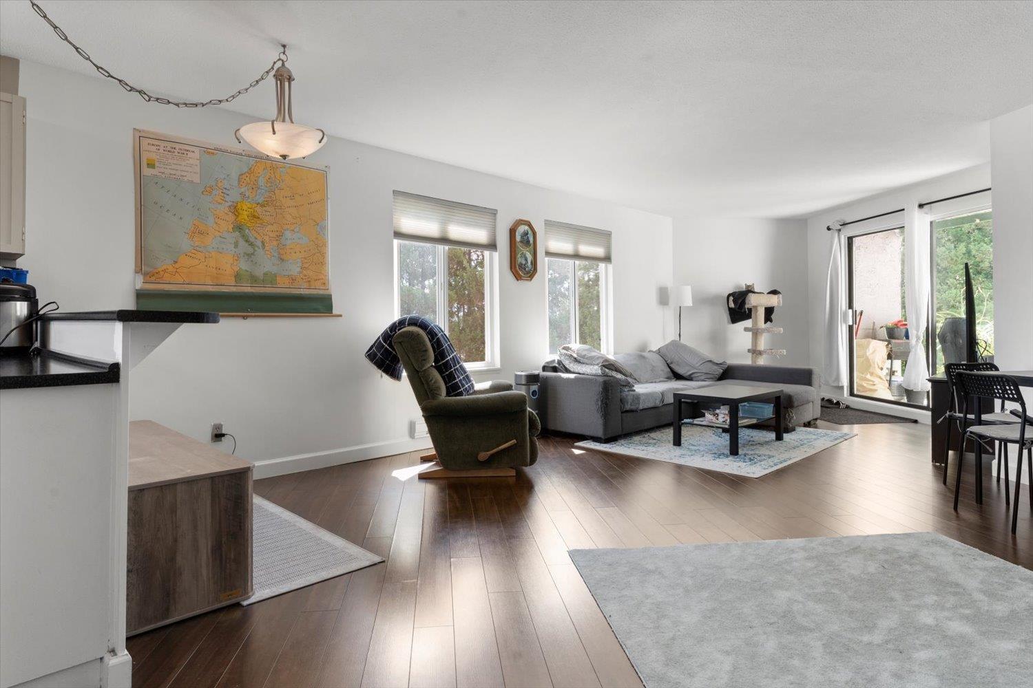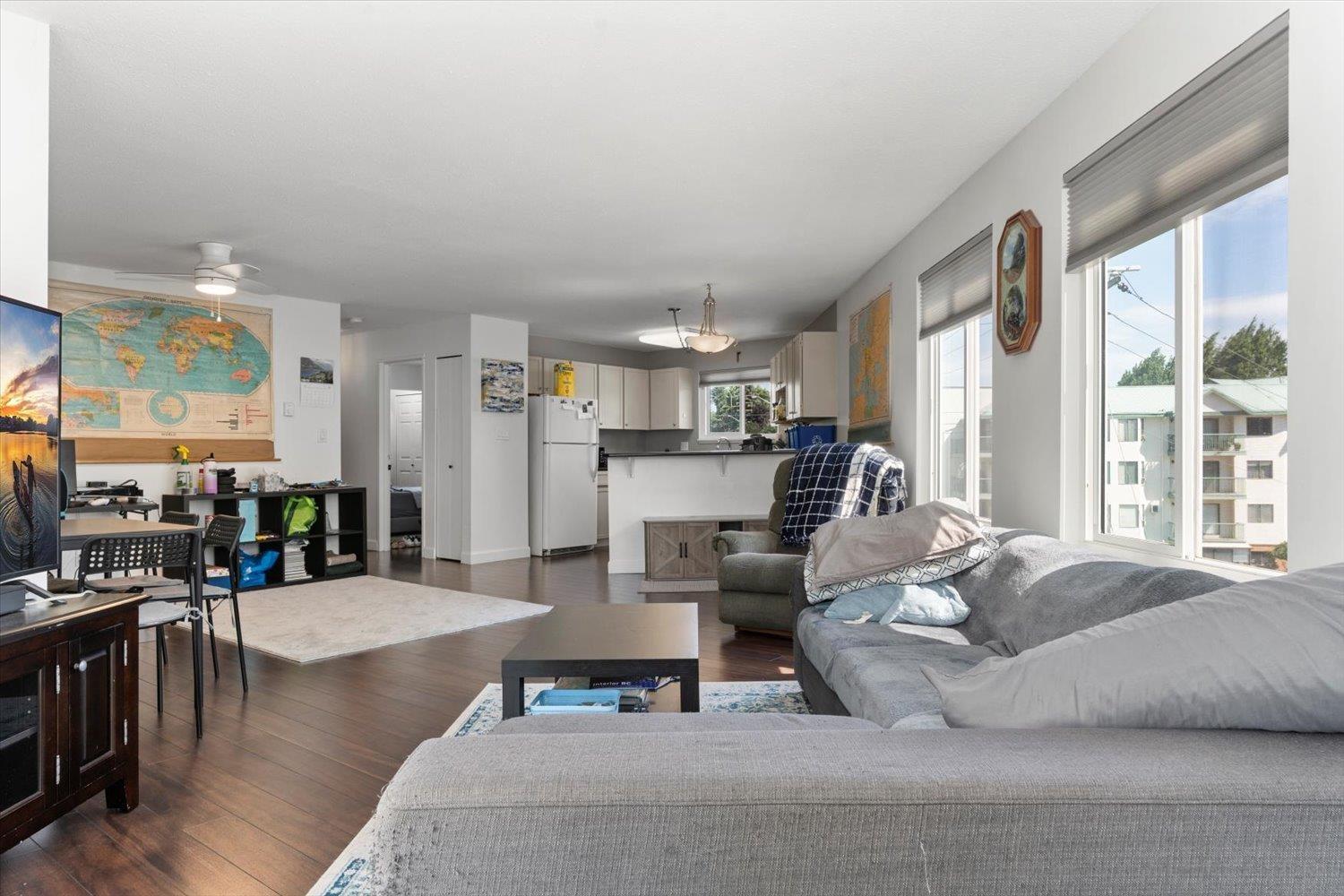 Top floor corner unit in the heart of historic Downtown Abbotsford! This bright one-bedroom condo features an open floor plan with an abundance of natural light, newer laminate flooring, newer paint throughout, and updated appliances. Enjoy in-suite laundry, a spacious deck, and underground parking. Just steps to transit, boutique shops, and trendy restaurants. Pet-friendly (up to 2 pets ok), and ideal for first-time buyers or investors. Don't miss this stylish, move-in-ready home in a highly walkable, convenient location! Contact us today to book your personal tour. (id:63510)