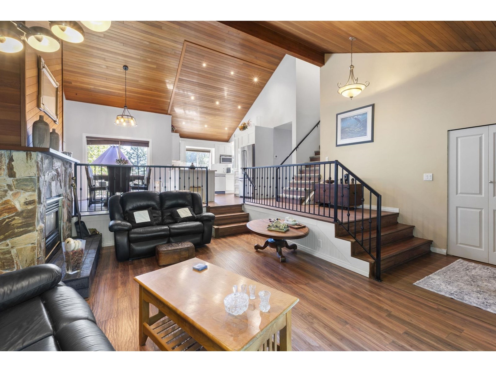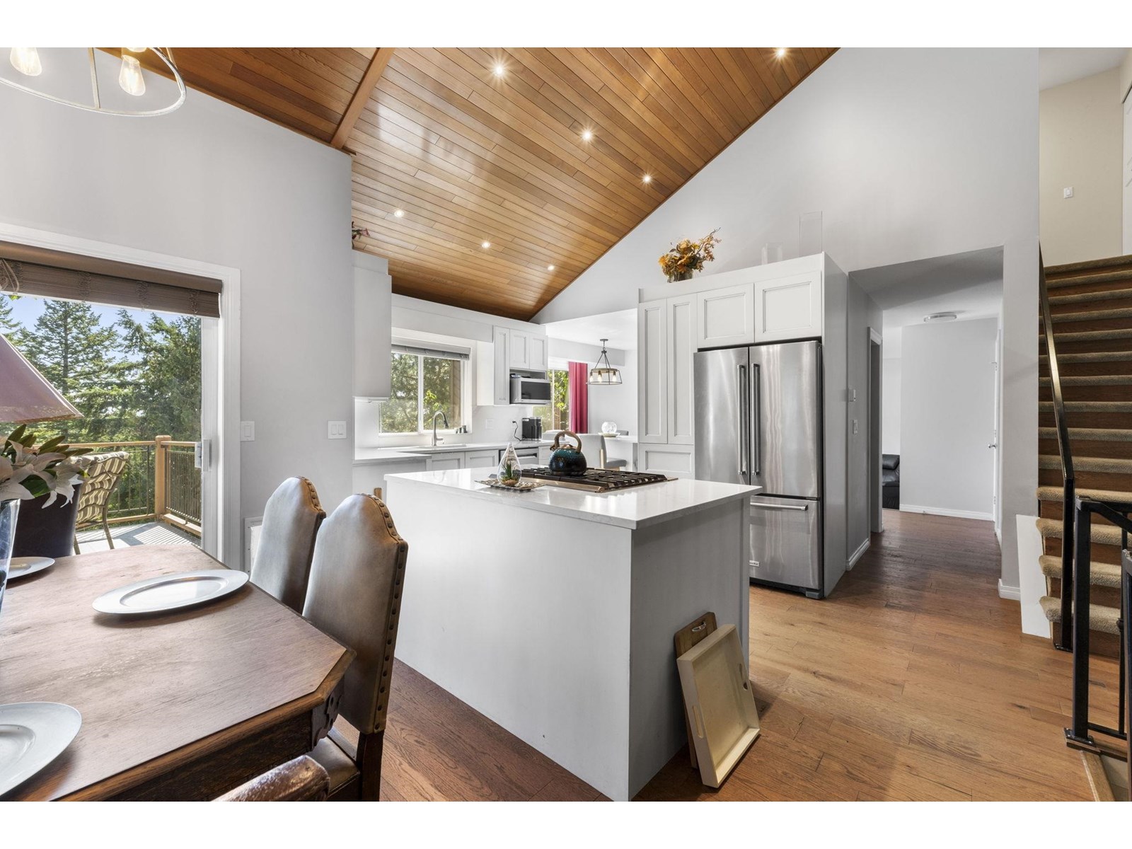Nestled on a quiet cul-de-sac on Glenn Mountain, this beautifully updated home offers privacy, western peek-a-boo views, and vaulted ceilings. Enjoy engineered hardwood, heated floors, updated lighting, and en-suite bathrooms with jacuzzis in both the basement suite and the primary bedroom. The large deck overlooks low-maintenance gardens and sunset views. The one-bedroom suite is one of the best you'll find, featuring a large den, two bathrooms, stainless steel appliances, a separate entrance, heated kitchen and bathroom floors, a walk-out patio and its own laundry facilities. Additional features include tankless hot water, central A/C/heat pump, and updated kitchens. A true gem in a serene setting, a great school catchment, and close to all amenities. (id:63510)