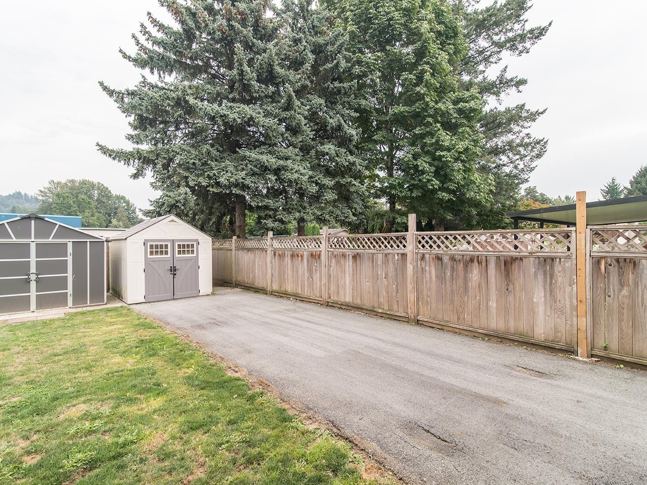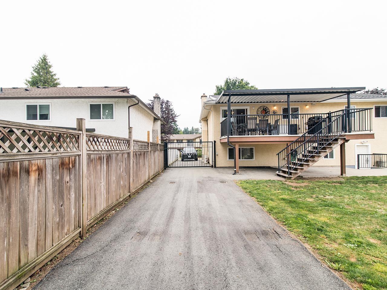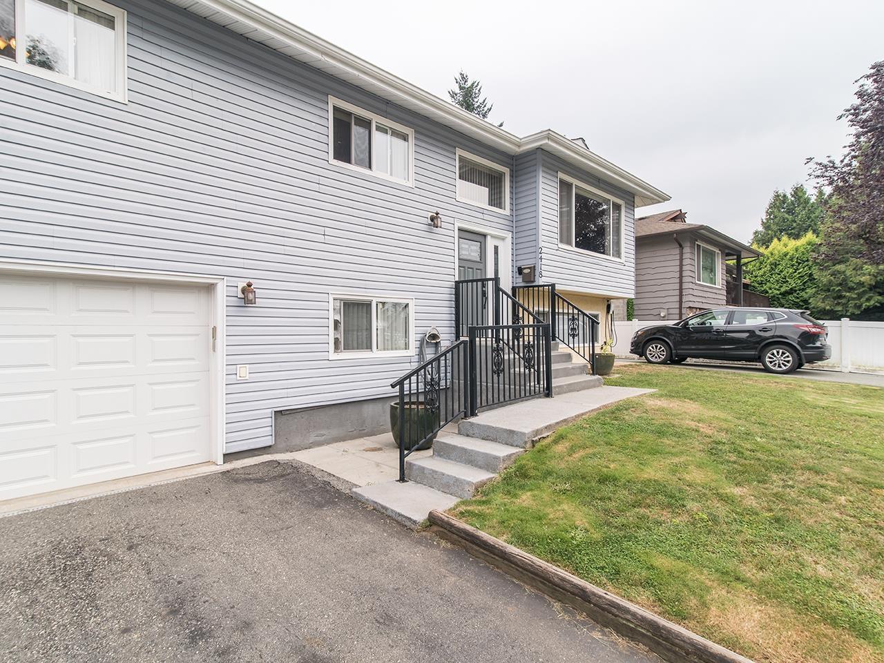 This is a fantastic opportunity to get into a clean family home with a 2bd legal fully contained suite w laundry and great for someone with mobility issues. Located in one of the most convenient areas of Abbotsford with schools, rec center, shopping all steps away and conveniently situated for commuters. You will love the huge fenced private yard for the kids & pets, a large covered patio for those hot summer nights, Shiny clean and ready to move right in. Bonus space for a full size RV with outside plug and bonus EV plug, storage sheds and easy care yard. A big bright updated kitchen, large dining room, 3 good size bds up. This is a quiet street of similar family homes and a great place to get into your first home. Call for your private showing and dont miss this lovely home. (id:63510)
