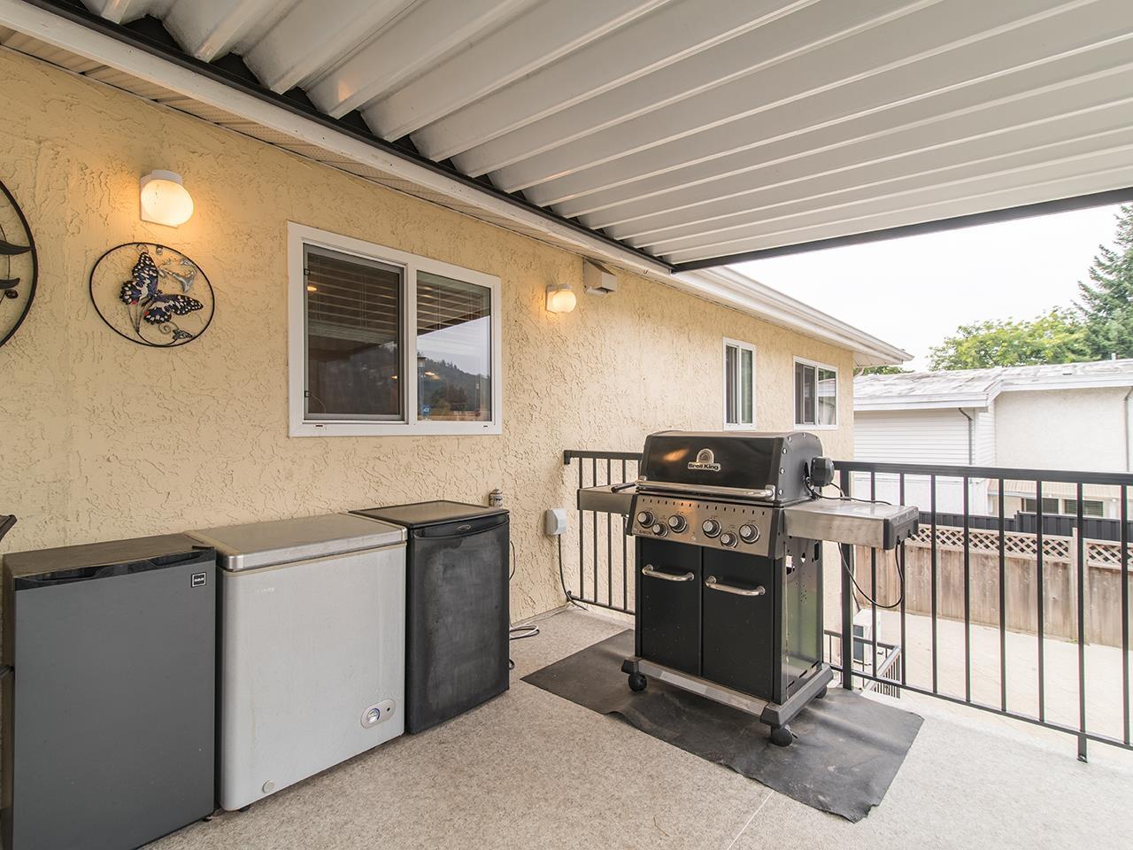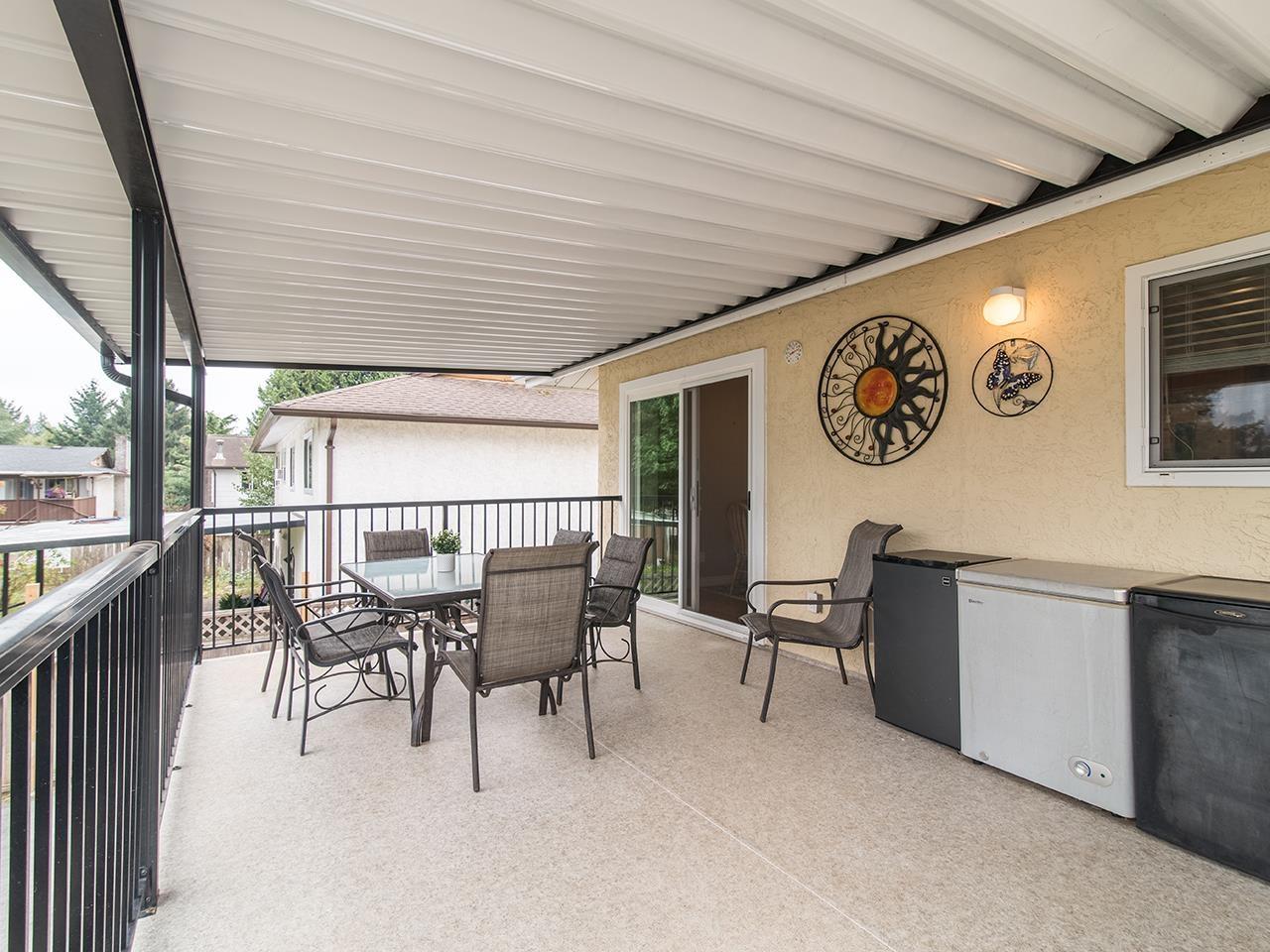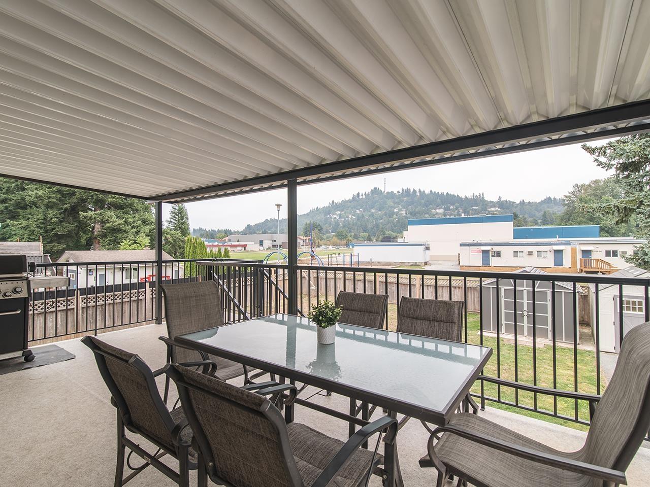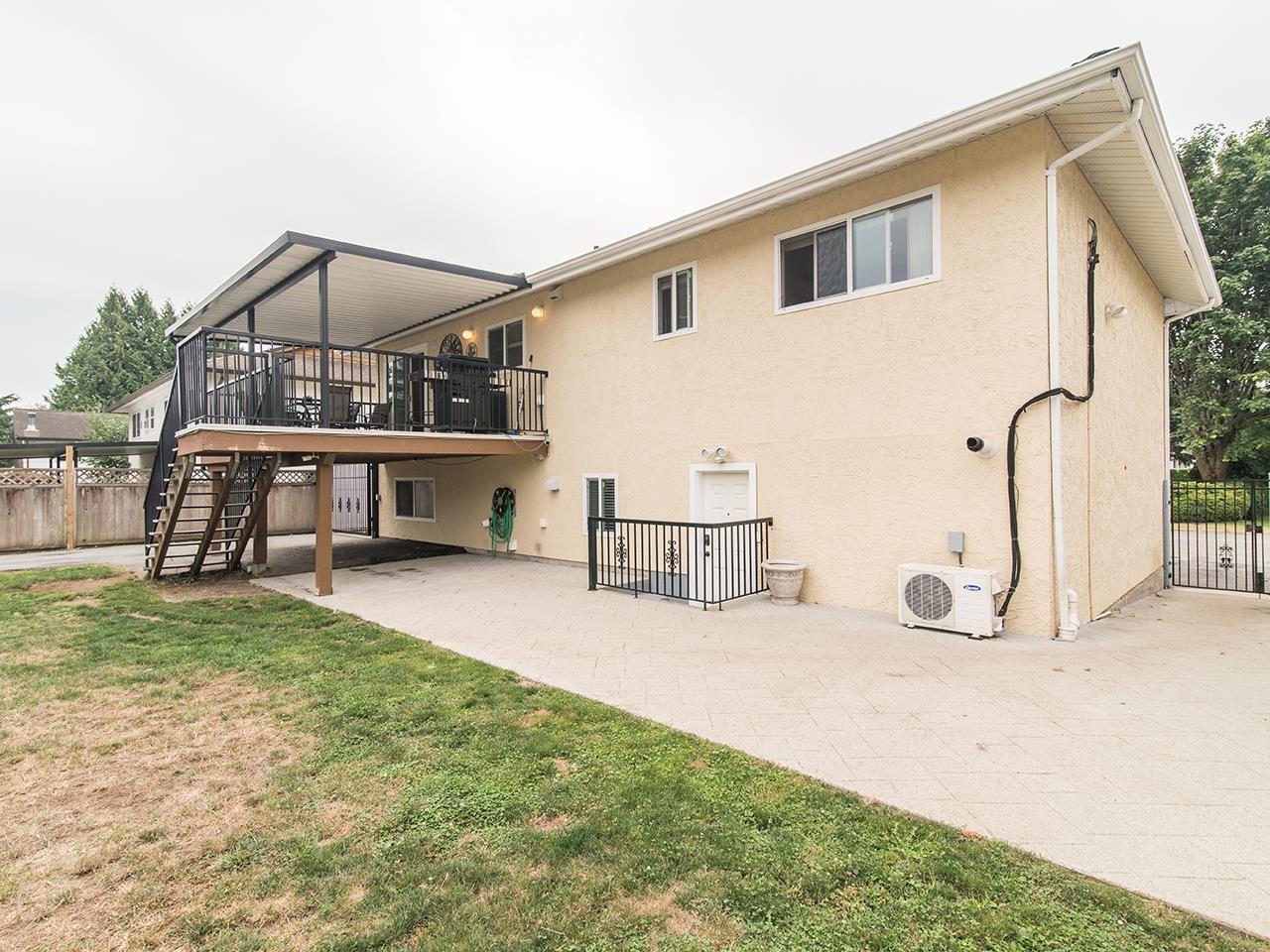 This is a fantastic opportunity to get into a clean family home with a 2bd legal fully contained suite w laundry and great for someone with mobility issues. Located in one of the most convenient areas of Abbotsford with schools, rec center, shopping all steps away and conveniently situated for commuters. You will love the huge fenced private yard for the kids & pets, a large covered patio for those hot summer nights, Shiny clean and ready to move right in. Bonus space for a full size RV with outside plug and bonus EV plug, storage sheds and easy care yard. A big bright updated kitchen, large dining room, 3 good size bds up. This is a quiet street of similar family homes and a great place to get into your first home. Call for your private showing and dont miss this lovely home. (id:63510)
