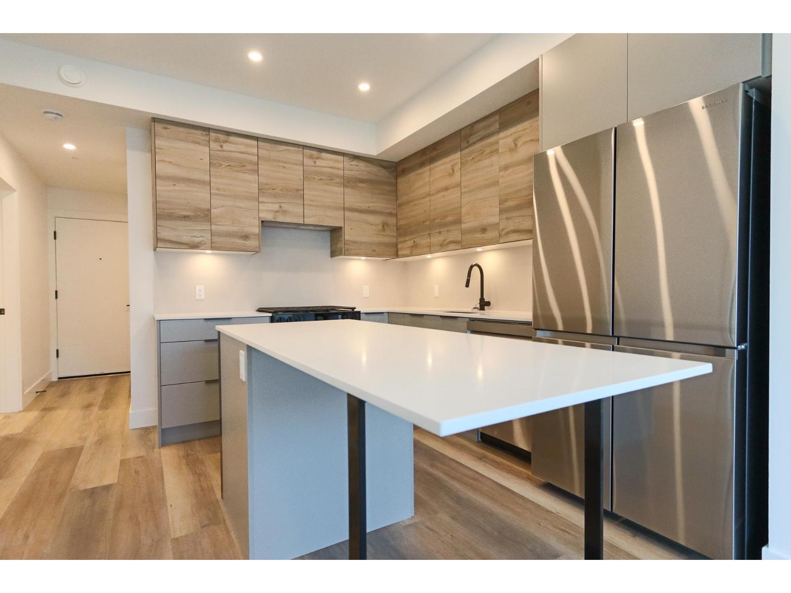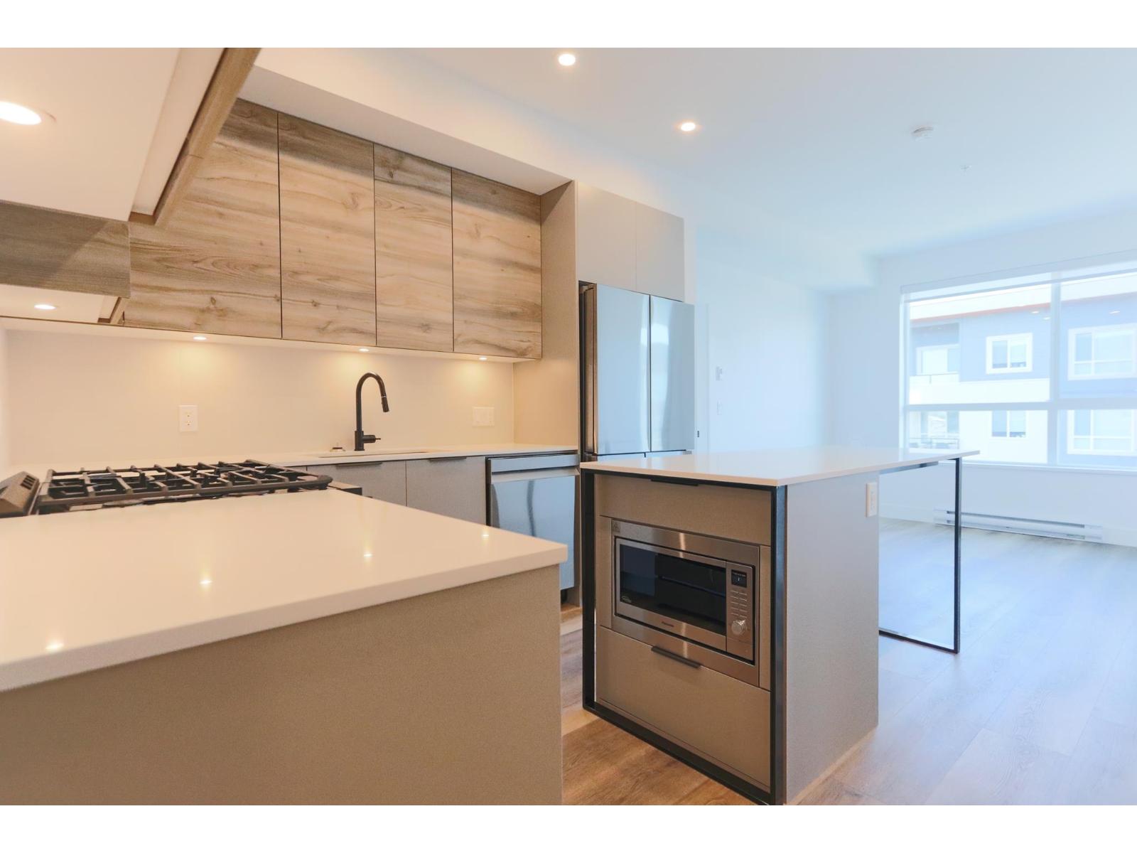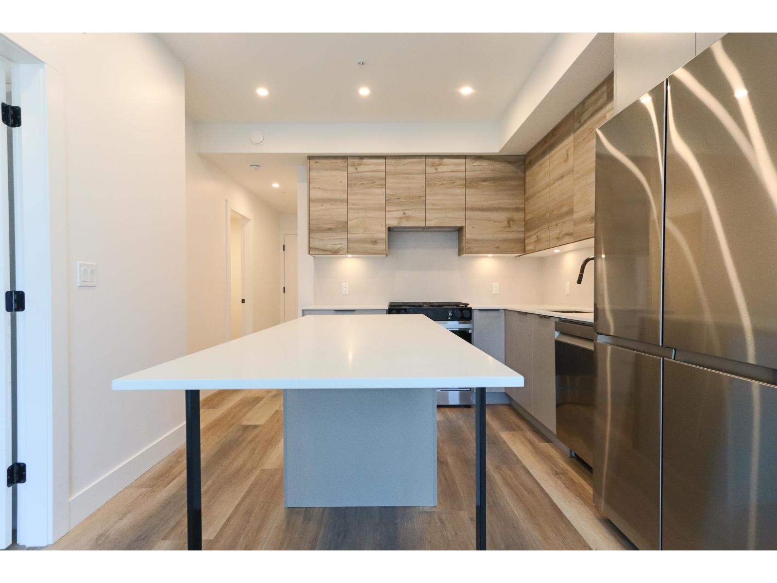 Top-Floor Corner 3-Bed at Highstreet Village! This brand-new 5th-floor corner unit offers 3 bed/2 full baths in Abbotsford's most exciting new community. Bright and modern with windows wrapping around the open living and kitchen area, it features stainless steel appliances, a gas stove, touchscreen fridge, quartz countertops, and a large island with sink-perfect for cooking and entertaining. Wide-plank floors add style, while the functional layout provides excellent bedroom separation for privacy. Step out to your covered balcony for fresh air and views, and enjoy added convenience with parking, storage, and access to great amenities including a gym and party room. Located just steps from Highstreet Shopping Centre and dining, with quick access to Highway 1, this home is move-in ready! (id:63510)