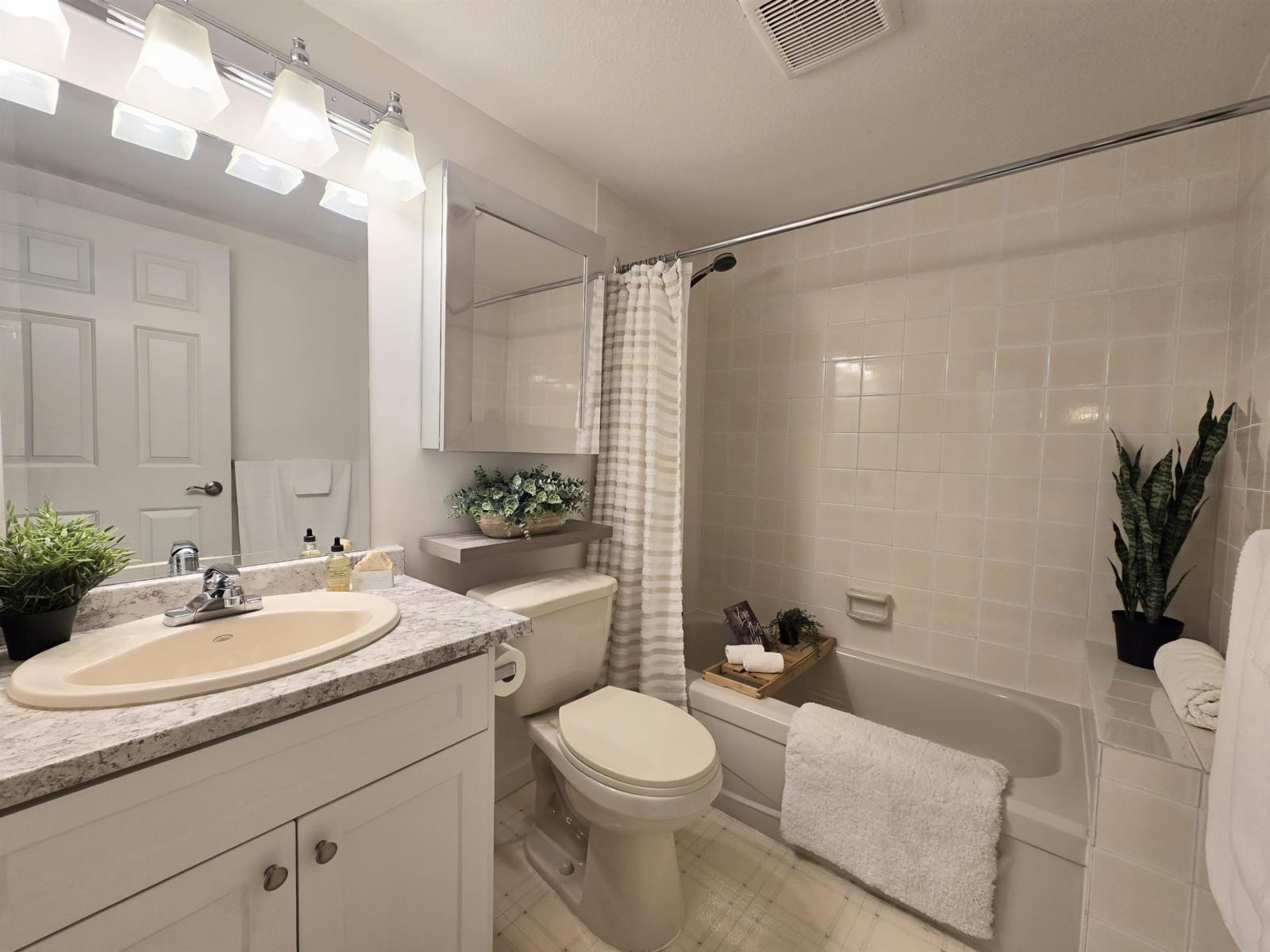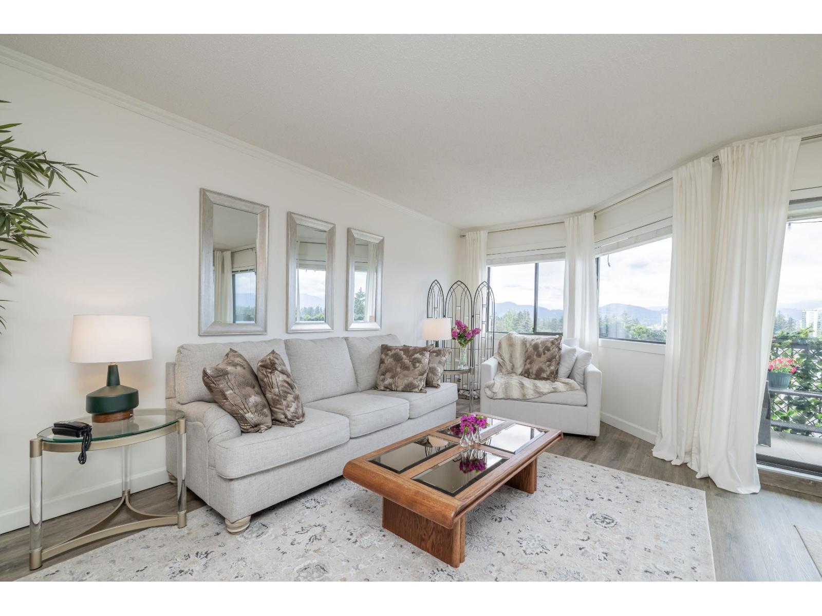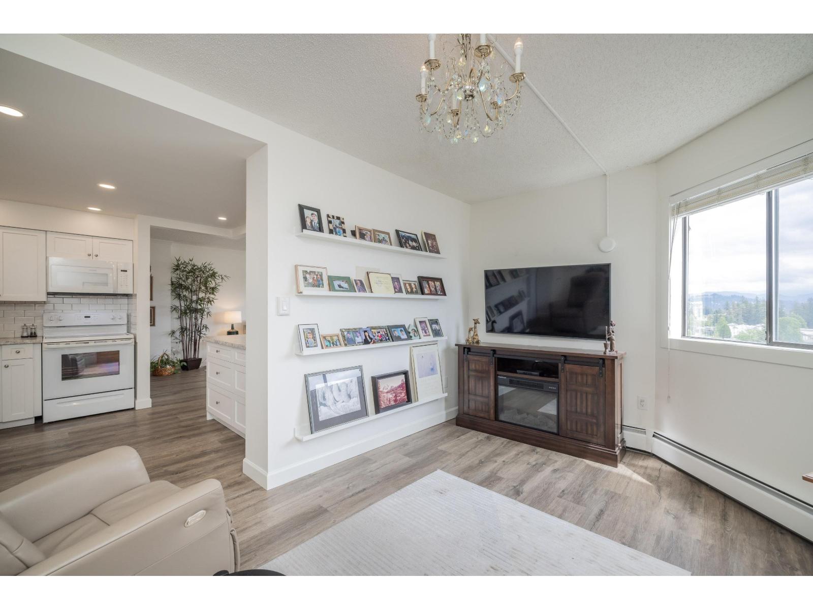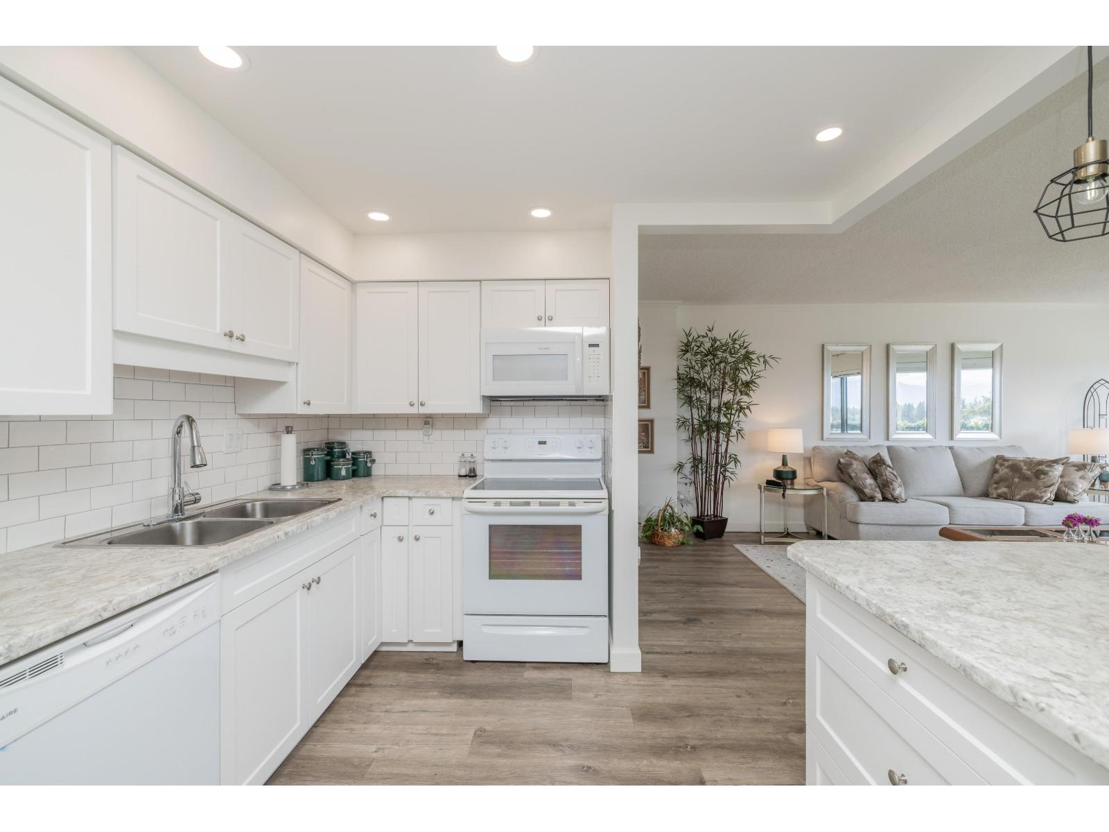 This rare top floor, penthouse, corner unit, is 1,226 sf, with 2 bedrooms, 2 bathrooms, in-suite laundry, & a bonus family room off the kitchen, in addition to the beautifully updated, open living room/dining/kitchen with 180 degree, SE city & mountain views, including Mt Baker taking center stage! Over-sized windows add bright natural light, while the wrap-around patio extends the living space outdoors. This unit is also next to the elevator! Evergreen Village is a concrete building with great amenities, including an indoor pool, hot tub, exercise rm, guest suites, workshop, library, secure underground parking & storage, in a great location. This 55+ complex has long been sought after for its community feel. Don't miss this opportunity to own a special unit in a great place to call home. (id:63510)