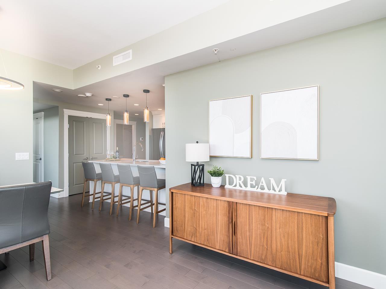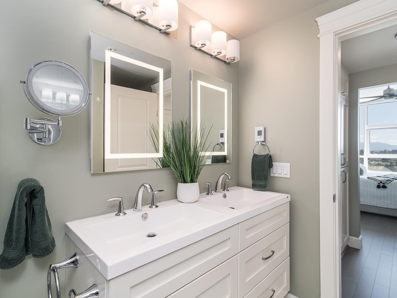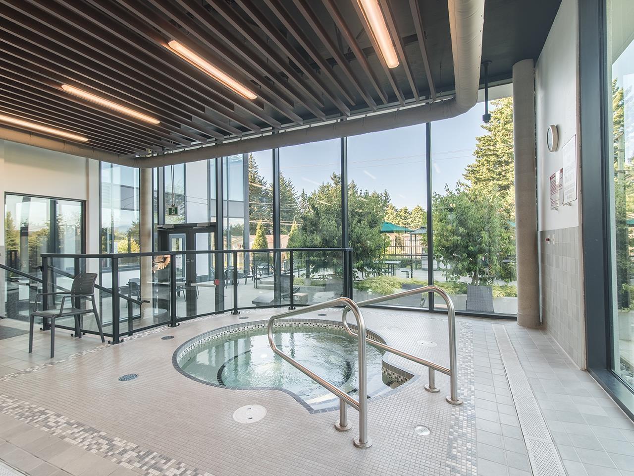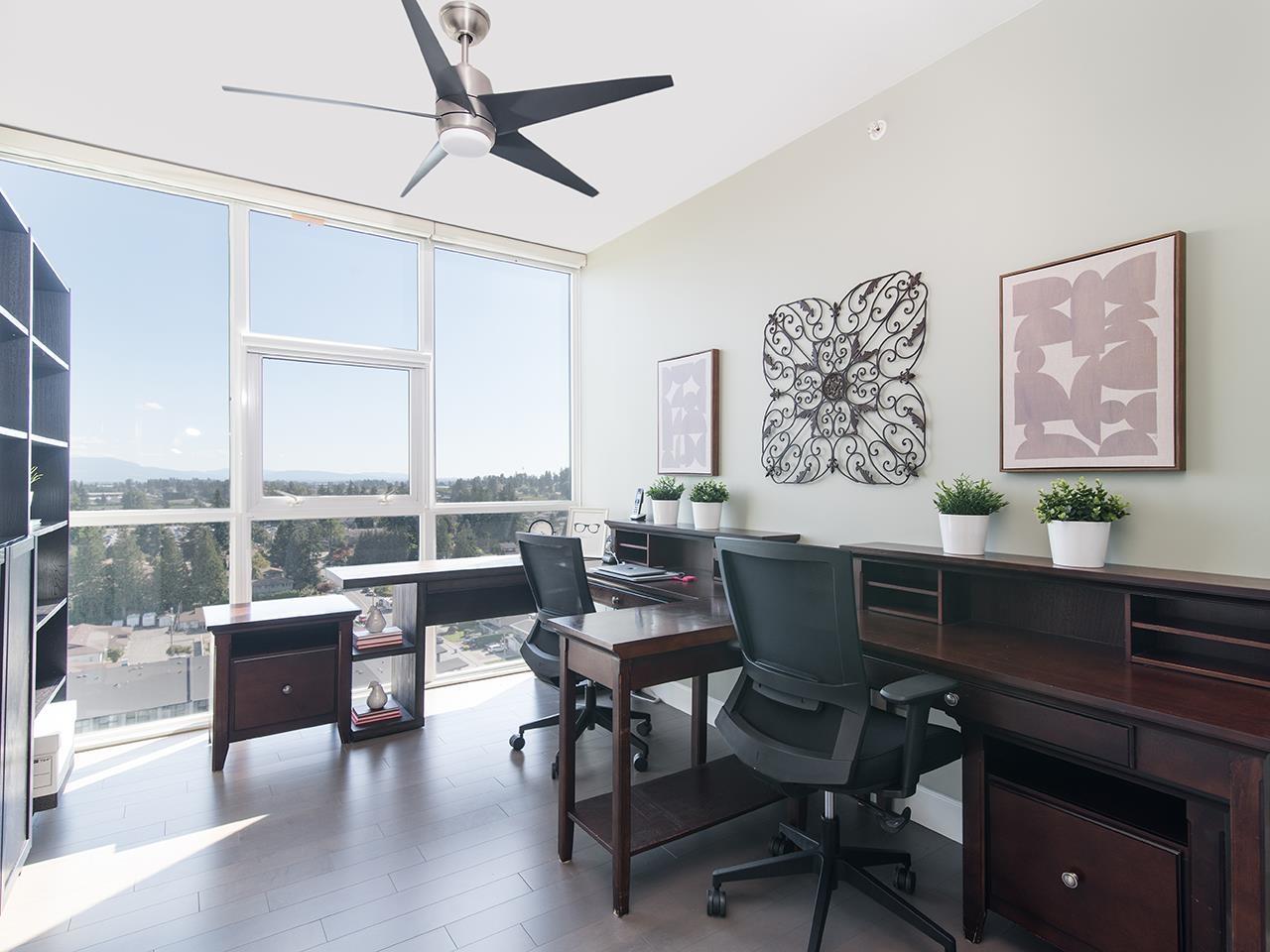 Spectacular 2 bedroom 2 bath view corner unit condo on the 15th floor of Abbotsford's ONLY luxury concrete high-rise. The Mahogany at Mill Lake, built in 2018 offers geothermal heating/cooling + an amenities package 2nd to none including indoor pool, fitness center, hot tub, workshop, bistro, guest suites, outdoor barbecue patio & club room. This condo has stunning open concept design with elegant finishes including newly installed hardwood flooring, new blinds, gas fireplace, high end appliances and beautiful quartz countertops. This home is bathed in natural sunlight, offers beautiful views both south & east in a perfect location steps to beautiful Mill Lake Park, trendy shops & restaurants, hospital etc. 2 parking stalls, storage locker and private deck to enjoy those morning sunrises! (id:63510)