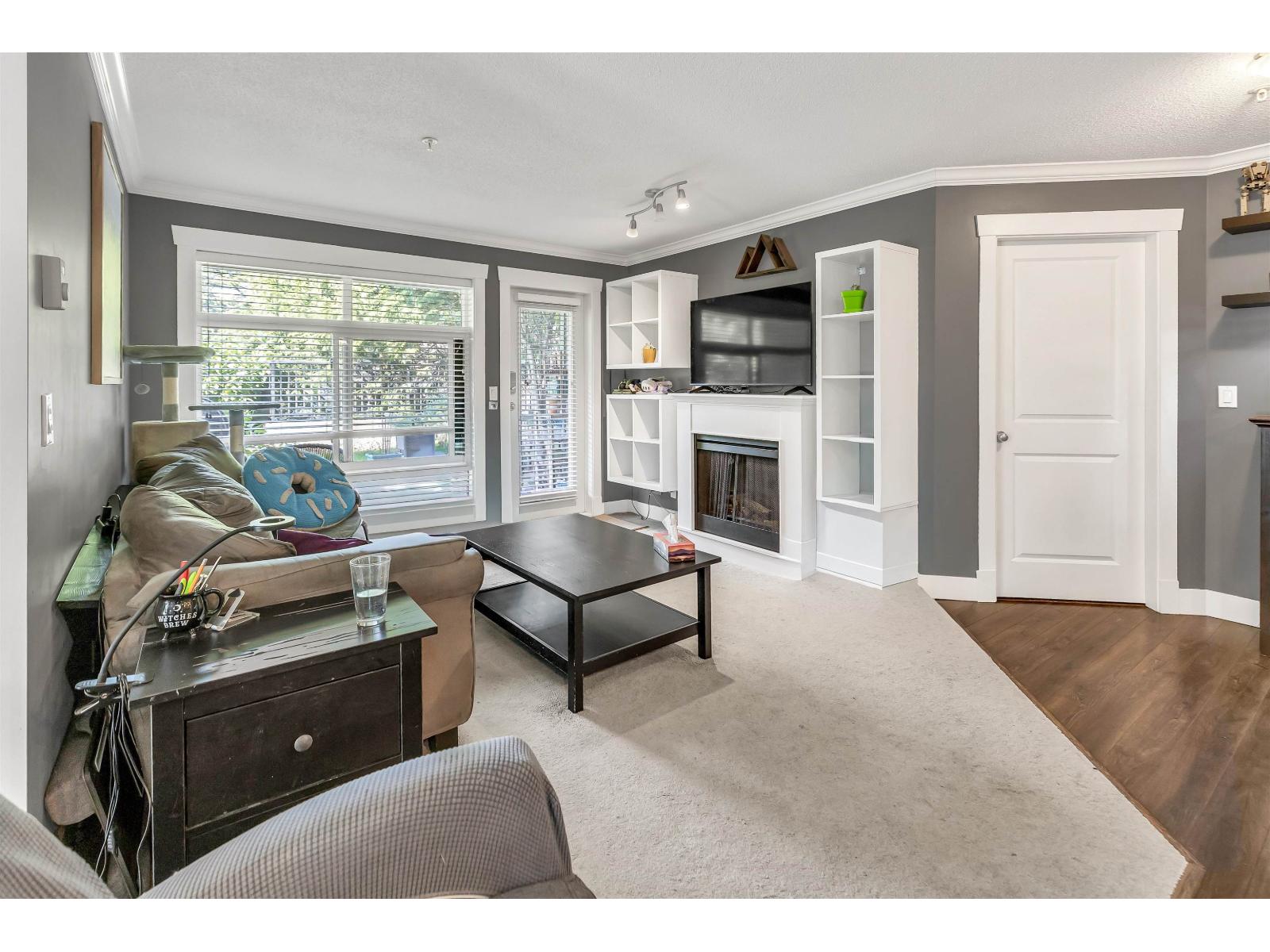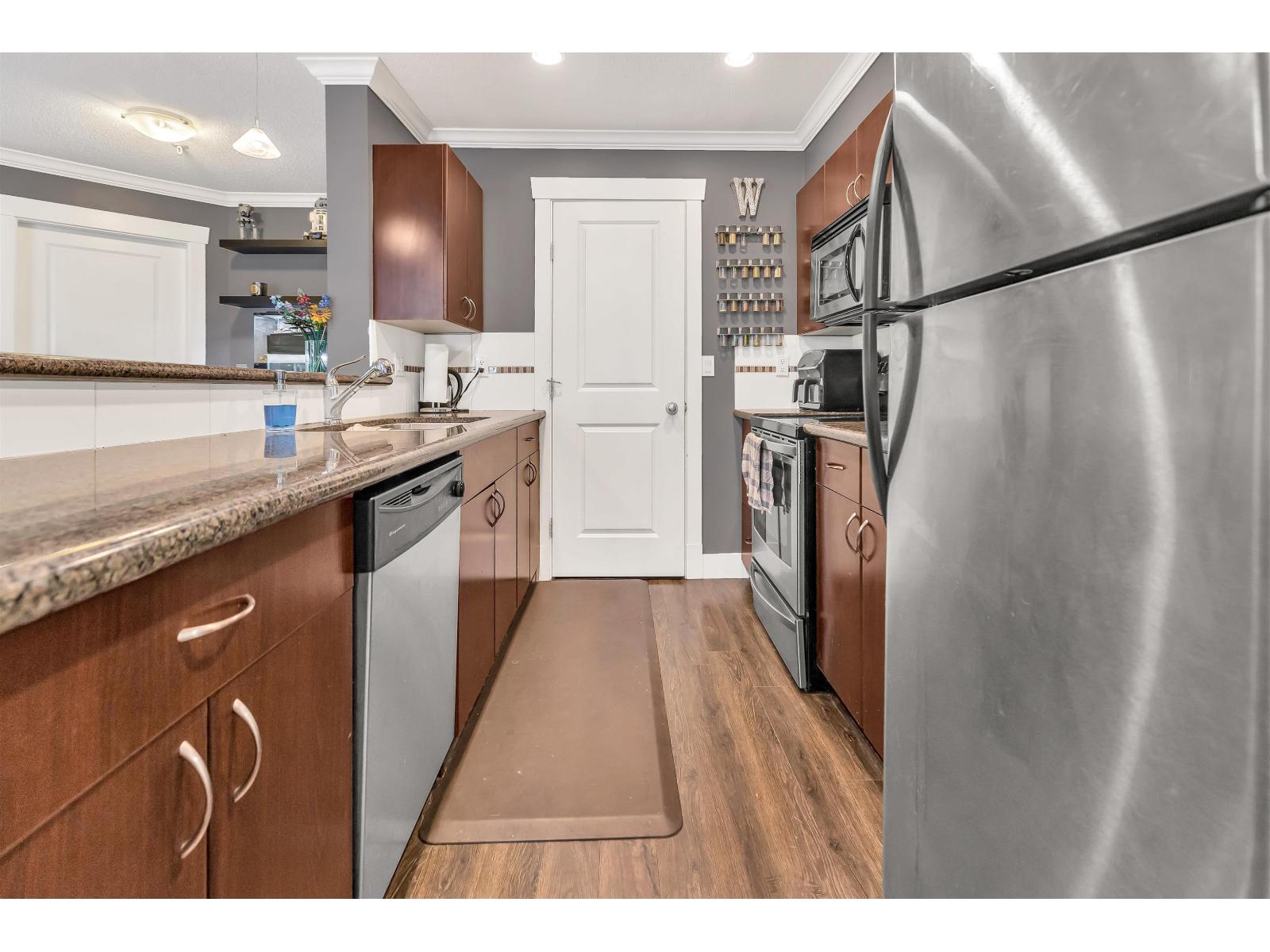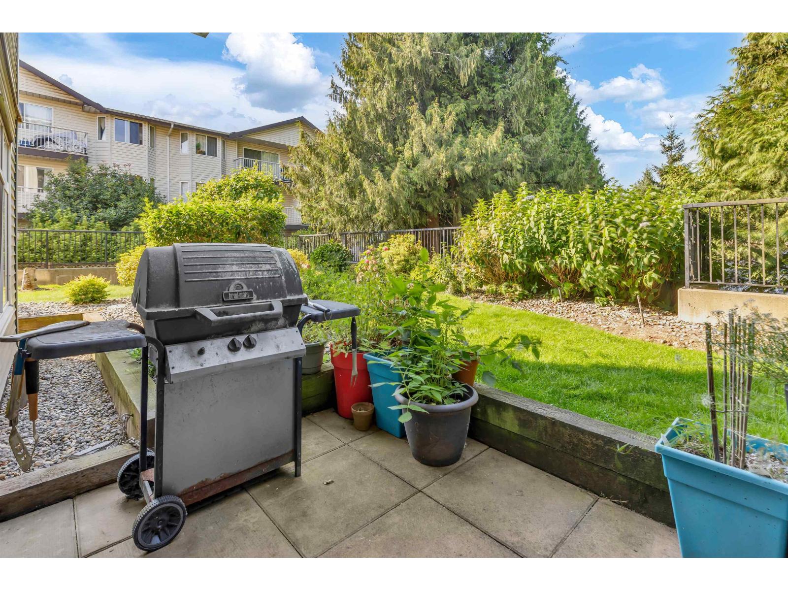 Welcome to The Brixton! This bright and spacious 2 bed, 2 bath end unit offers nearly 1100 sq ft of open living with large windows throughout and excellent privacy. The kitchen features granite countertops, stainless steel appliances, and a convenient breakfast bar that opens to the main living area-perfect for entertaining. Step out to your private 10x12 walk-out patio with direct access to a grassy area, ideal for pets, kids, or quiet mornings with coffee. Both bedrooms are generously sized, and the layout offers great separation and functionality. This unit also includes 2 underground parking stalls and a storage locker. Enjoy the comfort of a well-maintained building in a prime central Abbotsford location, close to shopping, parks, schools, and transit. A rare and desirable home! (id:63510)