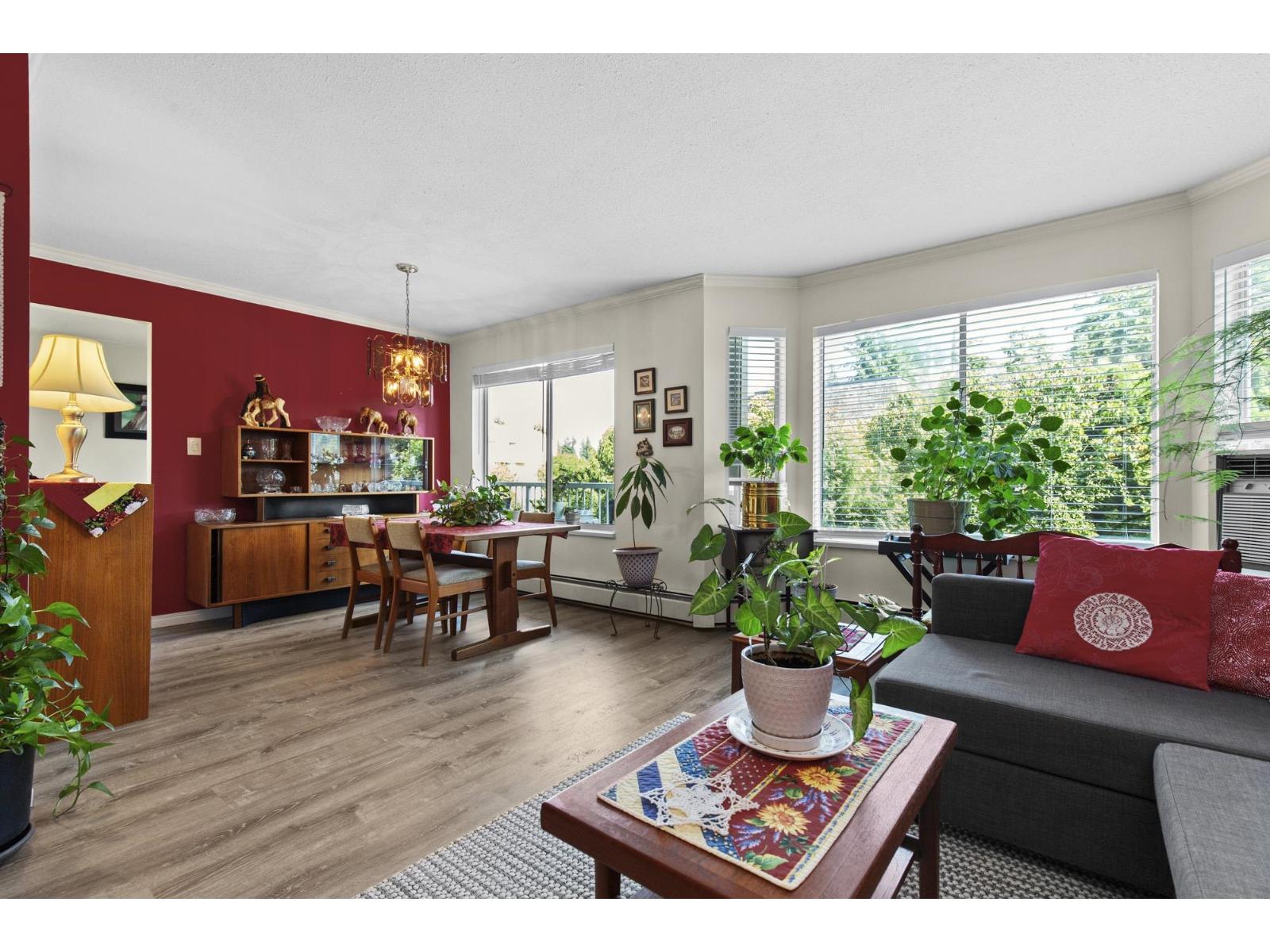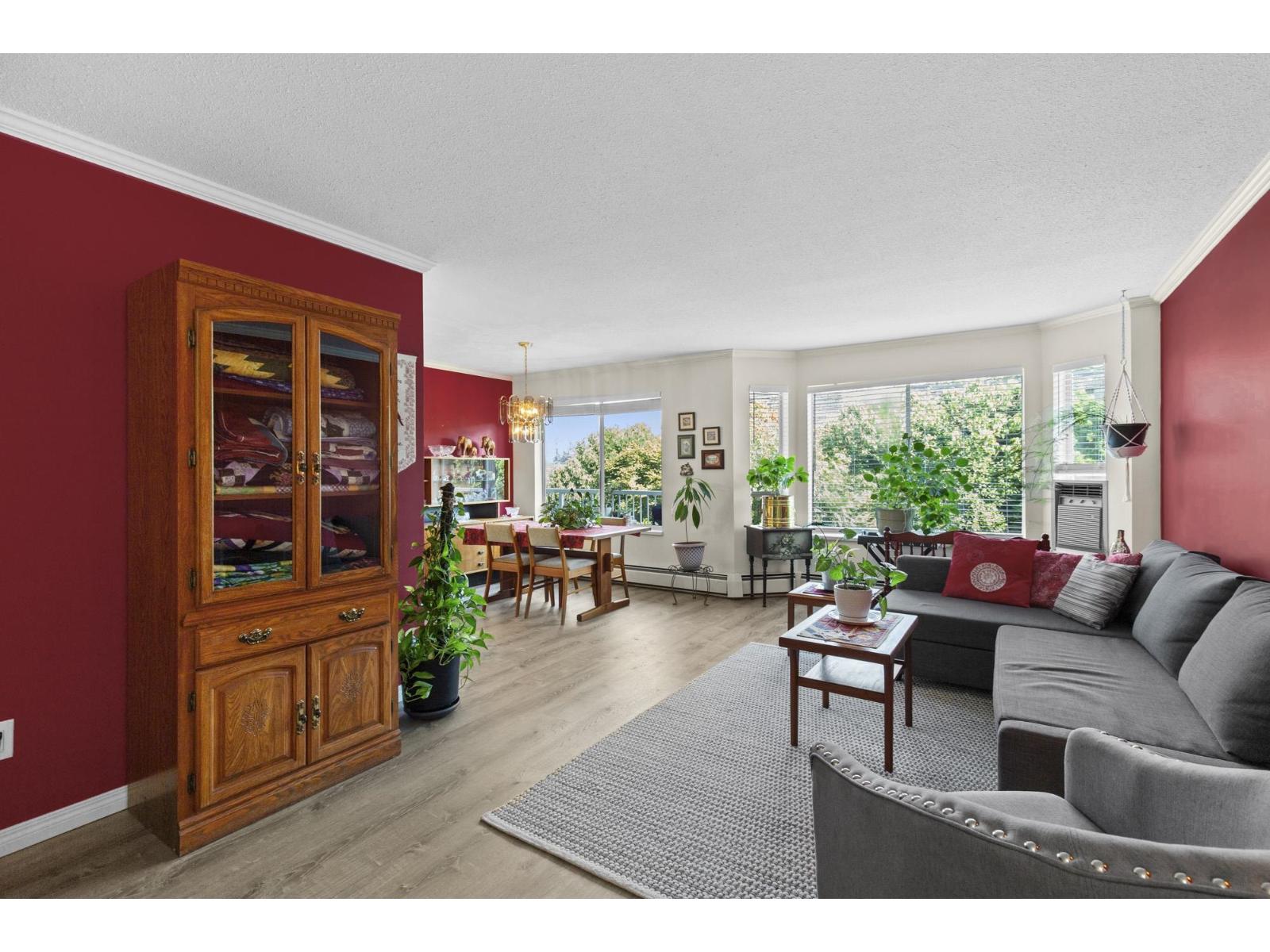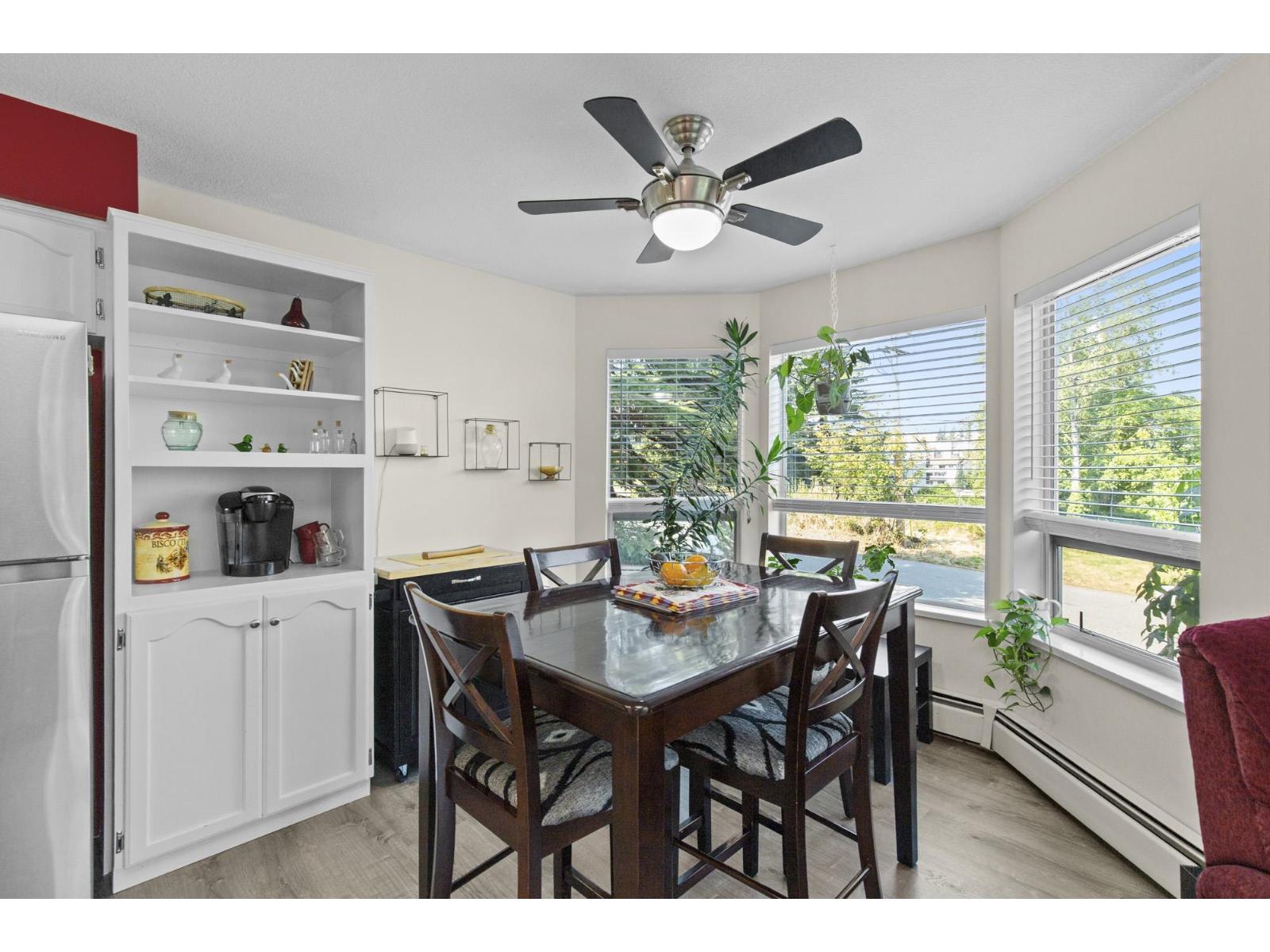 Bright, spacious, First Floor Corner unit in Cypress Park! Beautifully updated 2bd, 2bth offering over 1,200 sqft of comfortable living. Brand new vinyl flooring throughout, Bright layout, windows on multiple sides that flood the space with natural light. Private deck, tucked on the quiet side, a perfect spot to unwind. Impressive size primary Bedroom with full ensuite, second space off kitchen that can be used as sitting room, separate laundry room w/ added storage, & Built in AC. Thoughtfully designed with comfort in mind! Part of a robust 55+ community w/ amenity, community room, games room w/ pool table & exercise equipment, guest suite and workshop in one of Abbotsford's most convenient locations. 1 secure parking stall (+ more spots available) storage locker, HW incl. No pets. (id:63510)