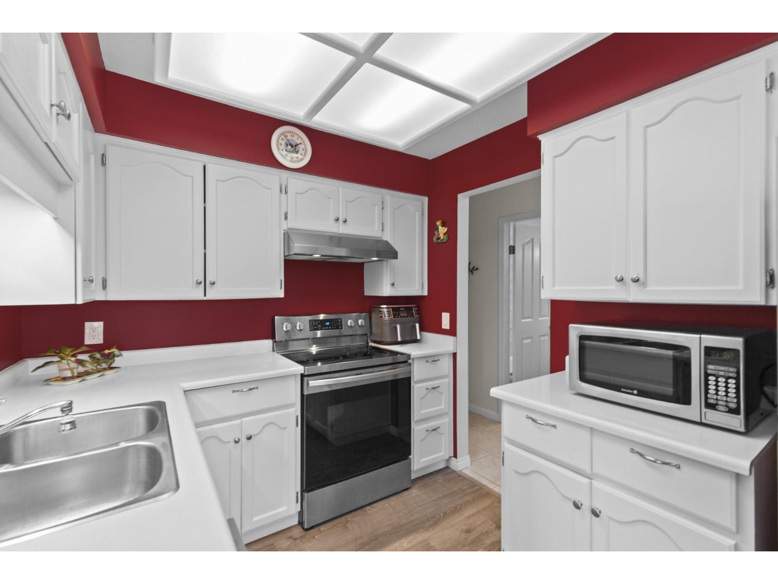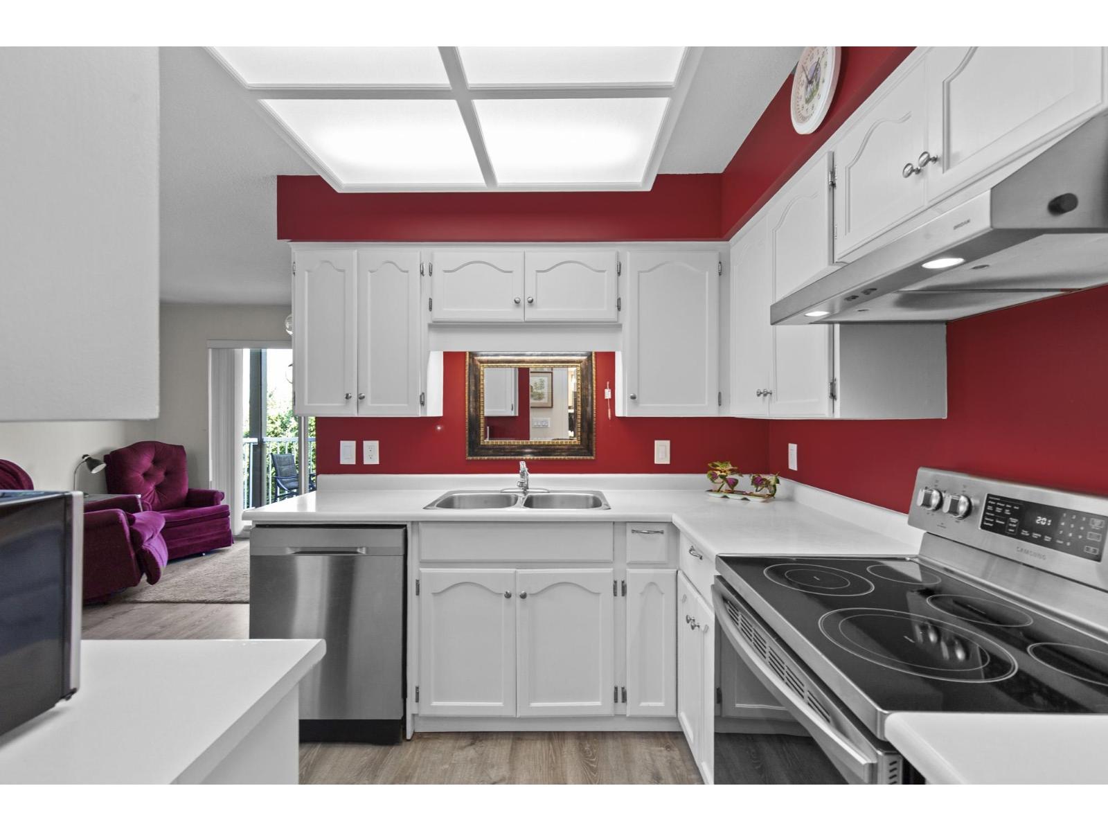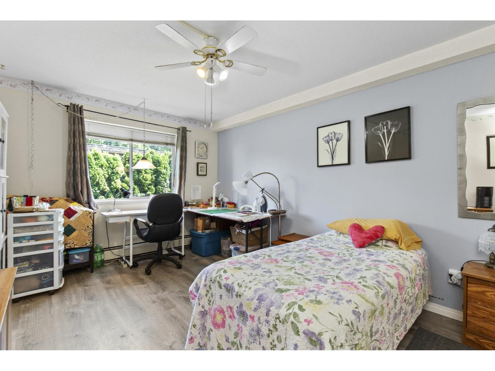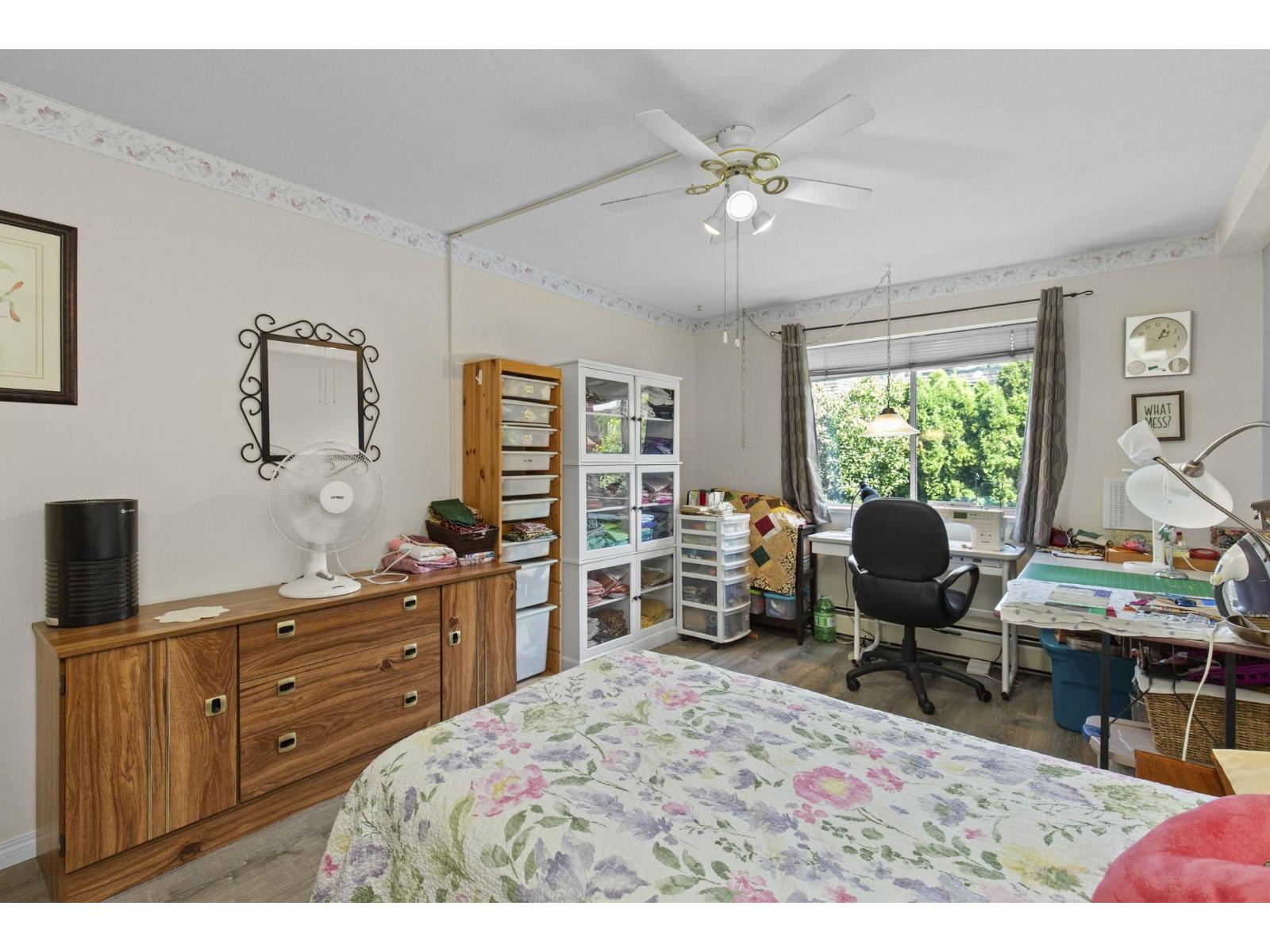 Bright, spacious, First Floor Corner unit in Cypress Park! Beautifully updated 2bd, 2bth offering over 1,200 sqft of comfortable living. Brand new vinyl flooring throughout, Bright layout, windows on multiple sides that flood the space with natural light. Private deck, tucked on the quiet side, a perfect spot to unwind. Impressive size primary Bedroom with full ensuite, second space off kitchen that can be used as sitting room, separate laundry room w/ added storage, & Built in AC. Thoughtfully designed with comfort in mind! Part of a robust 55+ community w/ amenity, community room, games room w/ pool table & exercise equipment, guest suite and workshop in one of Abbotsford's most convenient locations. 1 secure parking stall (+ more spots available) storage locker, HW incl. No pets. (id:63510)