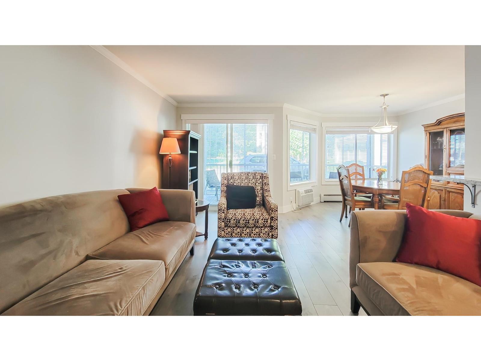 This beautifully renovated ground floor unit in a desirable 55+ community offers over 1,180 sq.ft. of stylish, move-in ready living space. Enjoy the comfort of 2 bedrooms and 1.5 bathrooms, plus an enclosed sun deck/solarium-perfect for year-round enjoyment. Renovations include new laminate flooring, updated blinds (including on the sun deck), paint, new doors and mouldings, modern kitchen cabinets, quartz countertops, stainless steel appliances, and fully updated bathrooms, built in A/C. A large, separate storage locker adds convenience, making this home ideal for downsizing. Complex amenities include a recreation room, guest suite, and workshop. Don't miss out-book your private showing today! OPEN HOUSE Saturday. Oct.11. 1pm to 3pm (id:63510)