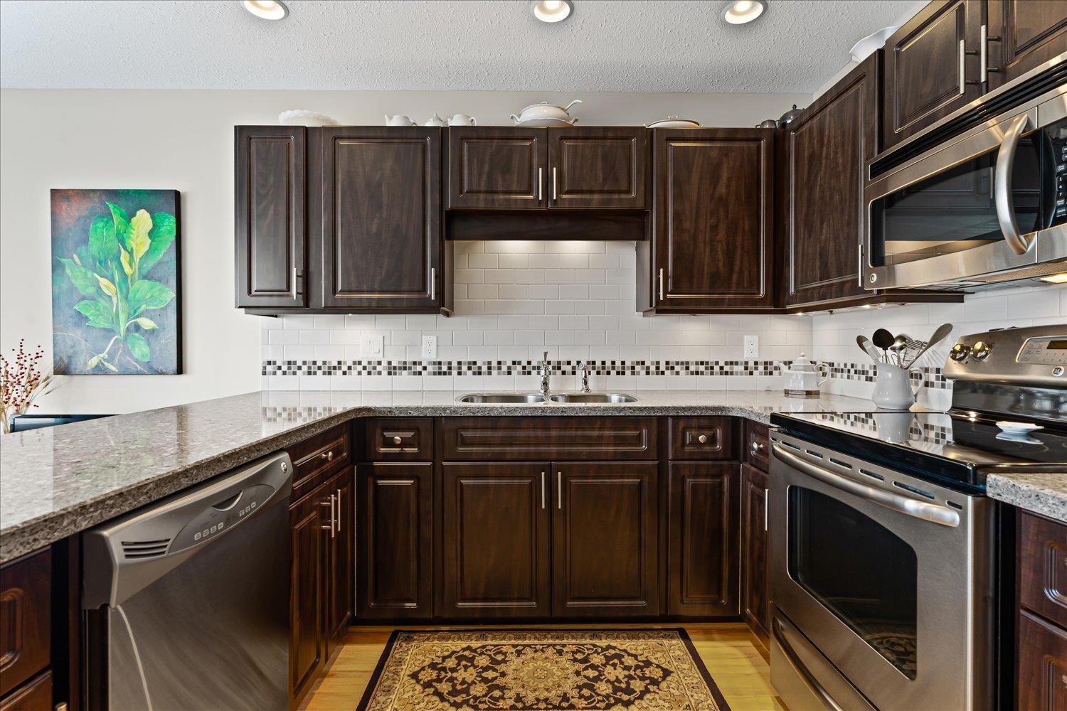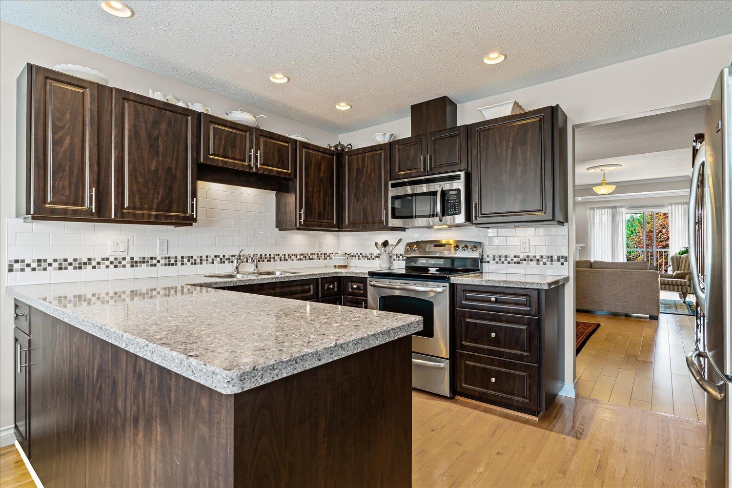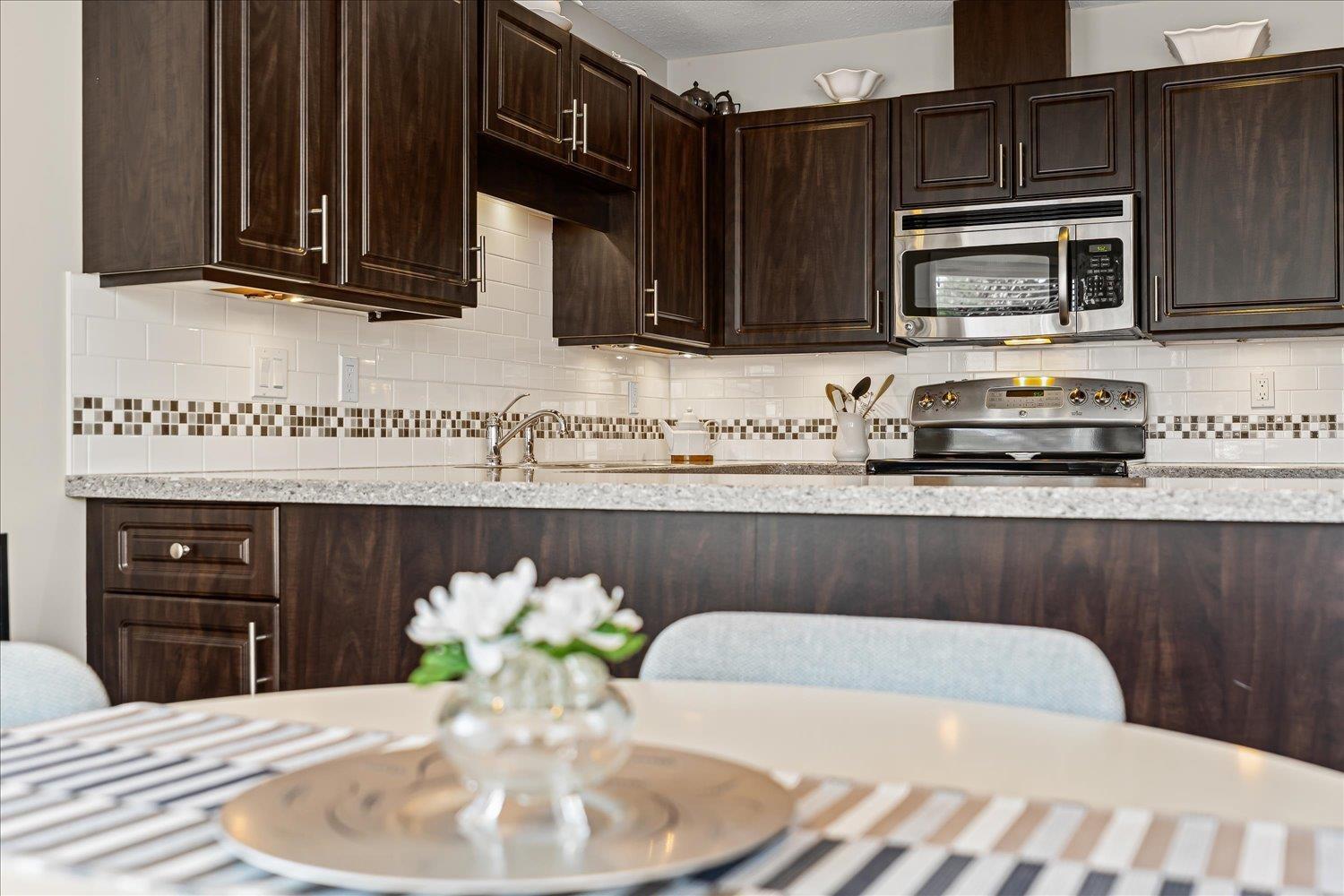 MORNINGSIDE PARK - Truly a move in ready townhouse for those 55+. Lovingly cared for and expertly renovated. Updates include full kitchen renovation, removal of PolyB plumbing, walls in basement changed with permits, High Efficiency furnace and central air, electrical system, 2 gas fireplaces, floor coverings, window blinds and modern paint colors. South facing deck for those sunny days all year long. This is one of the best locations for a townhouse in Abbotsford. Level neighbourhood means easy walking to Mill Lake Park and Sevenoaks & Westoaks shopping areas. Small pet allowed with approval. Nothing to do but move in and enjoy! (id:63510)