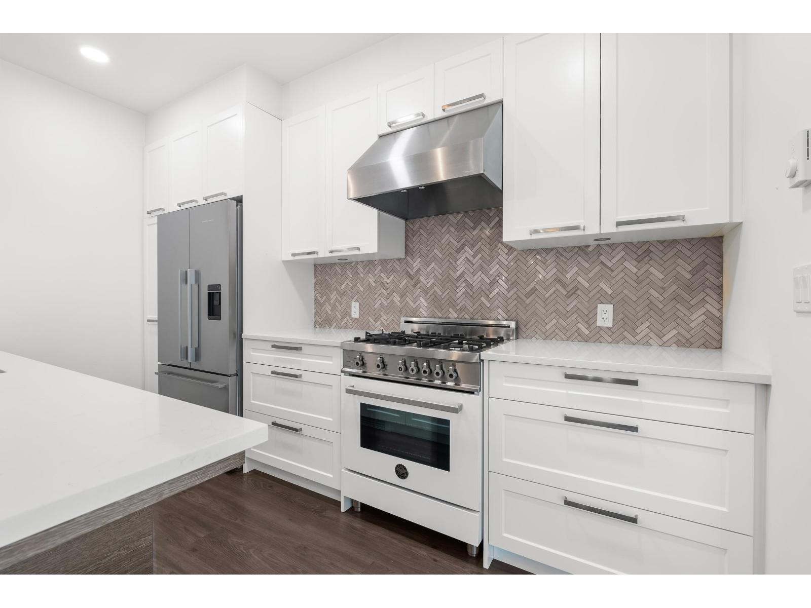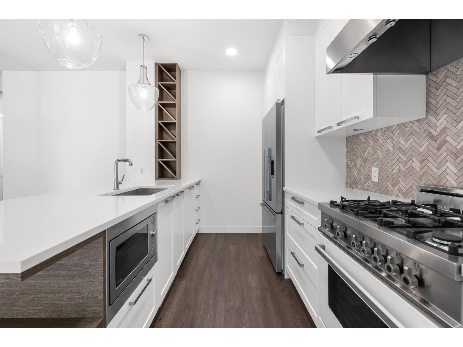 Attention Investors, Young Professionals, & Down-Sizers! Your home search stops here! Quality built luxury building tucked away on a quiet street all the while being steps away from Central Abbotsford. Beautiful bright 2Bed & 2Bath corner unit in pristine condition that is perfectly located near the University (UFV), Hospital, HWY#1, Abby Ent. Centre, shopping & transit. Open concept floor-plan with a chef's dream kitchen featuring marble tile backsplash, quartz counters, an Italian Bertazzoni gas range & soft close cabinets. Spacious living room with gas fireplace and access to large deck that is perfect for entertaining. Oversized laundry room that is large enough for storage, 2 secure underground parking and huge storage locker. Just steps away from shopping, restaurants, & amenities. (id:63510)