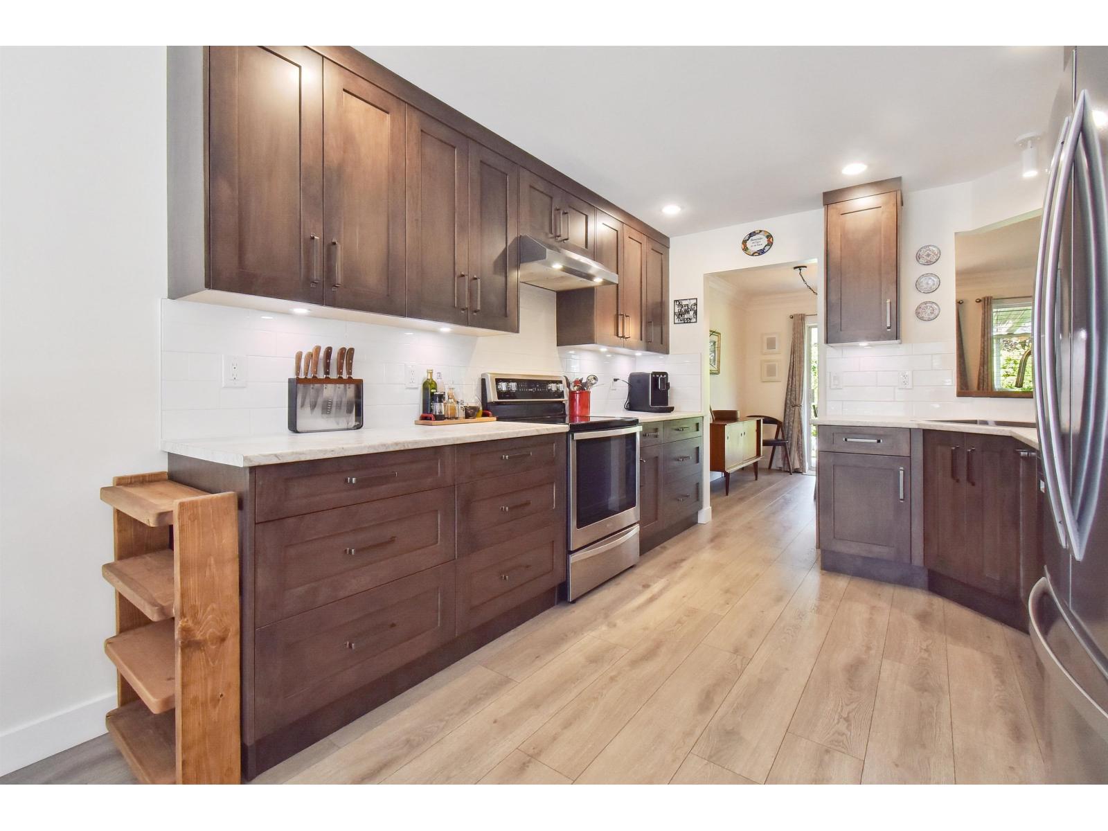 Stylish, Renovated 2617 Sq Ft Home in Prime Abbotsford Location! This beautiful home seamlessly blends modern living with incredible natural surroundings. Step out onto your quiet, covered private deck and soak in the lush greenery, your perfect outdoor oasis. With a standalone private entrance and attached garage, this home offers the feel of a detached house. Inside, the open-concept is bathed in natural light, creating a bright and welcoming atmosphere. The new kitchen is both stylish and functional, featuring SS appliances, ample storage, and sleek finishes. No detail overlooked, ALL NEW PEX plumbing, H.E. furnace, and AIR CON ensure comfort and peace of mind. The main level includes a spacious living area with a cozy gas fireplace. Primary features a WI closet and full ensuite. 55+ Located in Abbotsford's most walkable and desirable neighborhood, steps from Mill Lake, shopping, restaurants, groceries, transit, schools, doctors, and more! (id:63510)