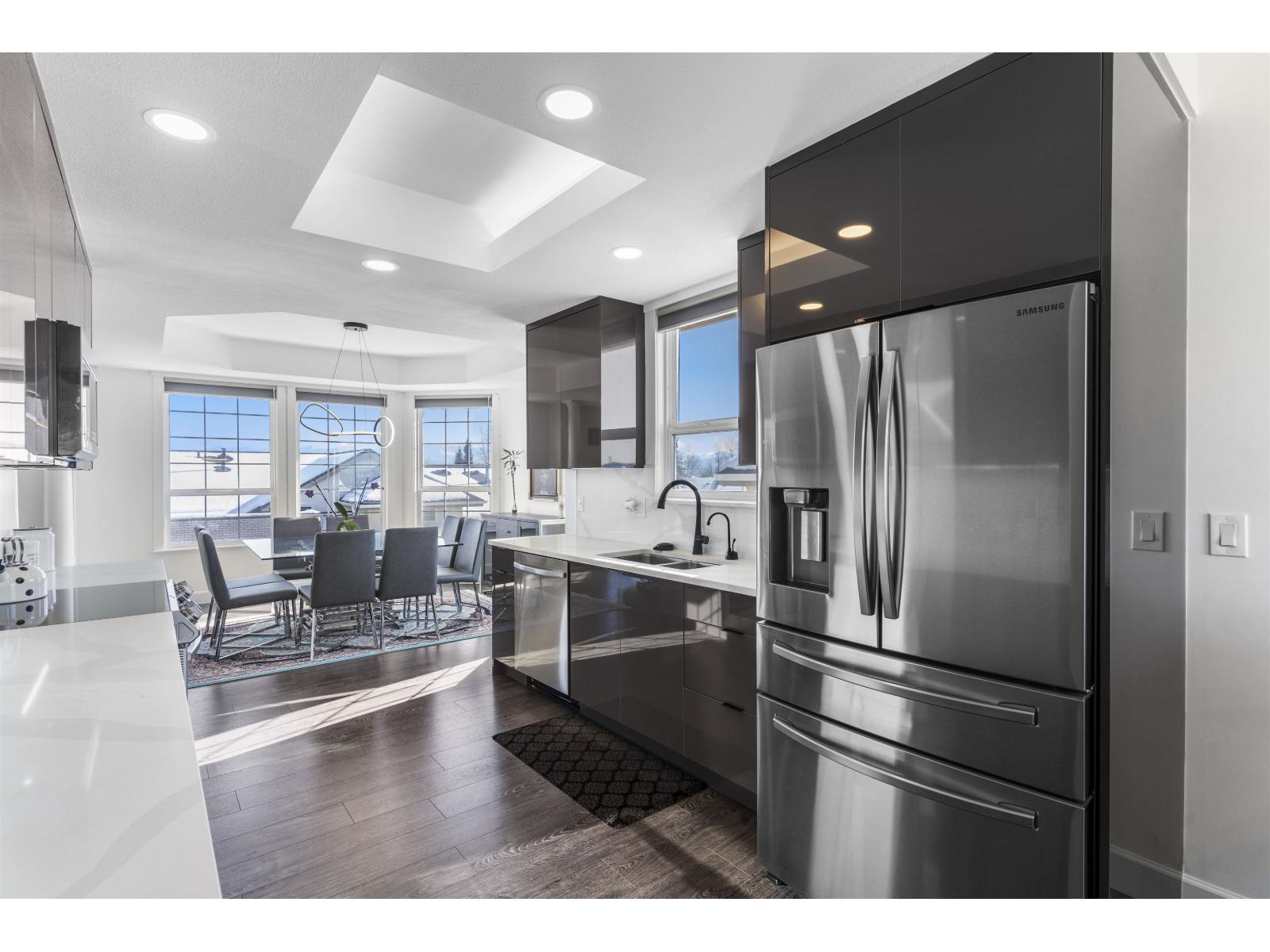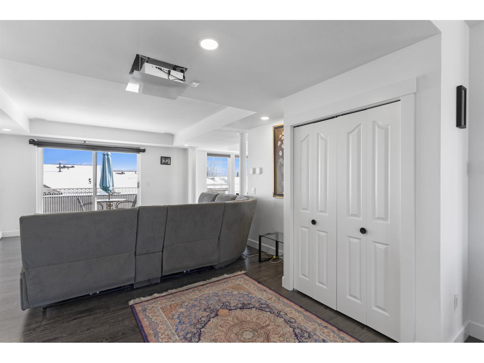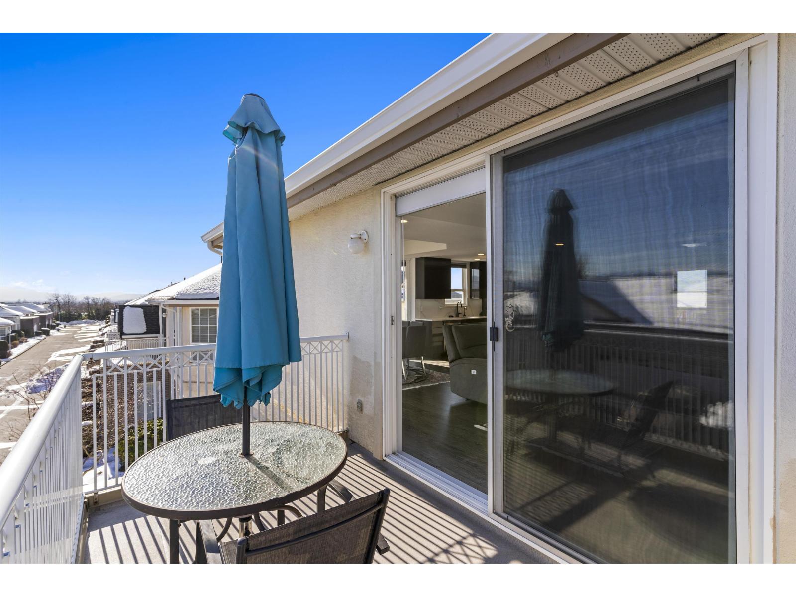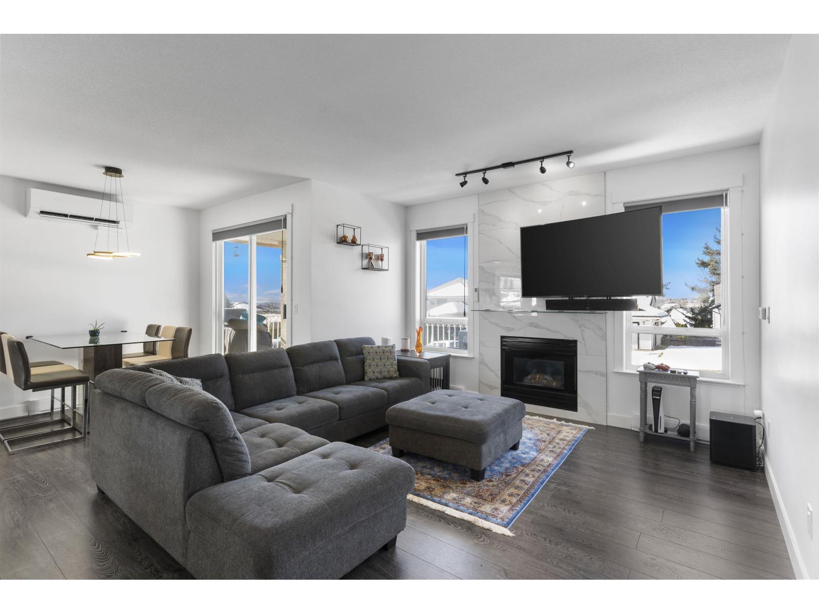 Stunning 1900sqft townhome at Lakepoint Villas! Fully renovated showstopper is one of a kind! Thoughtfully redesigned from top to bottom, nothing has been overlooked. Brand-new heat pump, hot water tank, luxurious bathrooms, a gas marble fireplace, & built-in surround speakers for the ultimate movie night. Custom kitchen boasts high-end appliances and cabinetry, while high-quality laminate flooring & extra pot lights add to the modern feel. Enjoy 2 balconies, a spacious west-facing deck--perfect for watching the Air Show. With 9' ceilings, expansive single-level home offers a perfect blend of luxury, space, & comfort. Located in a well-managed, family & pet-friendly complex, enjoy access to a clubhouse scenic parkland & a lake. close to schools, shopping (id:63510)