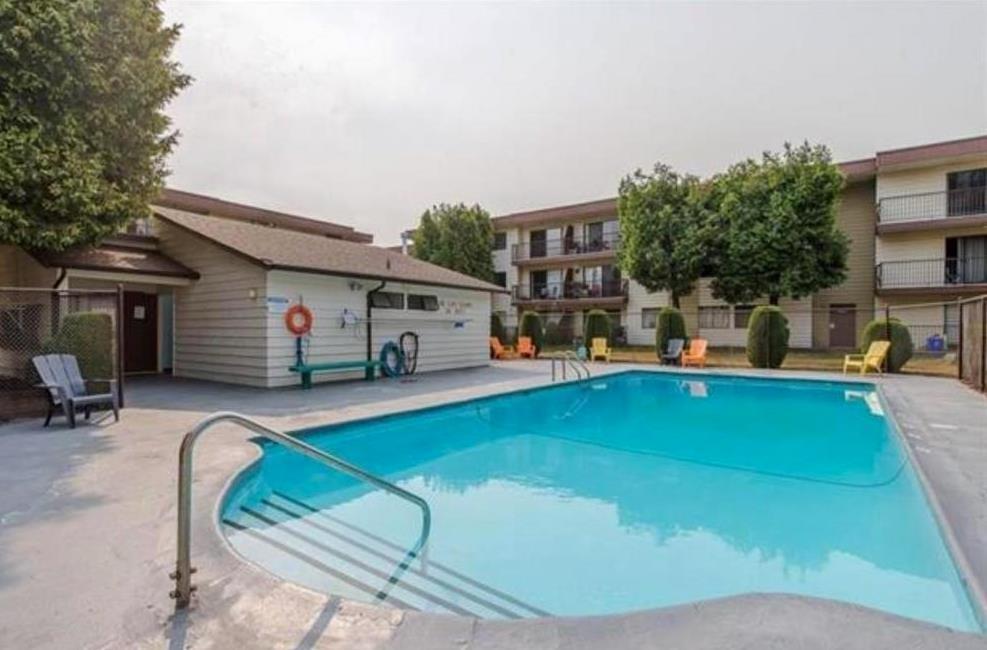 Welcome to Forest Village! "Birchwood Place building" Discover this fantastic GROUND FLOOR CORNER UNIT with 3 BEDROOMS and 2 bathrooms. No age restrictions! This bright & spacious unit has been freshly painted, & boasts a large patio perfect for outdoor relaxation & two dedicated parking stalls. Great freeway access, close to the University of Fraser Valley, schools, shopping and beautiful Berry Park is located just 1 block away. Strata fees INC hot water, heat, storage, maintenance & an outdoor POOL. Great investment opportunity, quick possession can be available. (id:63510)