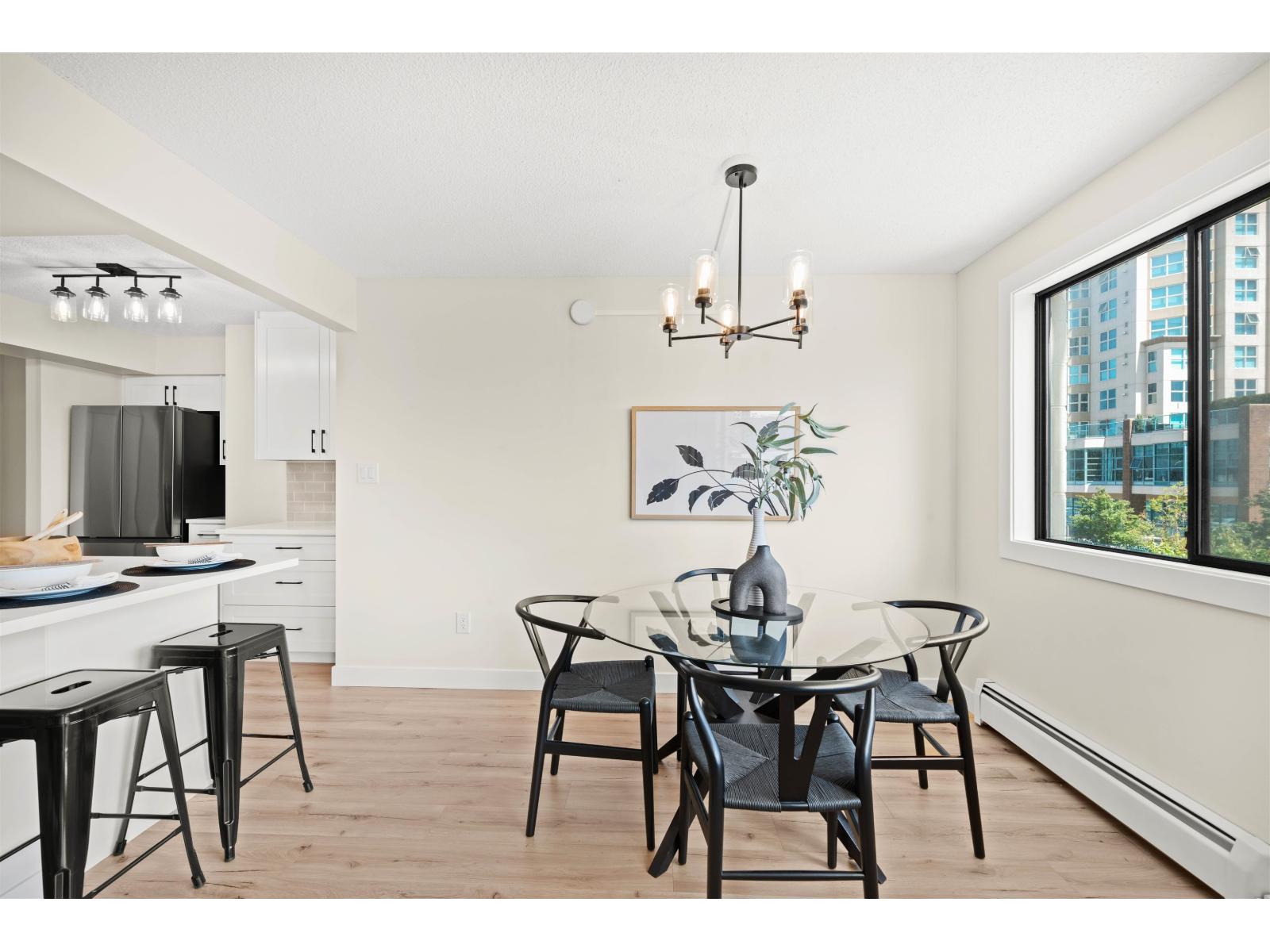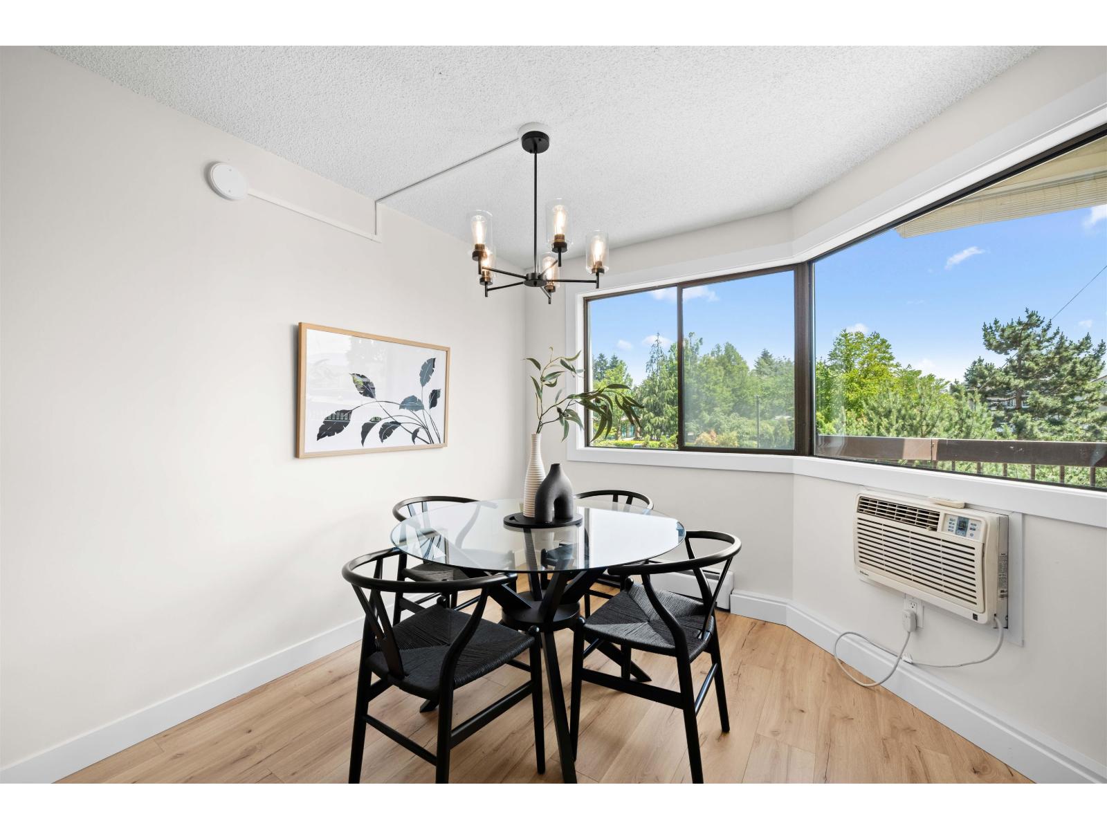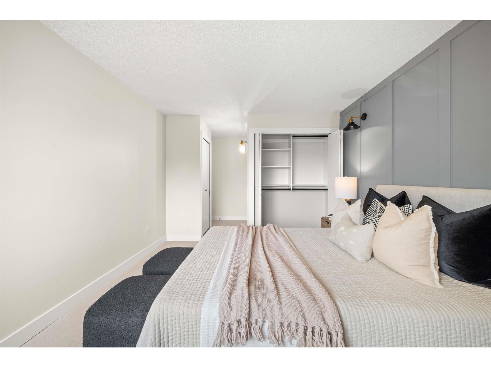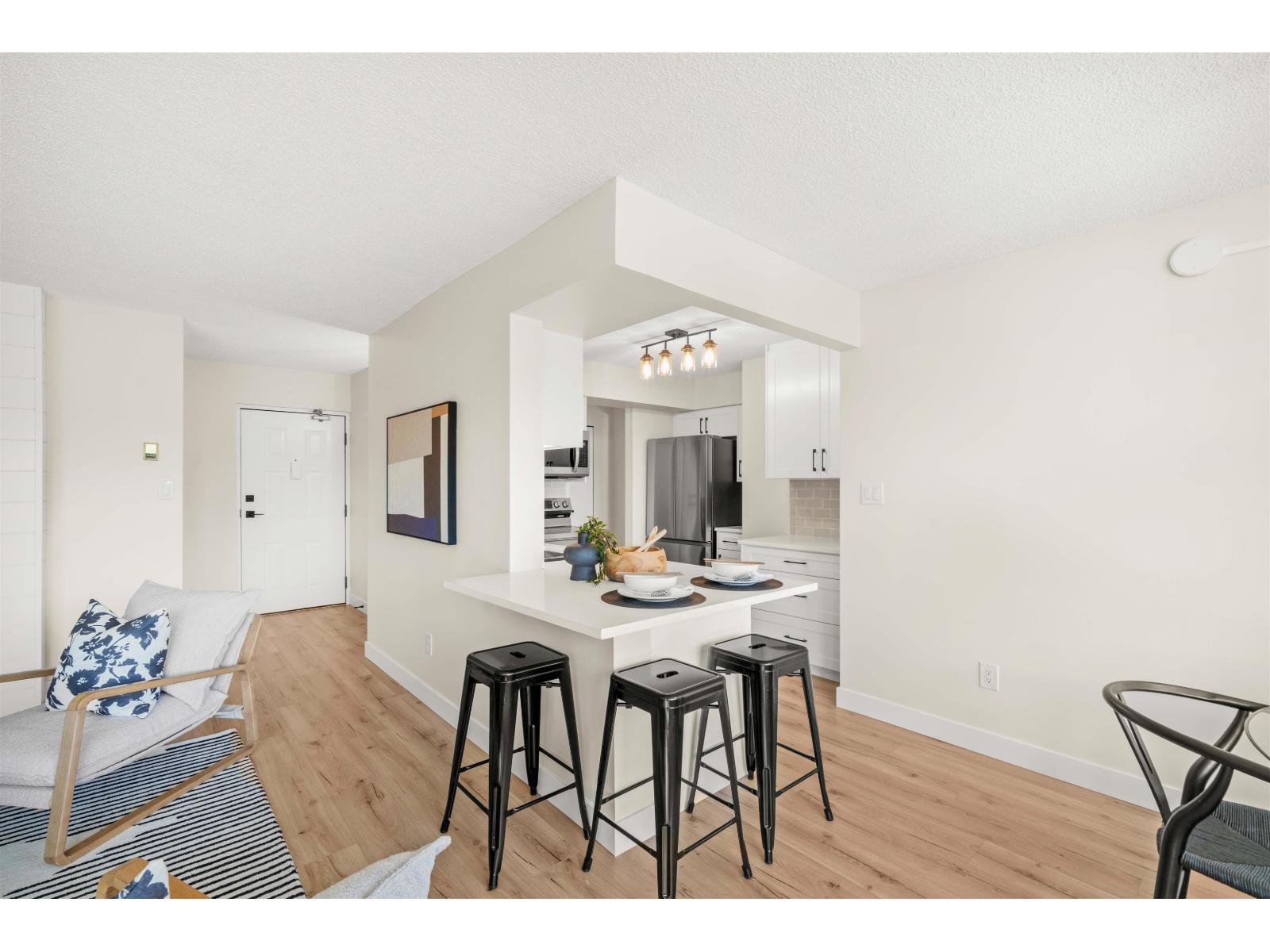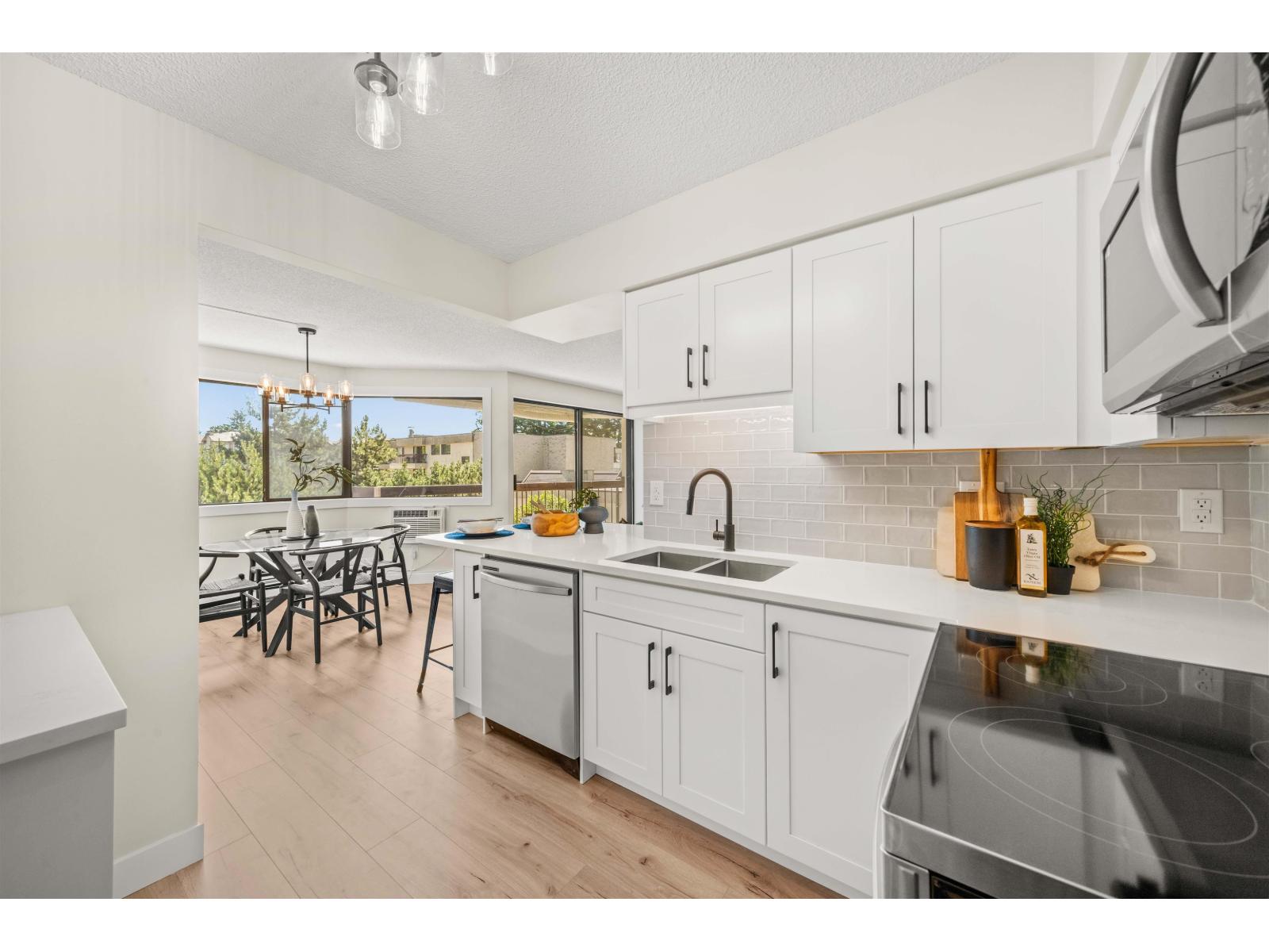 Renovation! Renovation! Renovation! This 2 bed, 2 bath unit is in Evergreen Village-one of Abbotsford's best managed 55+ communities. Concrete construction makes this home quiet and solid! Enjoy a spacious open-concept layout with a deluxe chef's kitchen, quartz counters, custom cabinetry, new stainless appliances, laminate flooring, A/C, and spa-like baths. Includes in-suite laundry and a versatile office/storage room. The building offers top-tier amenities: indoor pool, hot tub, workshop, library, hobby/recreation rooms, RV parking, guest suit and secured underground parking. Prime location with a bus stop out front and all essentials nearby. Call Today! (id:63510)