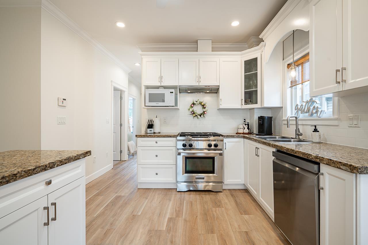 Welcome to this beautifully updated 5-bedroom, 3-bathroom home in Aldergrove! Located within walking distance to bus stops, shops, cafes, schools, and parks, this home offers the perfect blend of convenience and comfort. Inside, enjoy nine-foot ceilings, crown molding, fresh carpet in the bedrooms, and durable vinyl flooring in the main areas. The kitchen features granite countertops, a gas stove, and a French-door fridge. Outside, relax in your private backyard with a covered patio, hot tub, and playground. The detached garage and driveway provide ample parking, while the front yard boasts a magnolia tree and a cozy porch. Move-in ready with style and a prime location! (id:63510)