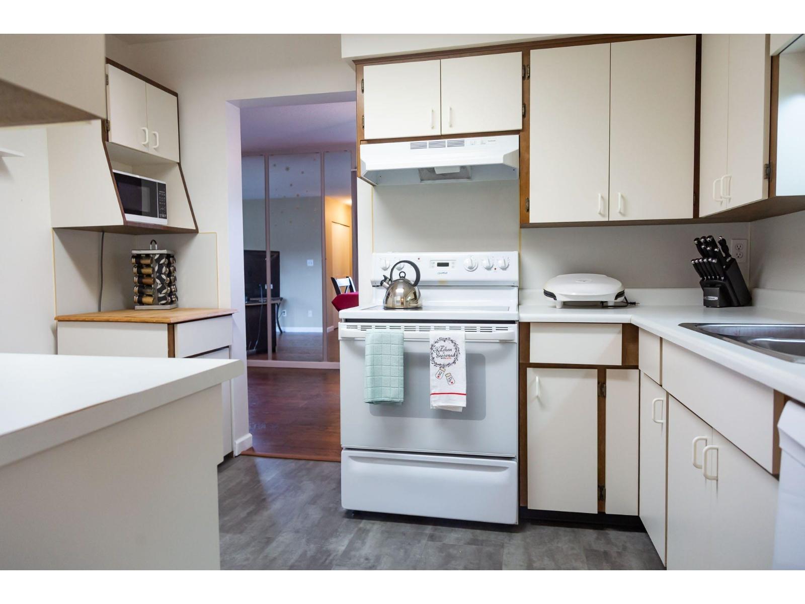Spotless large corner unit in the sought after 55+ Monta Vista Villa. Welcome to the beautifully maintained 2 bedroom 1 bathroom condo located in the heart of Abbotsford. This spacious private corner unit offers 1,047 sq/ft of bright living space, making it the perfect low-maintenance home. Updated walk in shower, in suite laundry and storage room, parking space, storage locker, and amenities room. No pets. (id:63510)