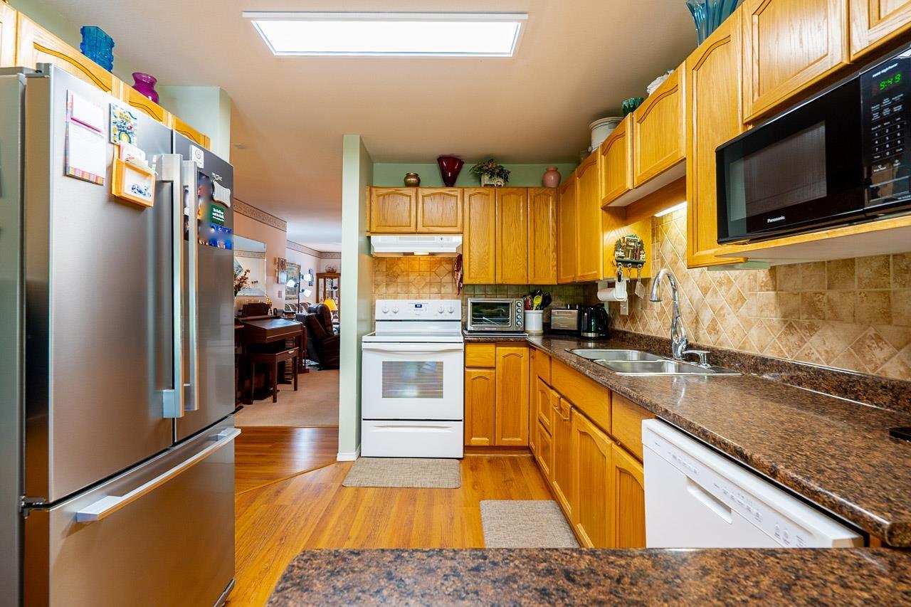 Fantastic quite location for this Immac 2 bed, 2 bath townhouse! The open-concept layout boasts a huge living room with gas F.P, perfect for entertaining. The dining area is large enough to invite the whole family. Kitchen features modern appliances lots of cupboards & a great eating area. You'll love the large primary bedroom with an ensuite. The second bedroom is versatile & can serve as a guest room or office. Low strata fees make homeownership affordable, and this adult-oriented 55+ complex ensures a serene living environment. Step outside to your private patio, and enjoy a tranquil retreat for morning coffee or evening relaxation Great opportunity for easy living in a well-maintained community, offering convenience and accessibility to shopping, walking trails. (id:63510)