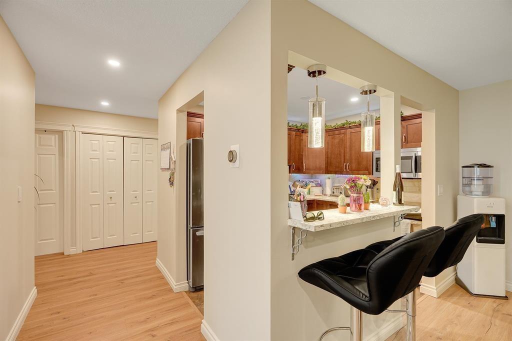 This bright and inviting unit has been thoughtfully renovated, with beautiful new flooring installed in 2023, and in 2018 received a refresh that included updated appliances, stylish kitchen counters, and fresh paint throughout. The result is a space that feels contemporary, comfortable, and move-in ready. Location couldn't be better - you'll be living in the heart of the community, with shopping, cafés, restaurants, banking, and local pubs all just a short stroll away. Families will also appreciate the convenience of having John MacLure Community School only a couple of blocks from your doorstep. This is a fantastic opportunity for first-time buyers or investors. Offer at any time. Open House Sept 20, 1 - 3 pm. (id:63510)