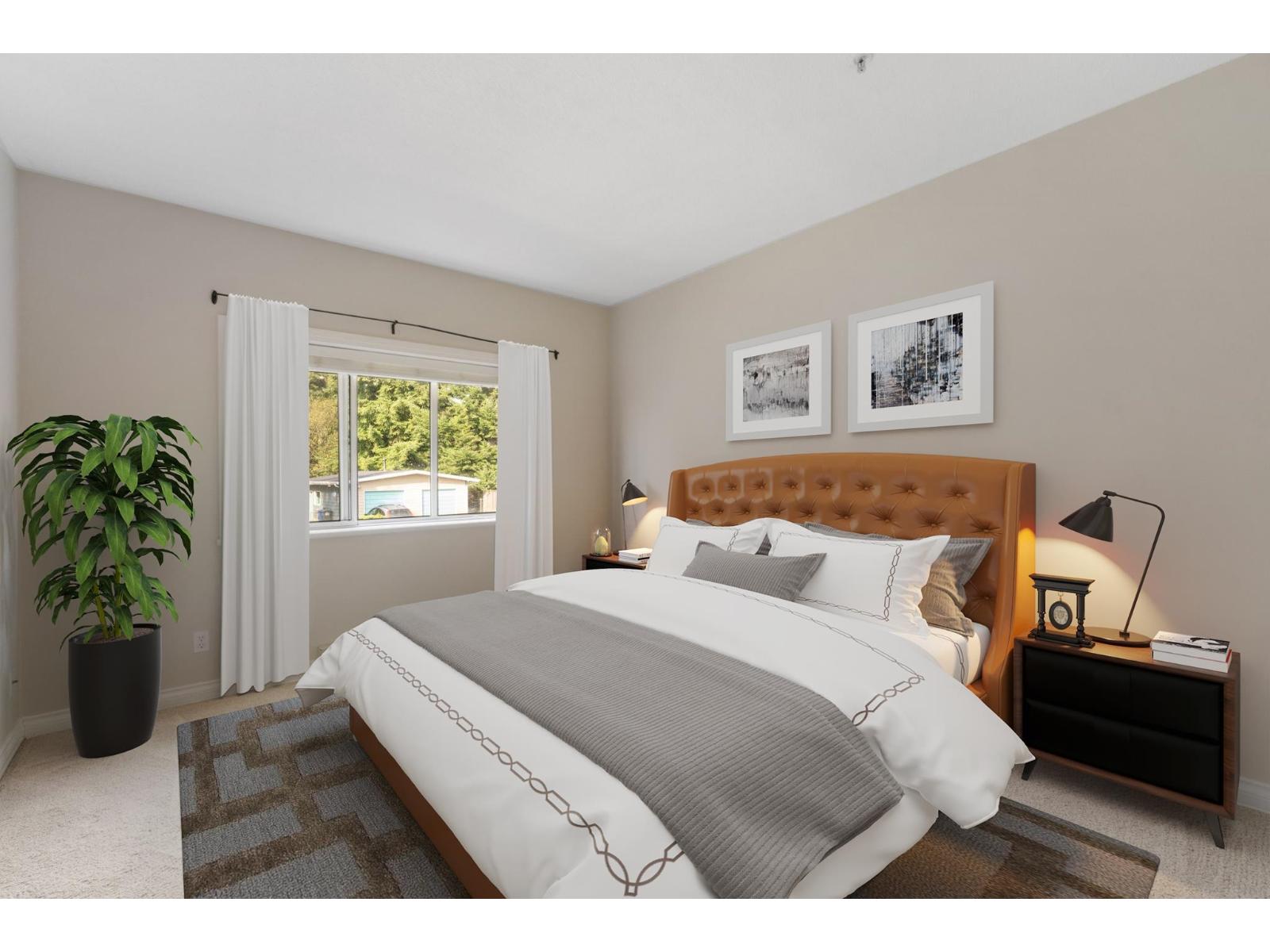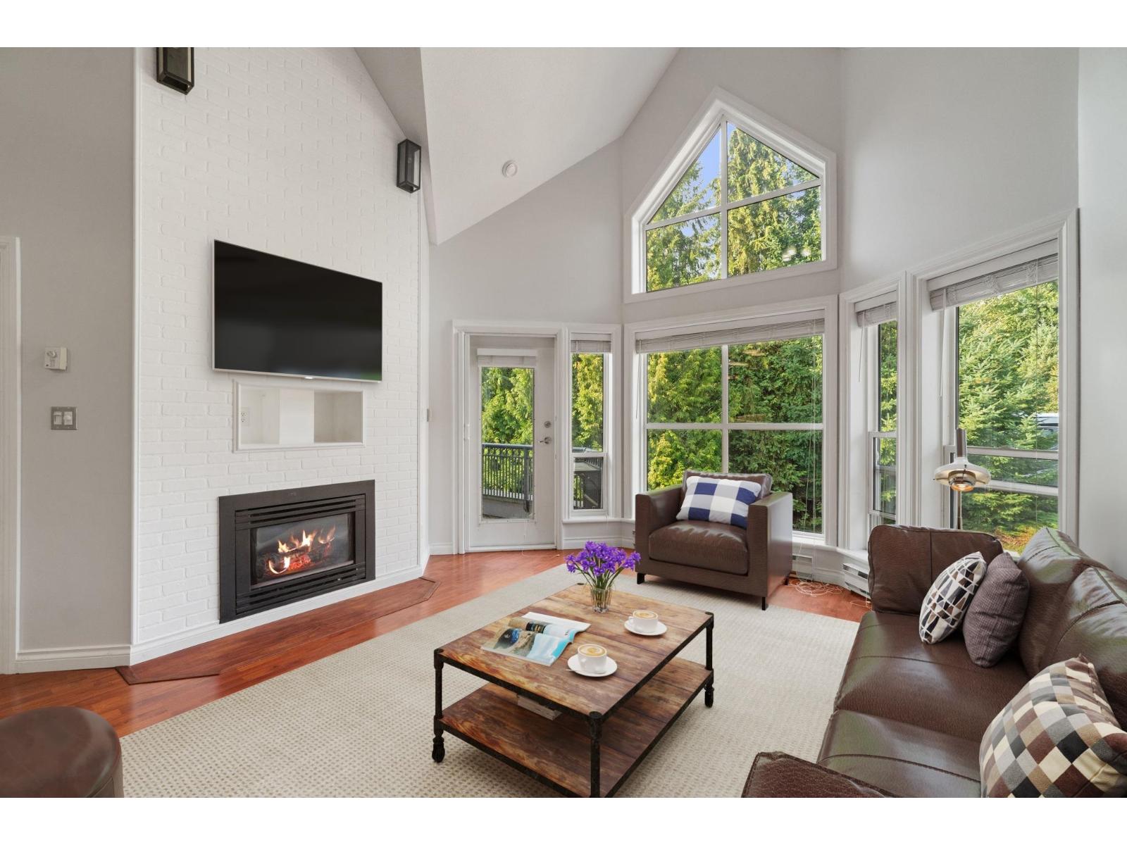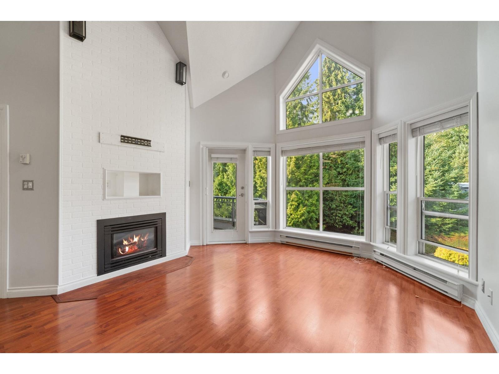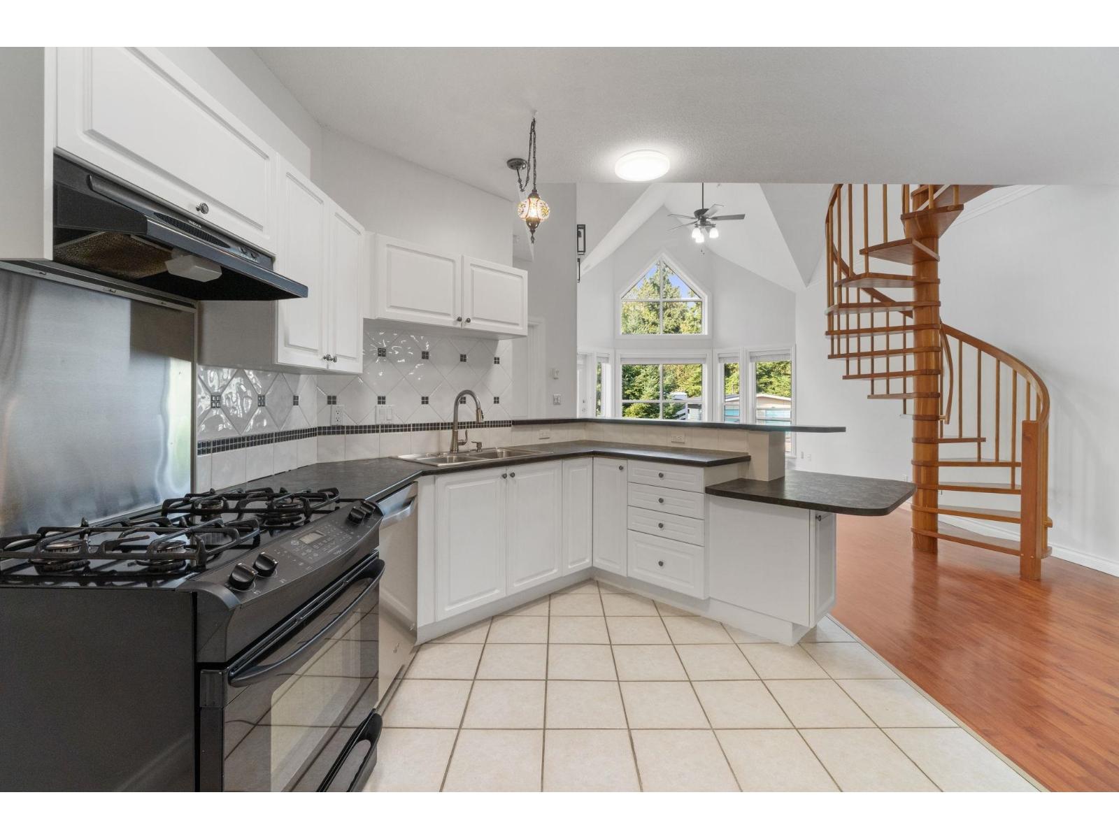 Welcome to Yale Terrace! This updated top-floor 2-bed, 2-bath home offers over 1,357 sq ft of modern living space. Soaring 17' vaulted ceilings and a stunning spiral staircase lead to a versatile loft, ideal for an office or cozy retreat. Recent updates include fresh paint, modern lighting, updated vanities, and newer kitchen appliances. The open-concept layout is perfect for entertaining, with easy flow from kitchen to dining to living area. Enjoy 2 side-by-side parking stalls, a storage locker, and included gas/hot water in your strata fees. Conveniently located near shopping, schools, transit, and Hwy 1. A new roof was installed in 2019 (fully paid). Don't miss this unique opportunity! Select photos include virtual staging to showcase the property's potential layout and design. (id:63510)