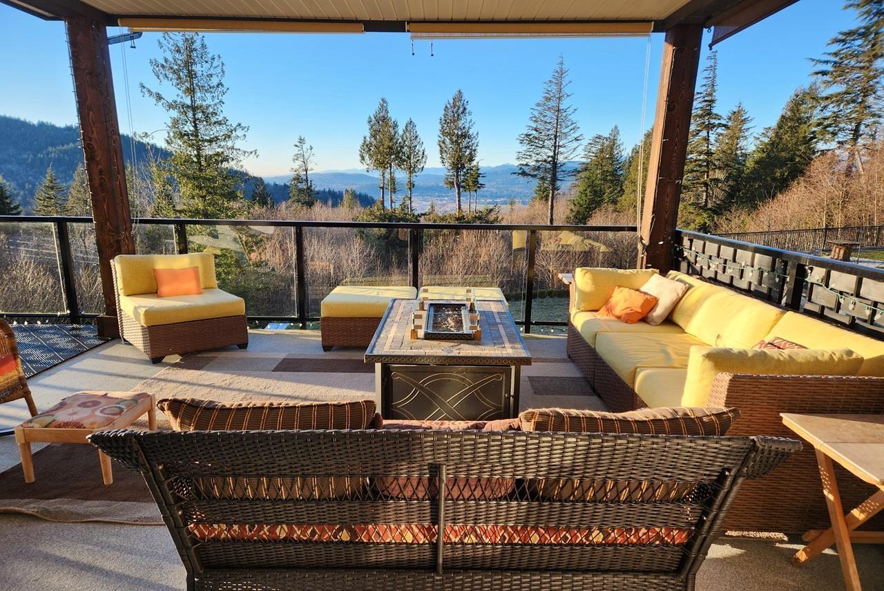 This stunning custom-built home, located in the exclusive Rock Cliff gated community, offers breathtaking mountain and valley views. The open, airy design features soaring 17-ft ceilings in the living room, creating a spacious and welcoming atmosphere. The chef's kitchen is equipped with top-of-the-line Thermador stainless steel appliances, including a wine fridge and convection/steam oven, complemented by quartz and granite countertops. Step through the dining room's double French doors to a private deck, where you can relax and take in the valley and mountain views, or enjoy the same picturesque scenery from the primary bdrm's outdoor deck. Additional highlights include wide plank vinyl flooring, cozy gas fireplaces, an ensuite steam shower, Heat Pump/AC, Generator, 2 bedroom suite. (id:63510)