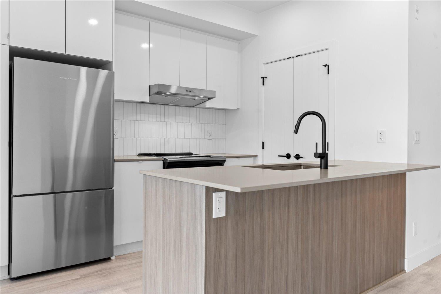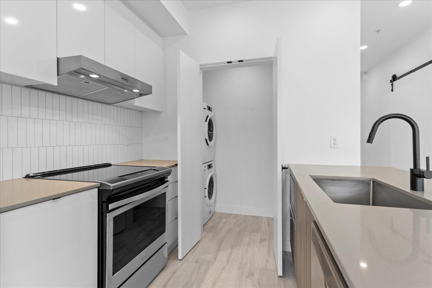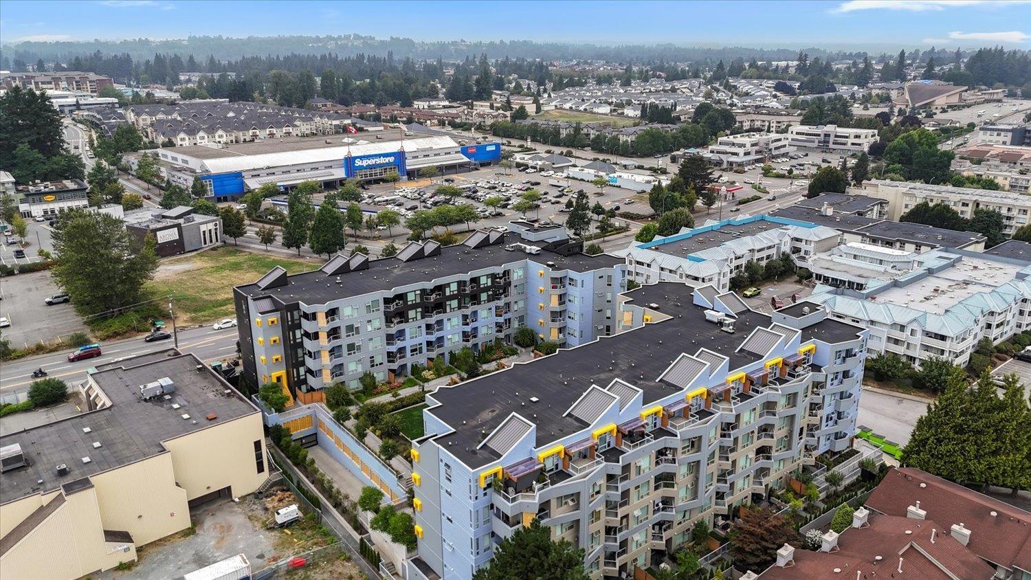Welcome to Court, a stylish modern building in the heart of Abbotsford! This bright 1 bedroom, 1 bathroom home offers 635 sq. ft. of open-concept living with big windows and laminate floors throughout. The kitchen features quartz countertops, stainless steel appliances, and a spacious island with seating. The bedroom provides ample closet space and is steps from a sleek 4-piece bathroom. Enjoy your private balcony overlooking the courtyard, plus the convenience of in-suite laundry and a secure underground parking stall. Built in 2021, this home has a low strata fee, is vacant and move-in ready, and is just minutes from Sevenoaks Shopping Centre, restaurants, cafes, schools, recreation, transit, golf, and Hwy 1 access. Don't miss this opportunity-book your private showing today! (id:63510)