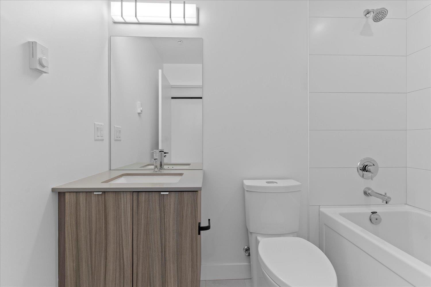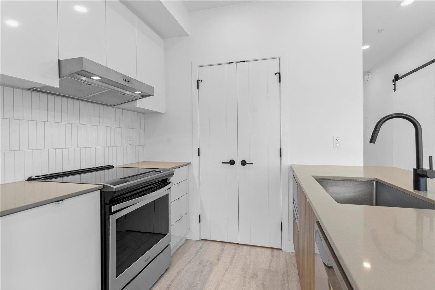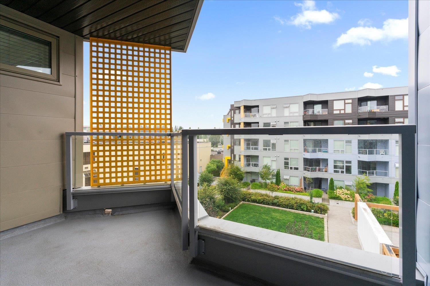 Welcome to Court, a stylish modern building in the heart of Abbotsford! This bright 1 bedroom, 1 bathroom home offers 635 sq. ft. of open-concept living with big windows and laminate floors throughout. The kitchen features quartz countertops, stainless steel appliances, and a spacious island with seating. The bedroom provides ample closet space and is steps from a sleek 4-piece bathroom. Enjoy your private balcony overlooking the courtyard, plus the convenience of in-suite laundry and a secure underground parking stall. Built in 2021, this home has a low strata fee, is vacant and move-in ready, and is just minutes from Sevenoaks Shopping Centre, restaurants, cafes, schools, recreation, transit, golf, and Hwy 1 access. Don't miss this opportunity-book your private showing today! (id:63510)