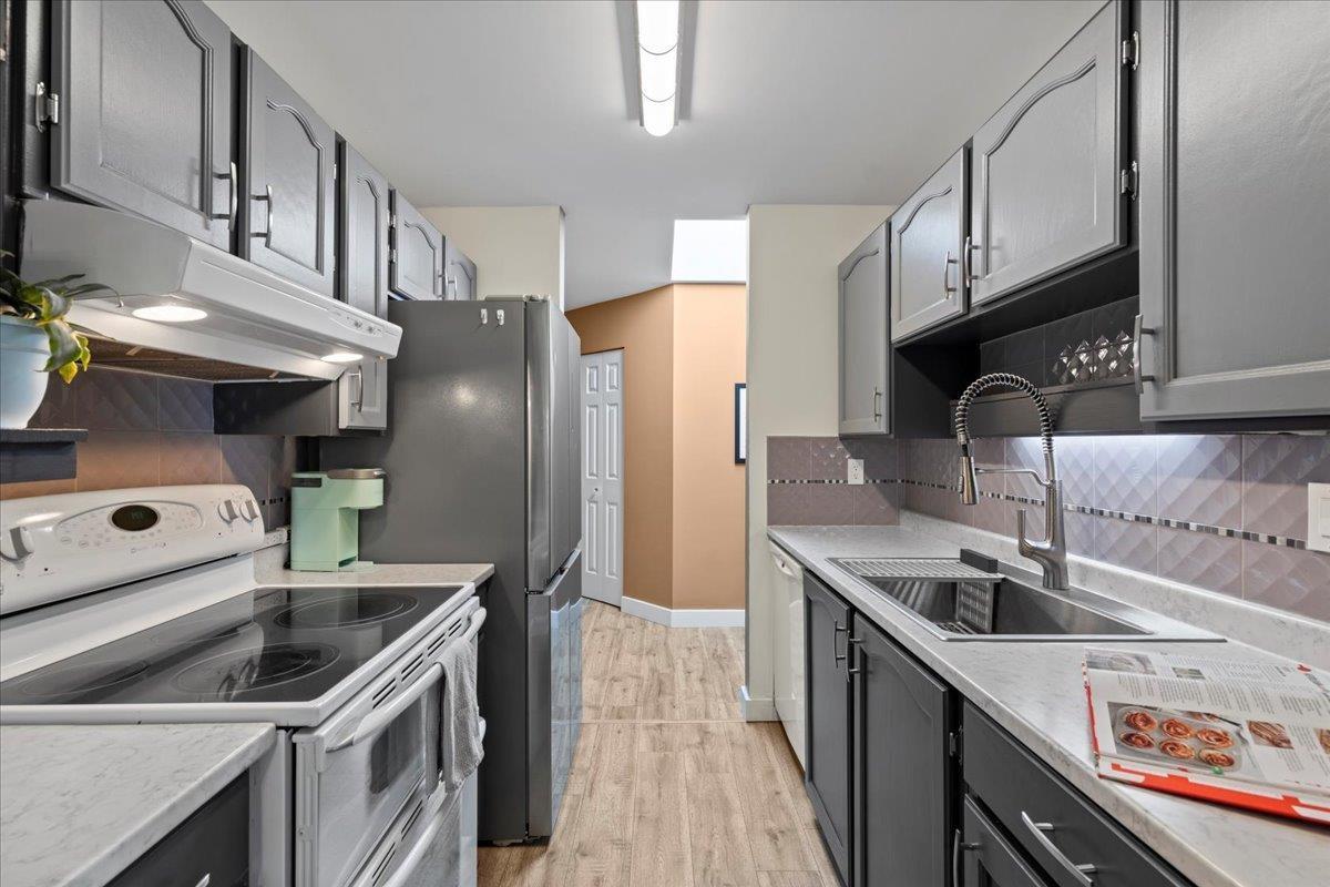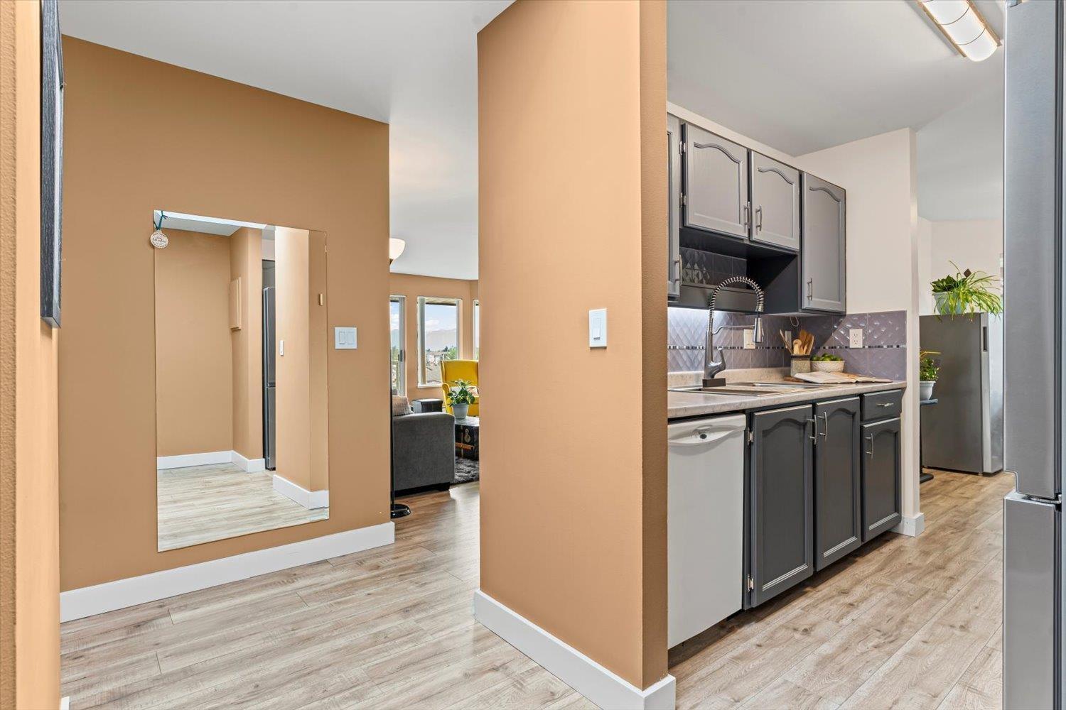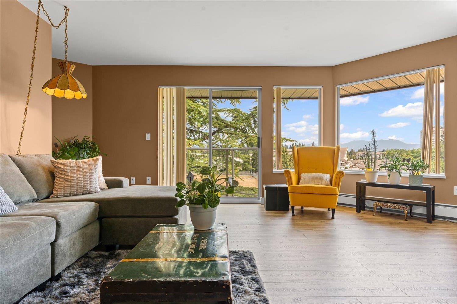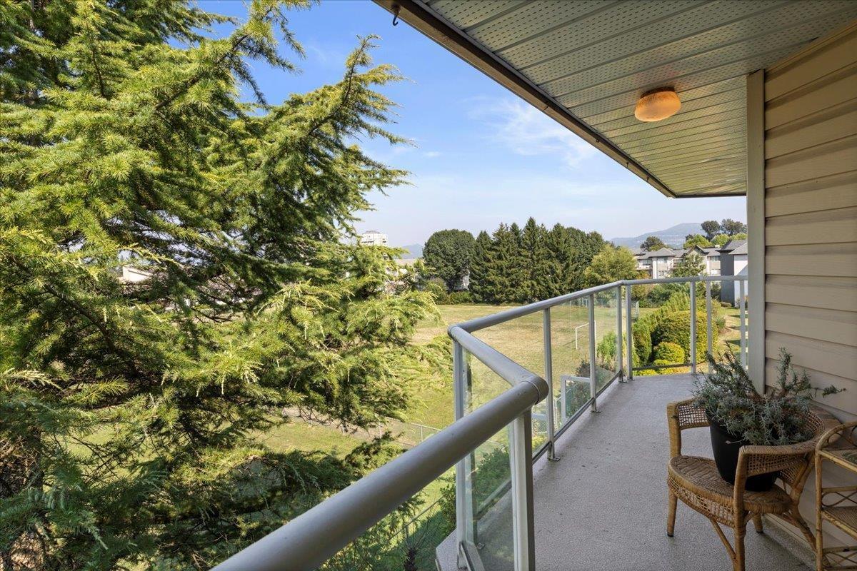 PENTHOUSE!! No Age Restrictions! Super rare top floor, corner unit with 12 windows, gas fireplace, large balcony, privacy and stunning open fields behind! Located right in the heart of Abbotsford in a very small, premium GATED community, this well maintained unit and complex is soaked in natural light from walls of windows, boasting generous bedrooms, updated bathrooms, and an inviting, open feel. Pride of ownership shines through every detail. 2 bedrooms, 2 full baths, insuite laundry, and over 1,200 square feet of space! Underground parking adds peace of mind. Move-in ready and waiting for you - this is the one you've been dreaming of! (id:63510)