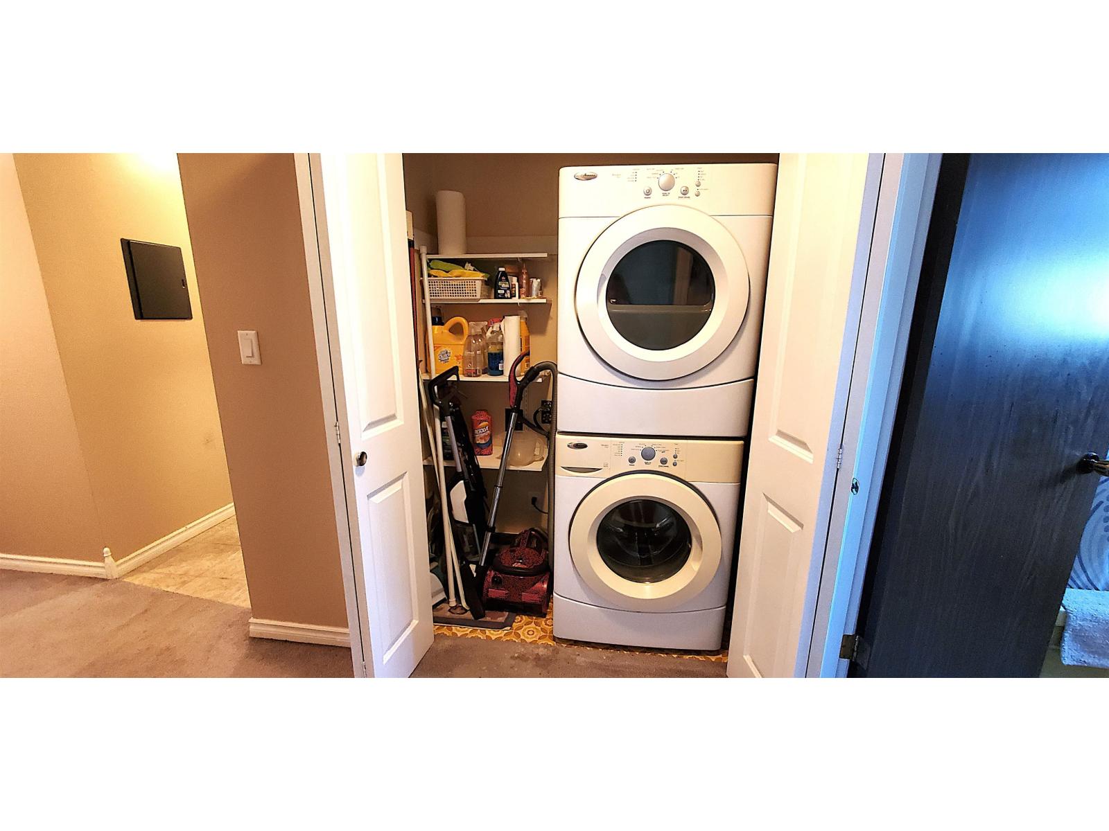 Welcome to Cloud Croft Manor. This well maintained and spotless 2-bedroom, 1-bath condo offers a spacious layout with lots of storage ideal for comfortable living. Located in a well-run, adult 55+ lifestyle complex, it features IN-SUITE LAUNDRY and a generous ENCLOSED 23' x 6', East facing SOLARIUM. Residents enjoy access to a games room, a lounge area with balcony access and a friendly community atmosphere. The unit comes with one underground parking stall, storage locker, and ample visitor parking available. Centrally located near shopping and transit, this PET-FRIENDLY home welcomes one lap-sized dog and/or two cats, making it a perfect blend of convenience, community, and comfort. (id:63510)
