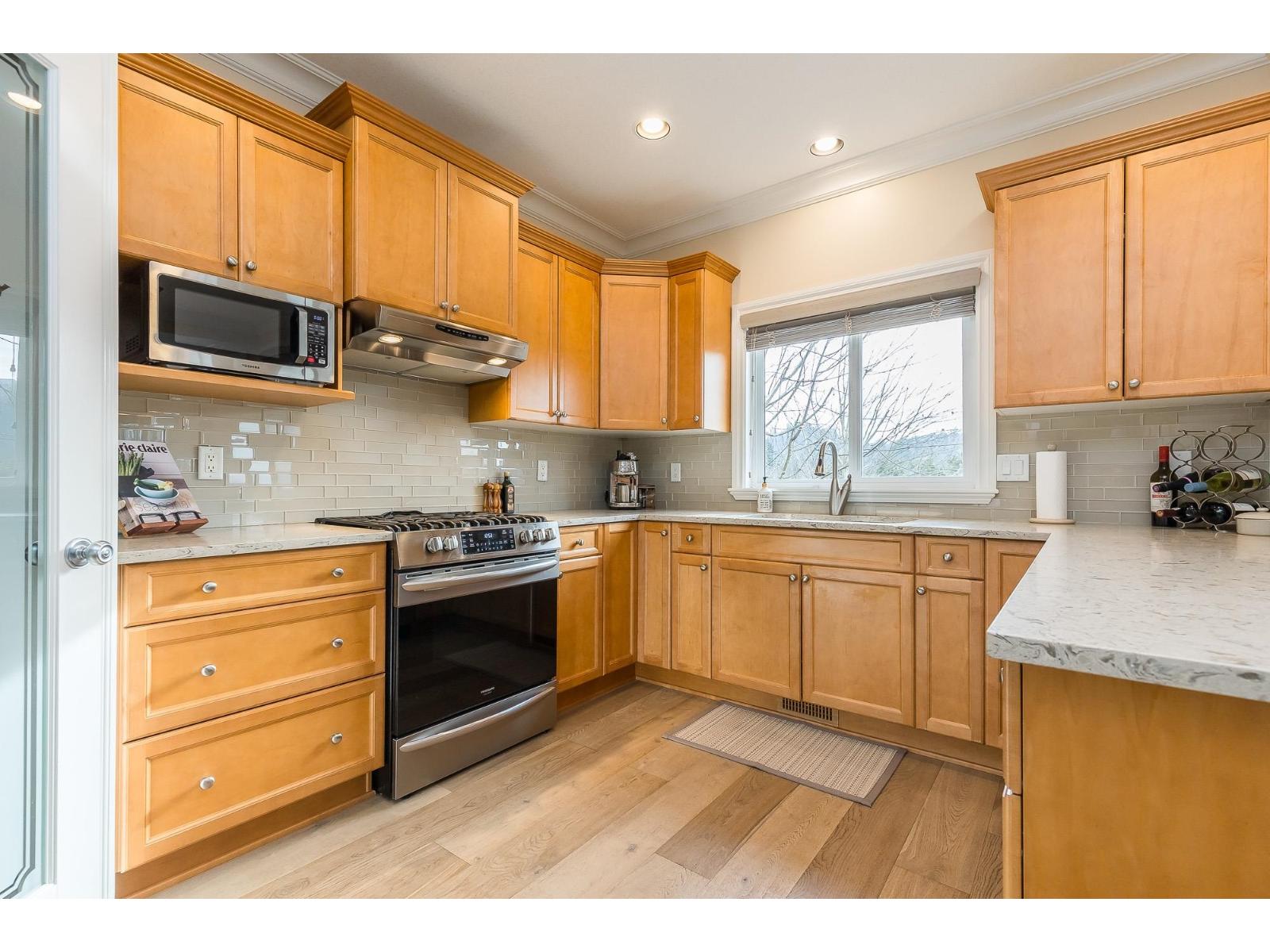 Prestigious McKinley Heights/Highlands - Bright, southerly facing 2 Storey with walkout basement and a 2 bdrm suite. This home has been loved by its original owners. There is new engineered hardwood floors and carpet installed in the top 2 levels as well as freshly painted. The home sits on a cul-de-sac with a gorgeous view to the west and the San Juan Island with a massive deck to enjoy the view. The suite has been finished to the same quality as the upstairs and has its own laundry. 2 gas F/P's, 9 foot ceiling on main and basement levels. 3 gas bbq/heater outlets outside. The kitchen has quartz counters, S/S appl and a large pantry. A/C Heat Pump to keep you cool. Custom wood blinds and Central Vac. Private yard. The cul-de-sac has a pathway to a elementary school and parks. (id:63510)