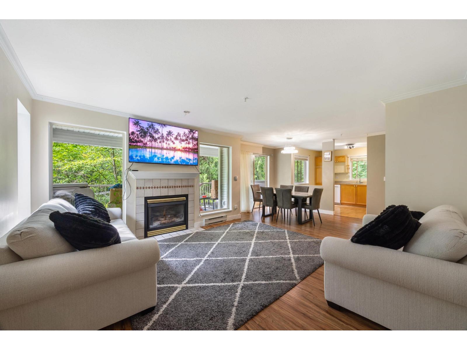 Welcome to this bright 2 bedroom 2 bathroom corner unit un Aspen Creek! Offering over 1,000 sq.ft of living space with 2 parking stalls. Situated on the quiet side of the building overlooking greenspace. This corner unit has an open floor plan for comfortable living, large wall to wall windows a large sundeck, perfect for entertaining guests throughout the year. Centrally located just steps from downtown's shops, cafes, and businesses, with easy freeway access and close proximity to all levels of schools. (id:63510)