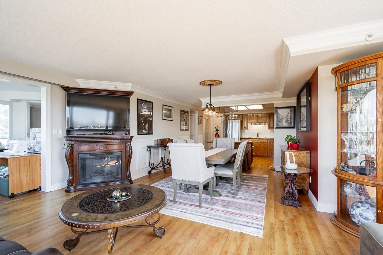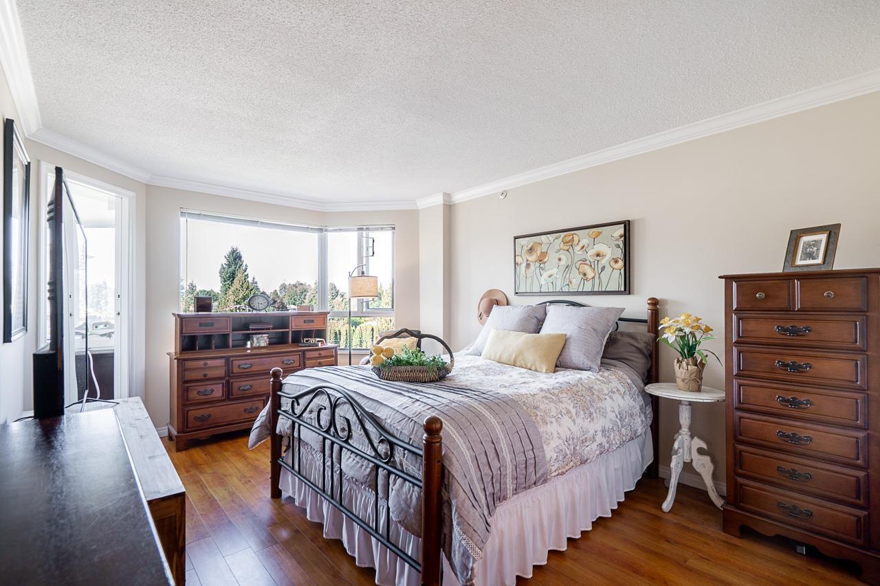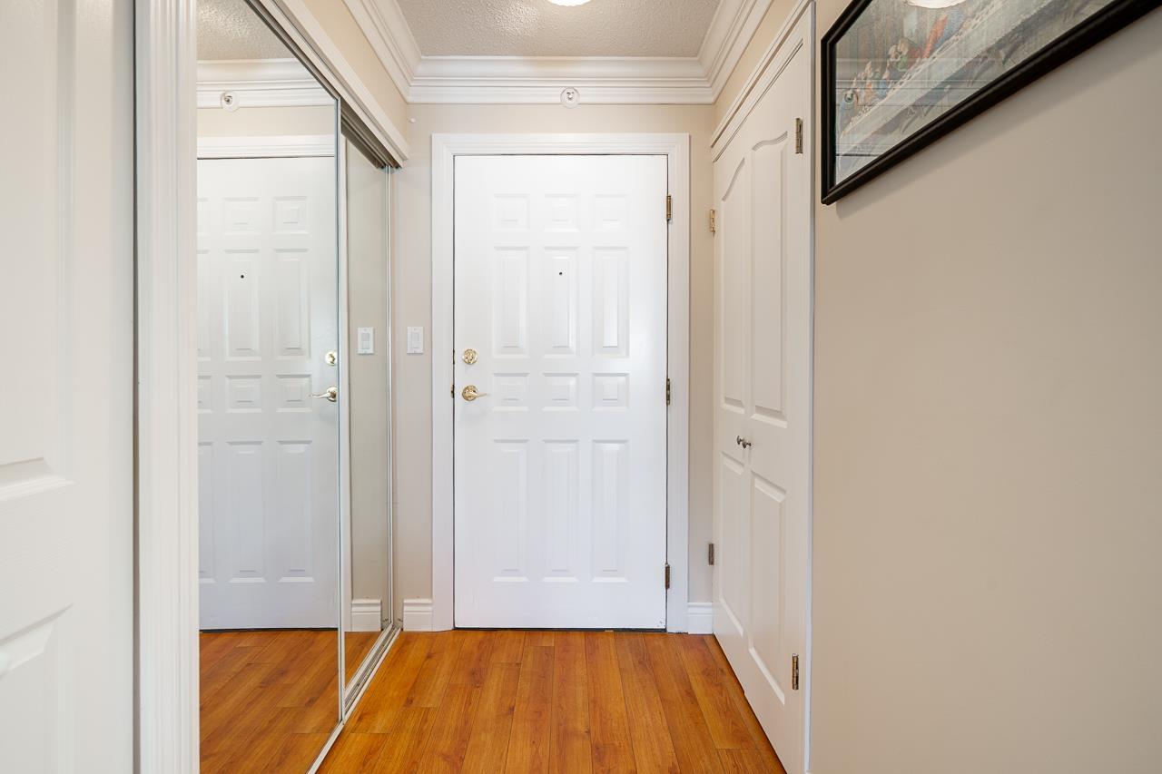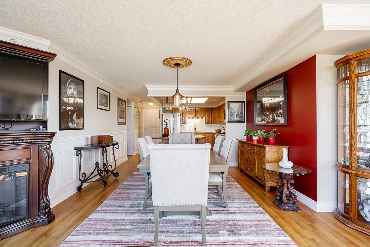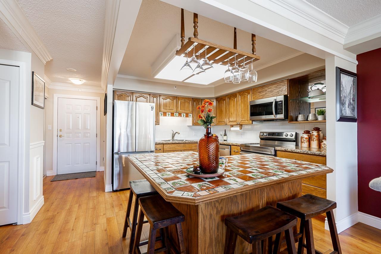 Come and check out the most desirable non age restricted Regency Tower 3! This unique and well cared for 2 bed 2 bath suite comes with a balcony enclosed for an extra den or room. The open layout CORNER UNIT features a large living room surrounded by endless windows to capture lots of light for your morning coffee. Rich laminate flooring, kitchen has solid oak cabinets with a movable island finished w /mexican tile for entertaining guests. The generous sized primary bedroom has a full 4 pc ensuite with a soaker tub & a walk in closet. Located in a resort style complex, excellent round the clock security and a very well run strata with an indoor pool, exercise room, hot tub, guest suite, ample visitor parking and some RV parking. Close to restaurants, shopping mall, Superstore, Mill Lake. Open house this Saturday September 27th 12-2pm (id:63510)