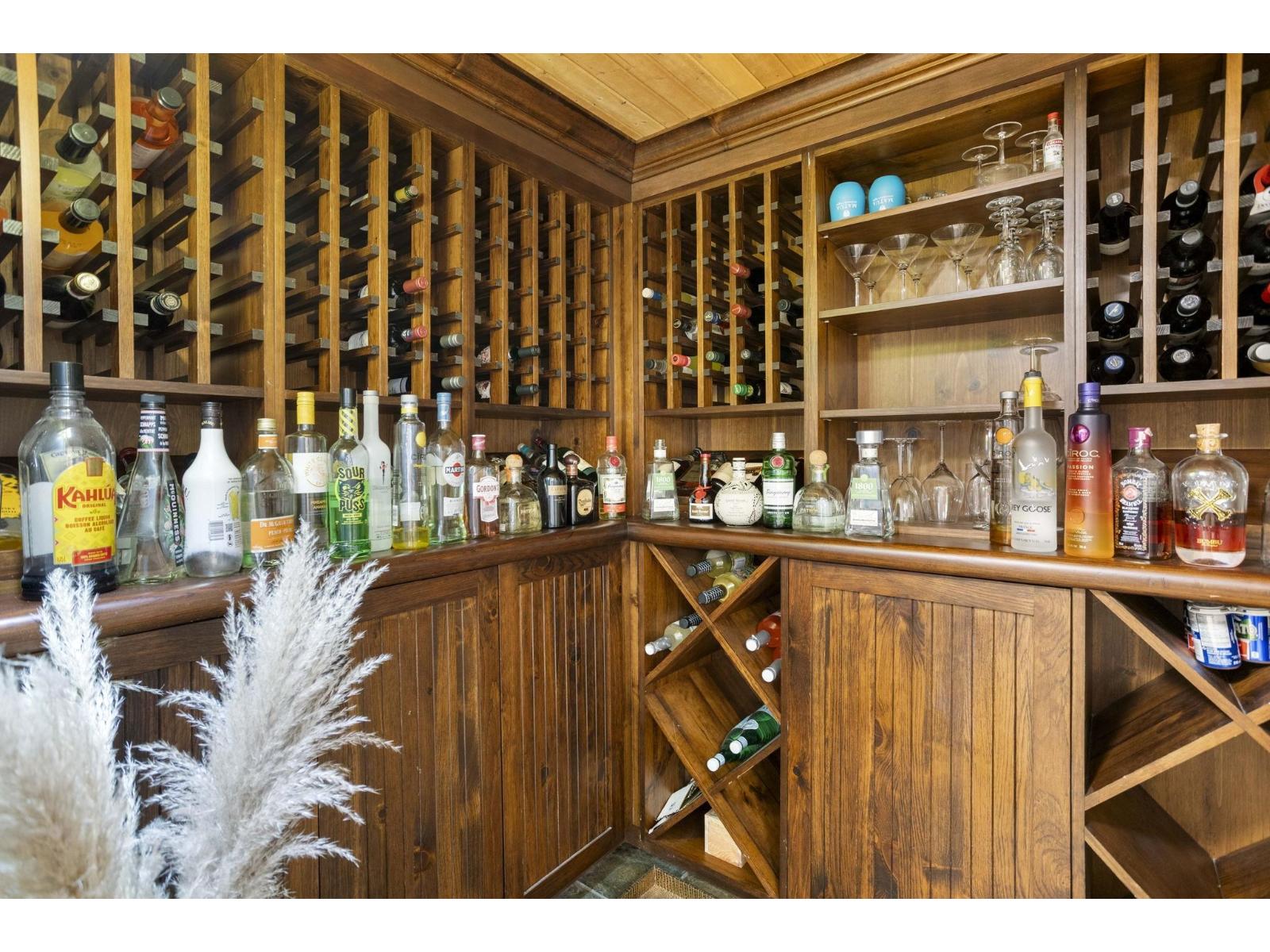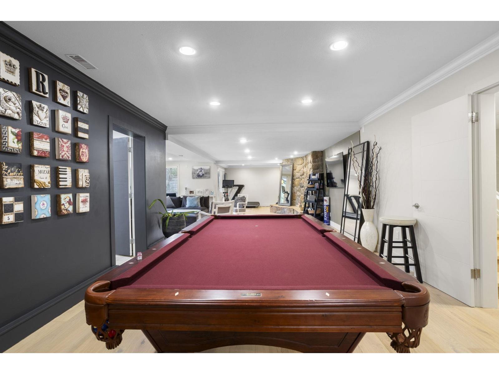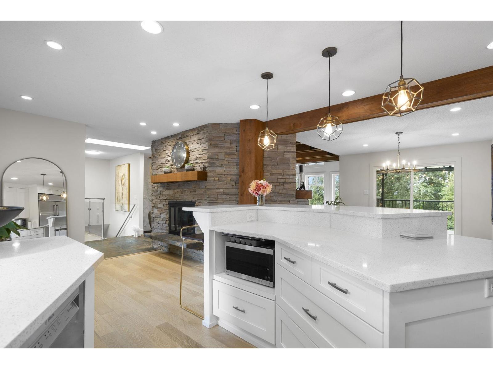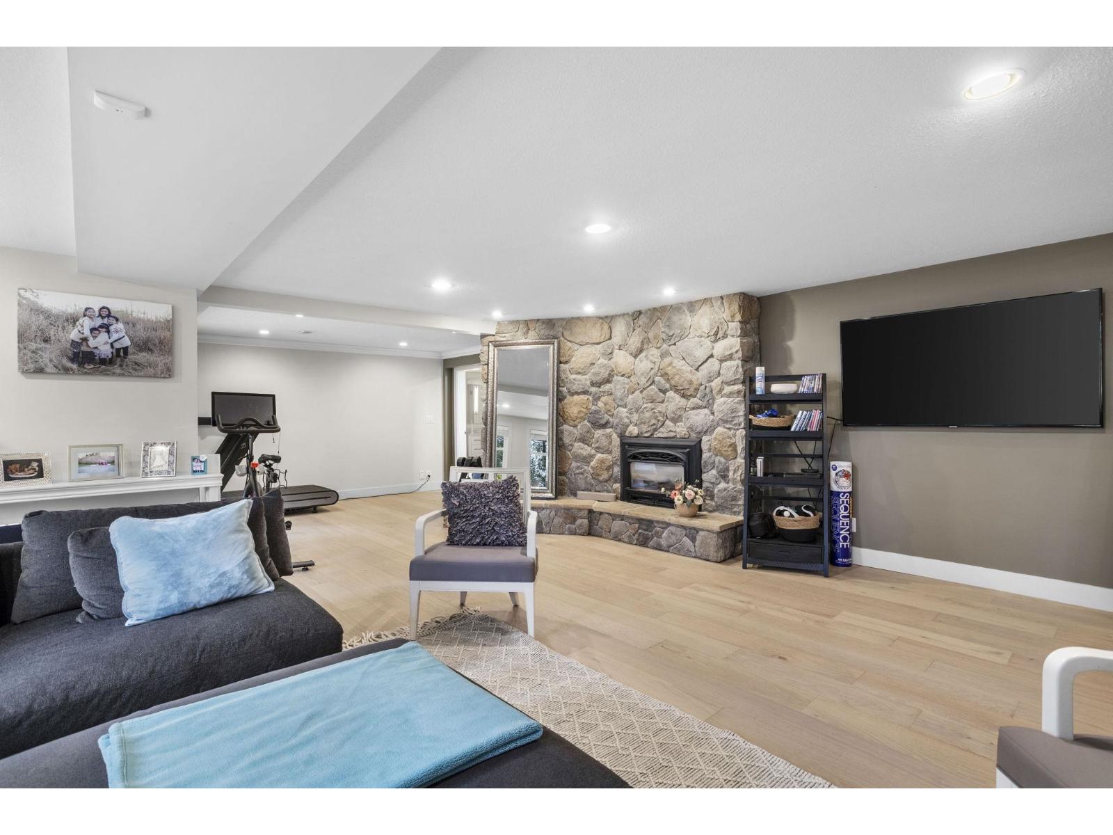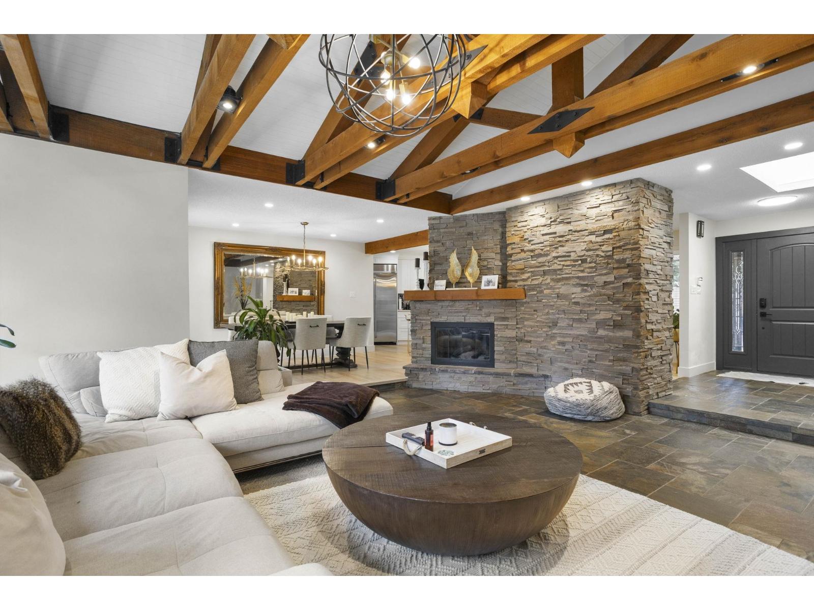 Entertainers look no further! Fully renovated Rancher with Basement on a desirable dead end road. Homes rarely come up for sale on this street. Open concept living boasting expansive & oversized windows in the living room, double sided fireplace upon entry, bright white kitchen with quartz countertops and S/S appliances, 3 bedrooms upstairs with the Primary Bedroom boasting a 5 piece spa ensuite bathroom with WIC and a seperate deck. Basement offers a spacious recreation room, 2 large bedrooms and third room perfect for crafts and hobbies. Sliding door out to the walk out patio. Wine cellar, AC, double garage with 2x EV chargers, mud room with laundry & plenty of storage throughout. Stunning backyard with a massive deck overlooking the yard, securely enclosed saltwater pool, a covered hot tub under a gazebo, along with 2 sheds. Seperate parking down below where yoou can park your 2 trucks also! Close to town and all its amenities but also tucked away where you can enjoy the peace and quiet. Rare to replicate! (id:63510)
