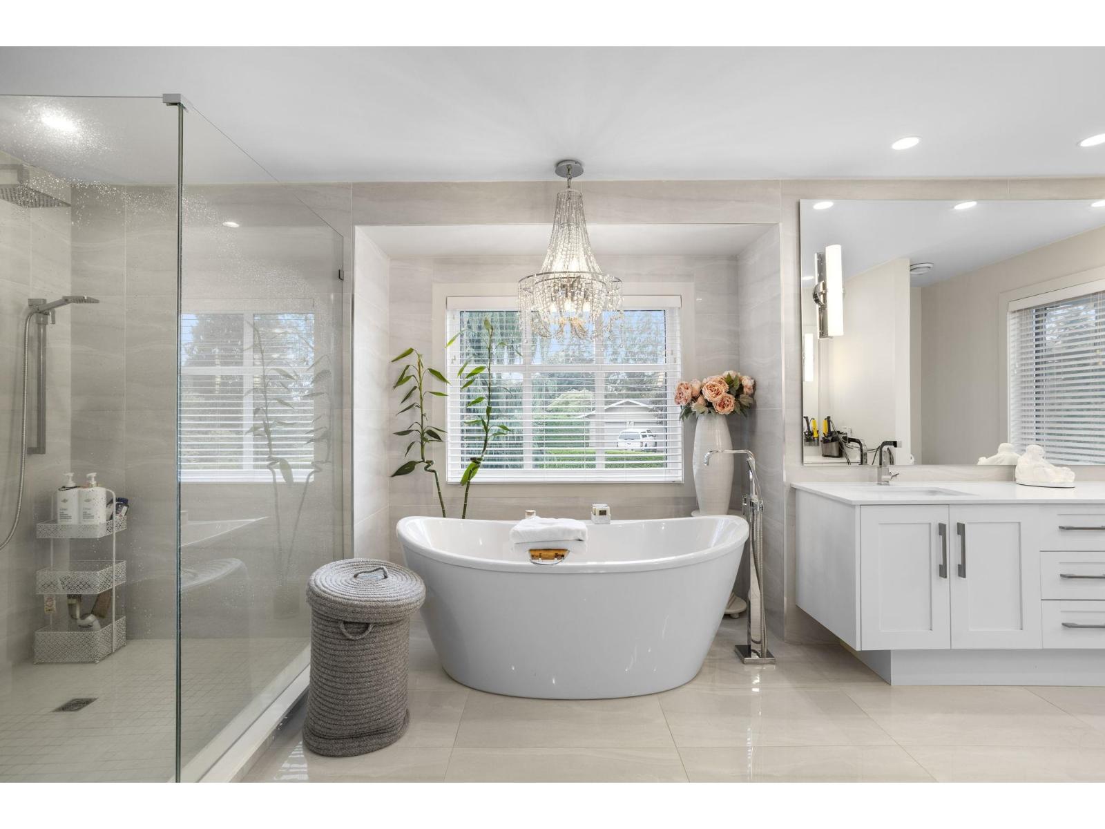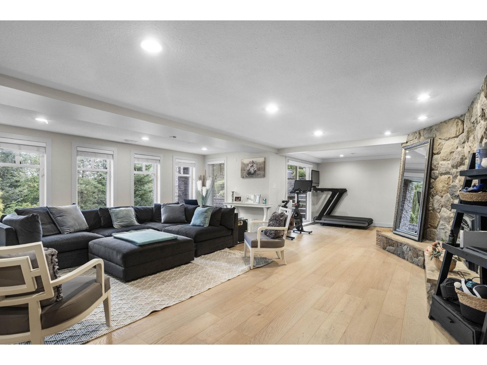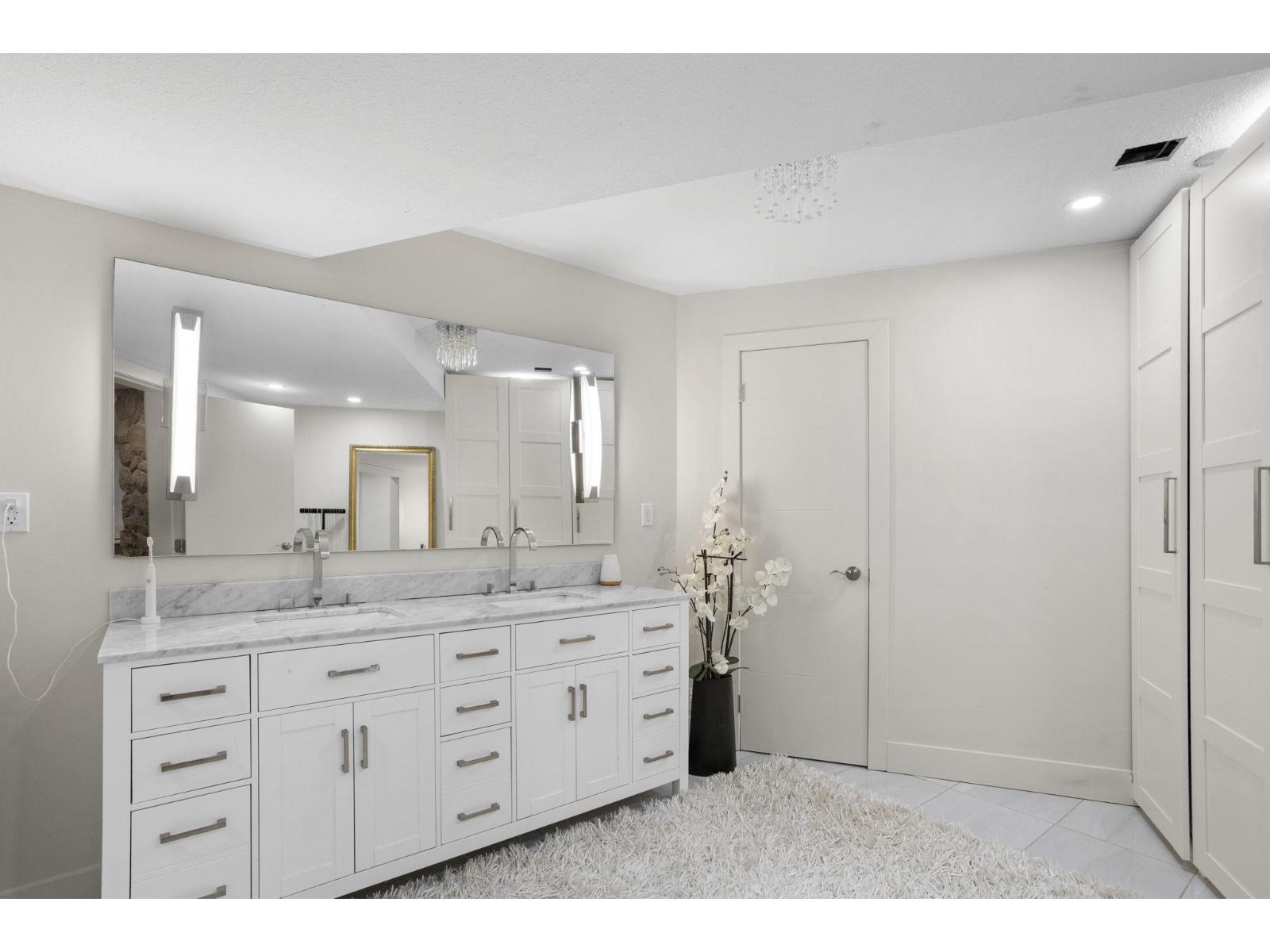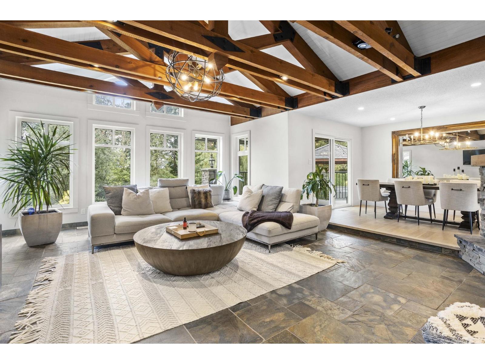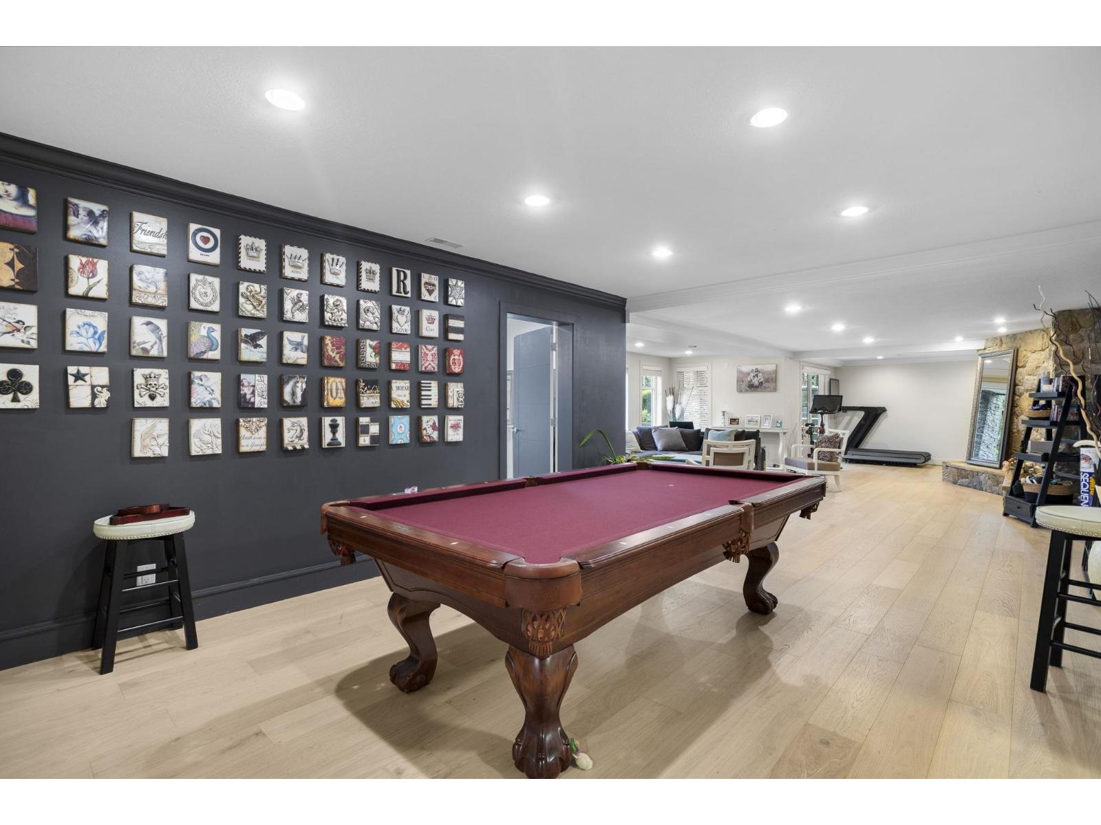 Entertainers look no further! Fully renovated Rancher with Basement on a desirable dead end road. Homes rarely come up for sale on this street. Open concept living boasting expansive & oversized windows in the living room, double sided fireplace upon entry, bright white kitchen with quartz countertops and S/S appliances, 3 bedrooms upstairs with the Primary Bedroom boasting a 5 piece spa ensuite bathroom with WIC and a seperate deck. Basement offers a spacious recreation room, 2 large bedrooms and third room perfect for crafts and hobbies. Sliding door out to the walk out patio. Wine cellar, AC, double garage with 2x EV chargers, mud room with laundry & plenty of storage throughout. Stunning backyard with a massive deck overlooking the yard, securely enclosed saltwater pool, a covered hot tub under a gazebo, along with 2 sheds. Seperate parking down below where yoou can park your 2 trucks also! Close to town and all its amenities but also tucked away where you can enjoy the peace and quiet. Rare to replicate! (id:63510)