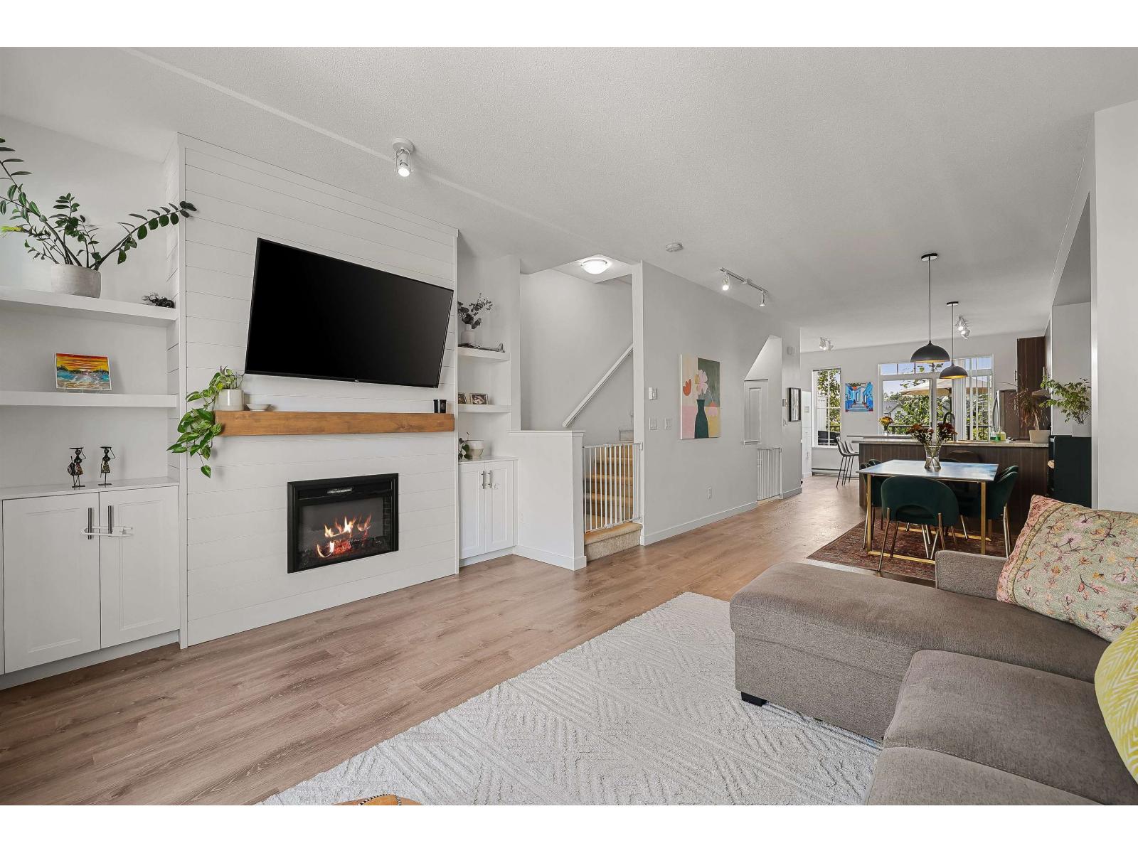 Welcome home to Harvest at Westerleigh by Polygon! This 3bdrm, 2bath townhome combines modern comfort with family-friendly living in a master-planned community featuring award-winning amenities like a pool, lounge, hockey rink, theatre room and more. Inside, you'll love the open-concept main floor with laminate flooring & thoughtful upgrades. A custom fireplace surround creates a warm focal point in the living area, while the full kitchen island & added shelving & cabinetry offer style and extra storage. Upstairs are three generously sized bedrooms, perfect for families or guests. One of this home's most unique features is its location backing onto the future Westridge Park, giving you extra privacy & an exciting recreational space just beyond your door. (id:63510)