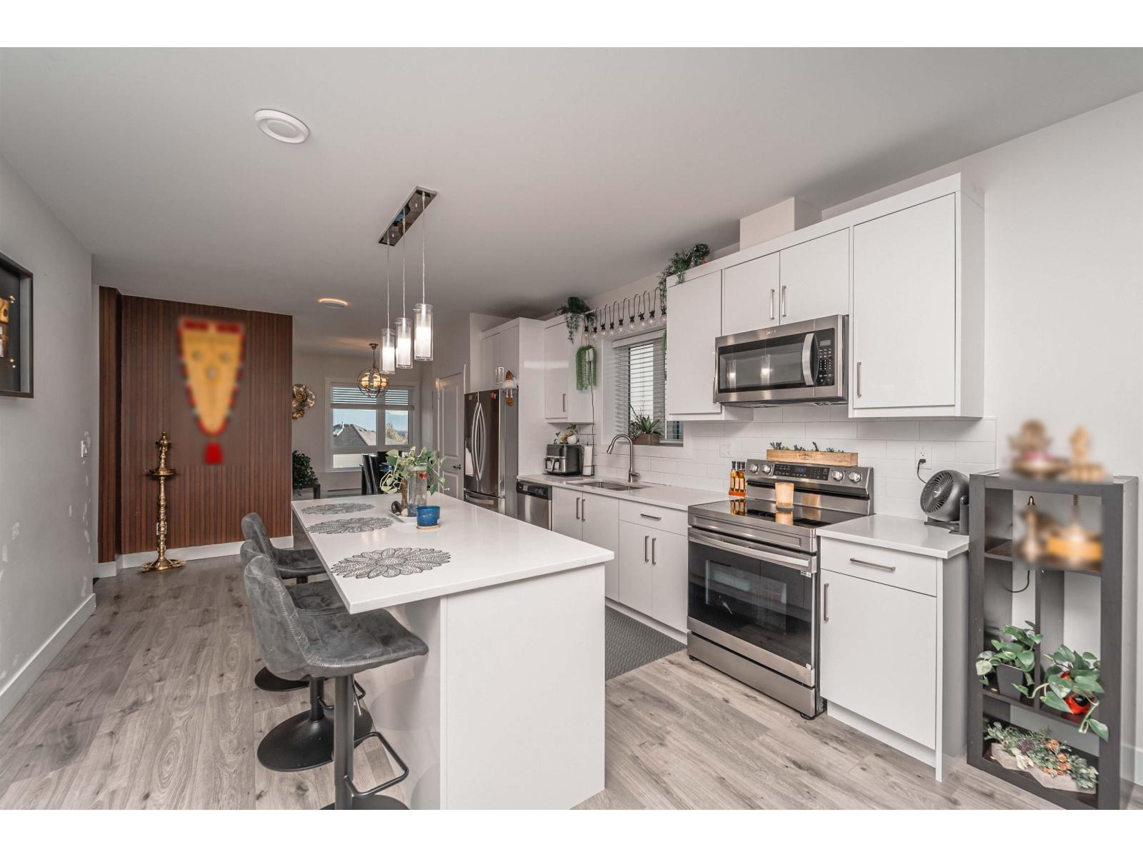 OPEN HOUSE SUN, OCT 19TH FROM 2- 4 PM. Townhouse Built in 2022! Abbotsford's one of the most desirable neighborhoods. Main floor offers large island, quartz counters, chefs kitchen with S/S appliances, half bathroom & a sunny sundeck to relax. Upstairs features 3 bedrooms/ 2 bathrooms with an with ensuite in the master, washer/dryer. Other features- Affordable strata maintenance fee, 2 car garage, well maintained strata complex, great neighborhood to raise your kids, No age restrictions, rentals allowed and much more. Close to all levels of schools, shopping, recreation, public transit, parks, malls & easy access to highway. (id:63510)