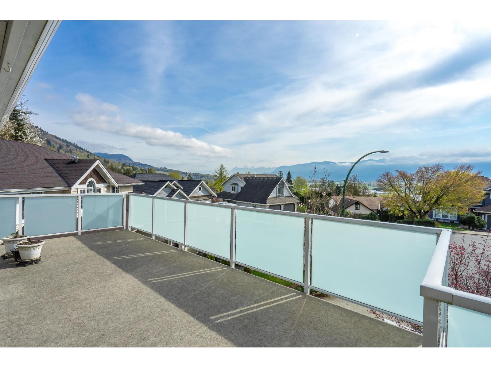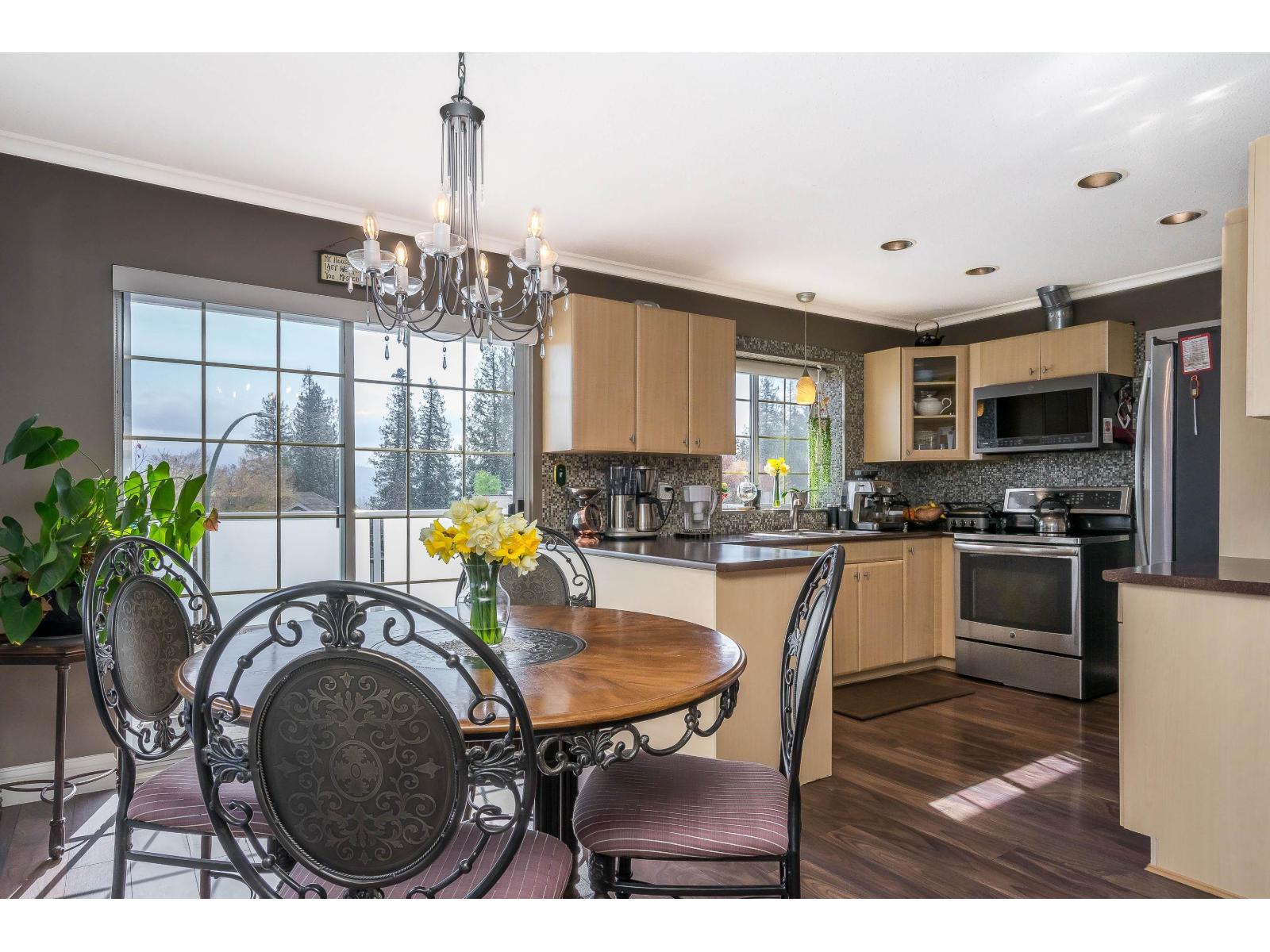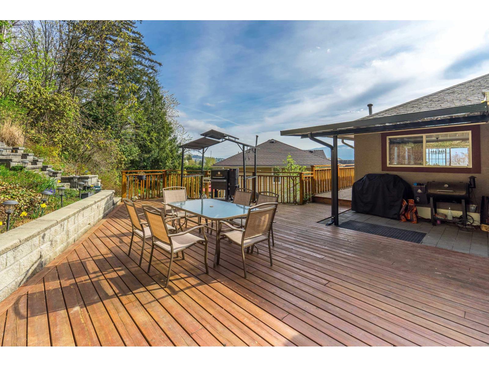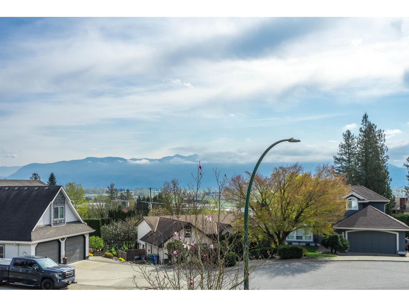 This beautifully updated 5bed, 3bath home offers a perfect blend of comfort, style, and versatility. Nestled in a peaceful cul-de-sac, this property provides a serene environment while being conveniently located near amenities & all levels of schools. The kitchen features updated appliances. The living and dining areas are perfect for gatherings, while large windows fill the space with natural light and offer views of Sumas Prairie & Mount Cheam. The home includes a desirable 2bed suite, with its own entrance providing privacy and independence.Step outside to enjoy the tranquil private backyard, where you can relax & take in the stunning landscape. Whether it's hosting bbqs or enjoying quiet evenings under the stars this outdoor oasis is sure to impress! (id:63510)