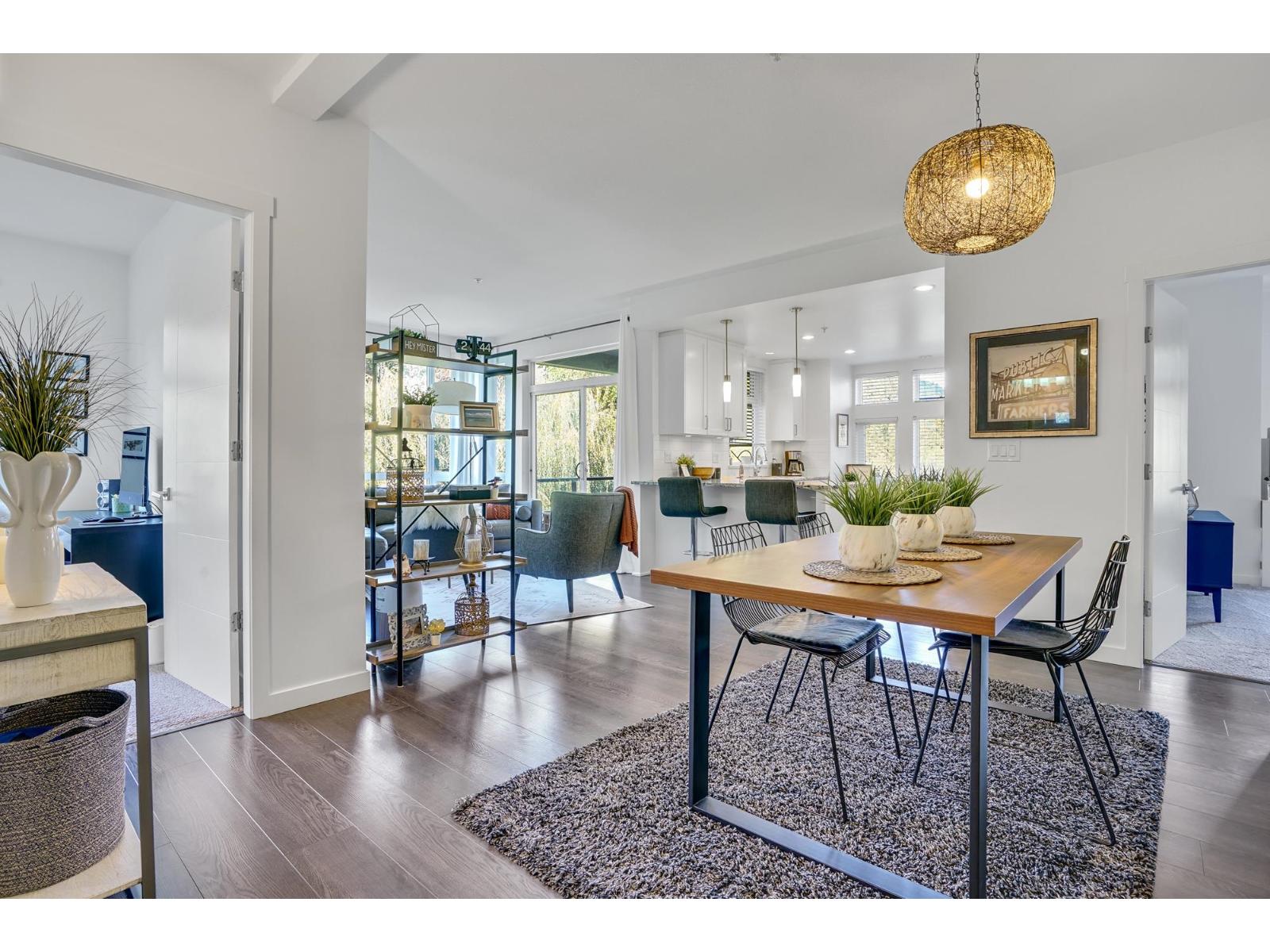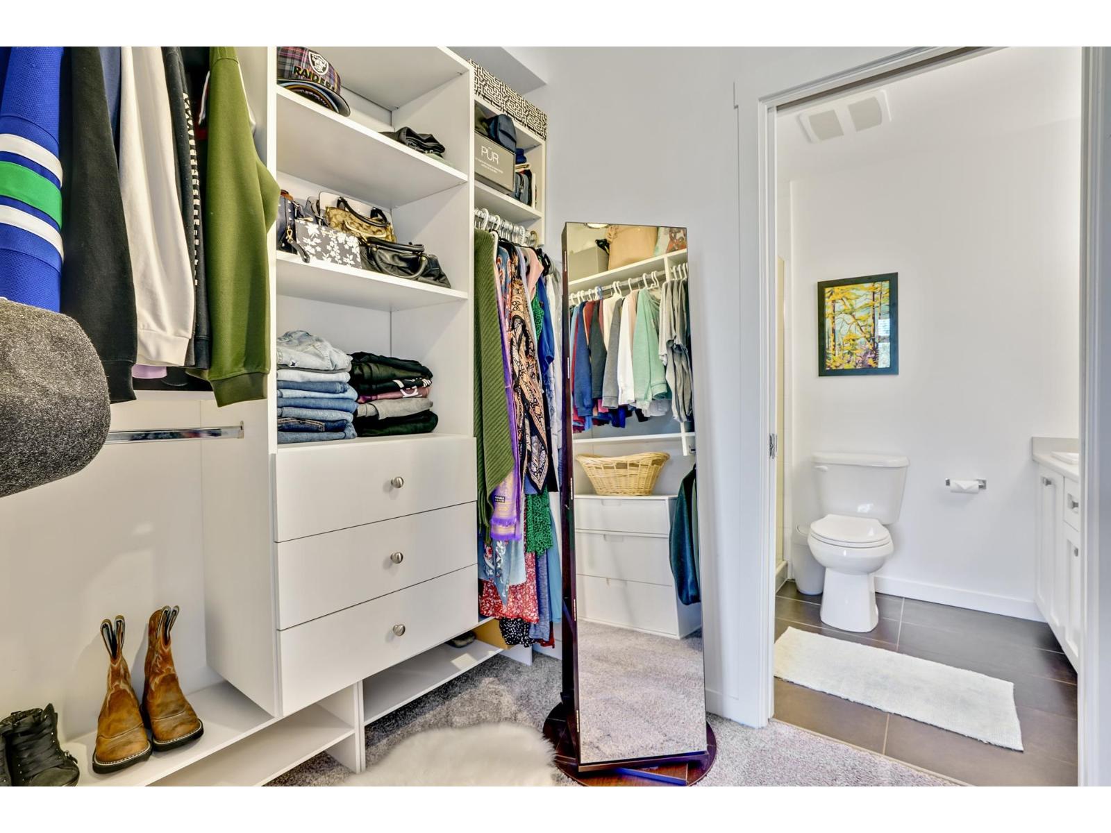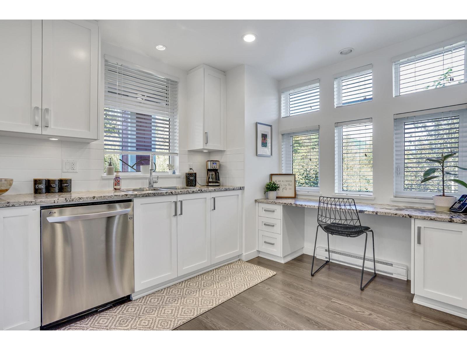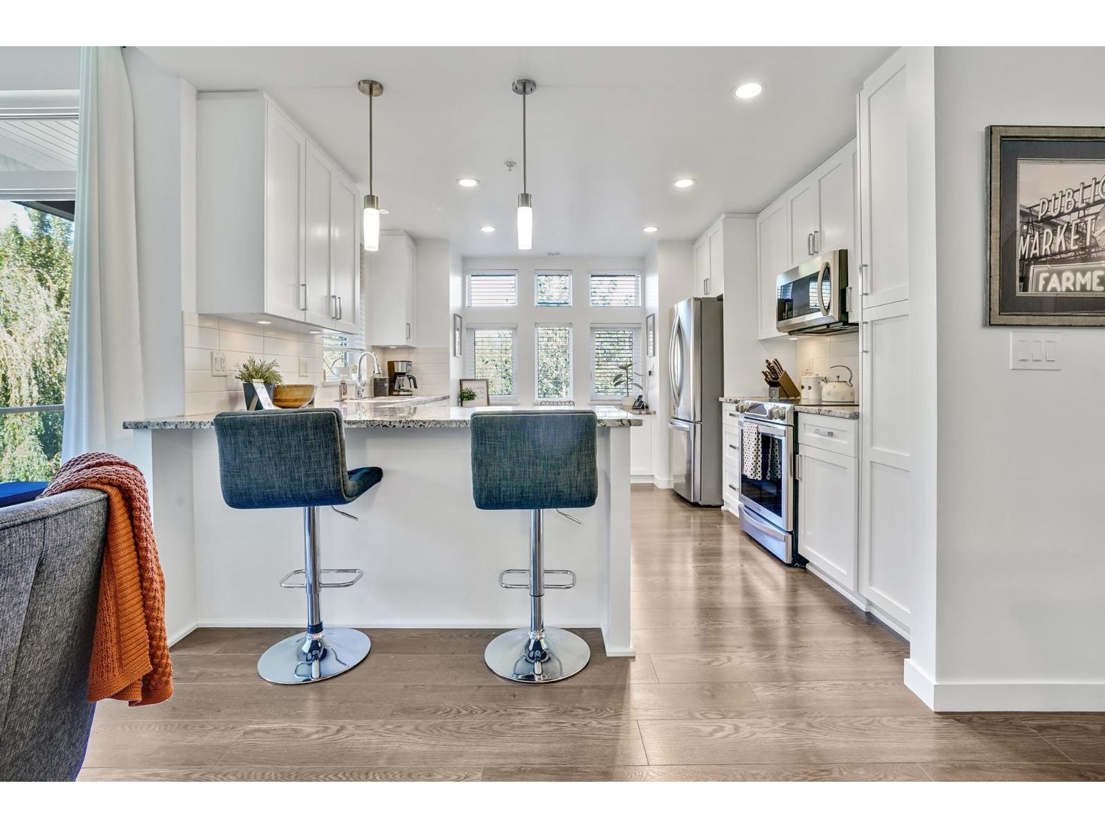 CORNER UNIT w/2 bdrms, 2 bath, over 1137 sq ft with a fantastic layout in a uniquely private setting. This condo is a RARE FIND as the location is ultra convenient - walking distance to shopping (save-on, shoppers +), right beside freeway access for those who commute YET beautiful views from every window with a private nature trail around the building. The condo is open and bright with LARGE windows showcasing the view, plenty of room for a king sized bed + in the bdrm w/large walk in and ensuite. Second bdrm has 2 closets with a cheater ensuite. Large kitchen w/granite counters, induction oven. Waterleaf living includes an outdoor pool & hot tub w/BBQ, right across is the amenity room w/kitchen, couches, TV & pool table perfect to use for family get togethers AND a great gym. View today! (id:63510)